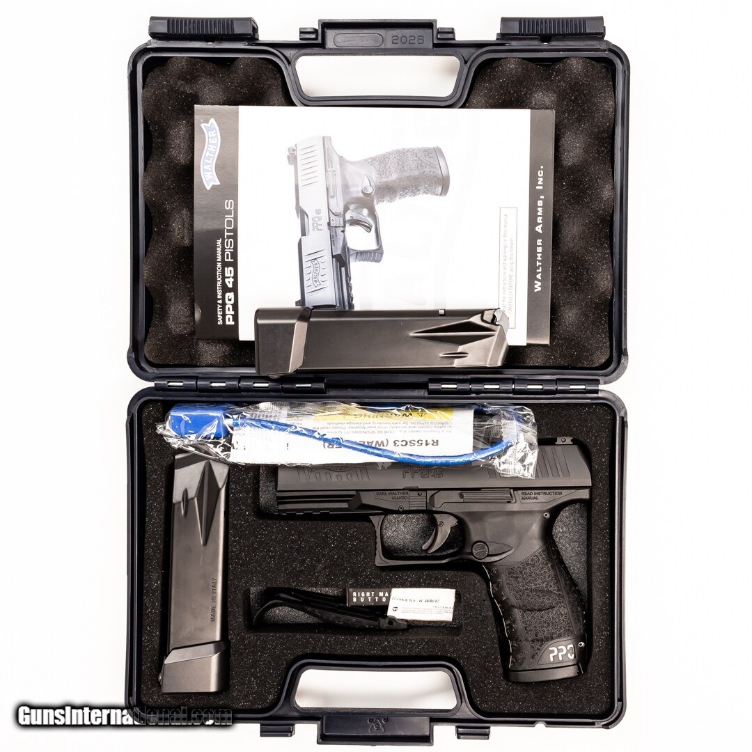 Description: Guns Listing ID: 869868 Walther handguns have always been known for their legendary quality and performance, and the Walther PPQ 45 is no exception. If you’re looking for a superb self-defense or duty sidearm, this pistol won’t disappoint. It combines world-renowned German engineering with the classic American 45 ACP cartridge, resulting in a remarkably accurate pistol with minimal recoil and superior ergonomics. Purchase includes the original case, manual, one 12-round magazine, two 15-round magazines, and two sizes of backstraps. Get the best bang for your buck when you get a Certified Used Firearm . When you see the Certified Used stamp on any of our firearms, you can be confident that you’re getting exactly what you want – a gun only in very good to excellent condition and held to the highest quality standard. All Certified Used Guns come with a ‘no questions asked’ return policy . PLUS, ALL CERTIFIED USED GUNS SHIP FREE! SOLD Model: PPQ 45 Caliber Info: .45 ACP Condition: Used - Certified Barrels: not specified |