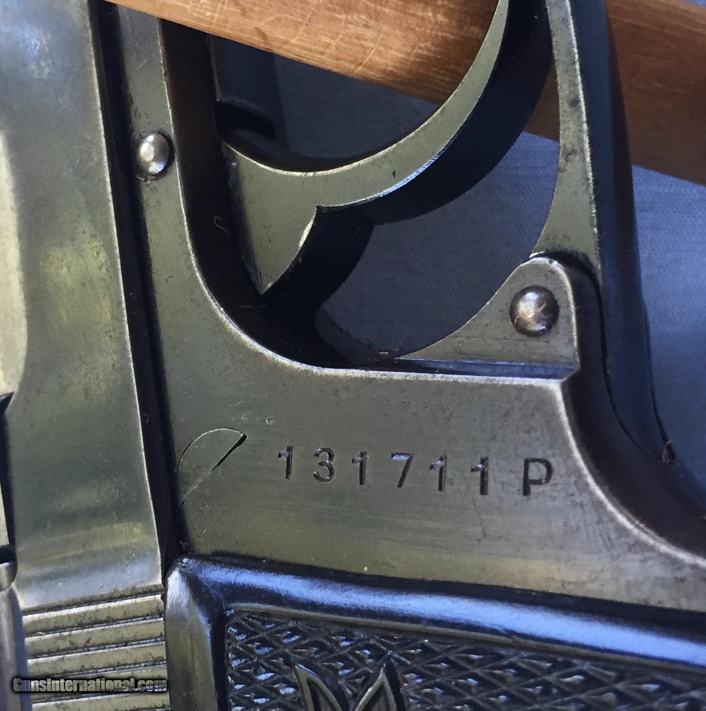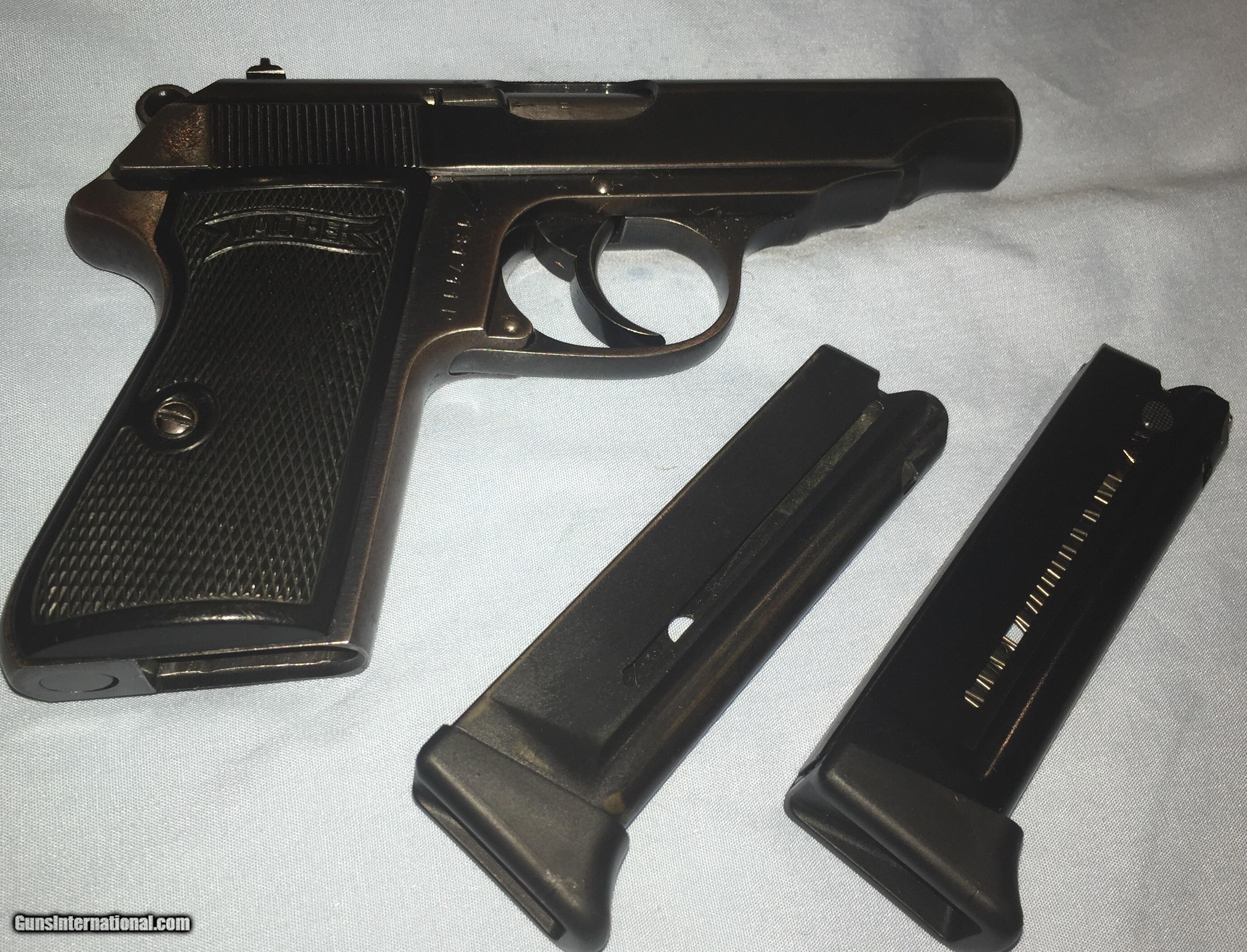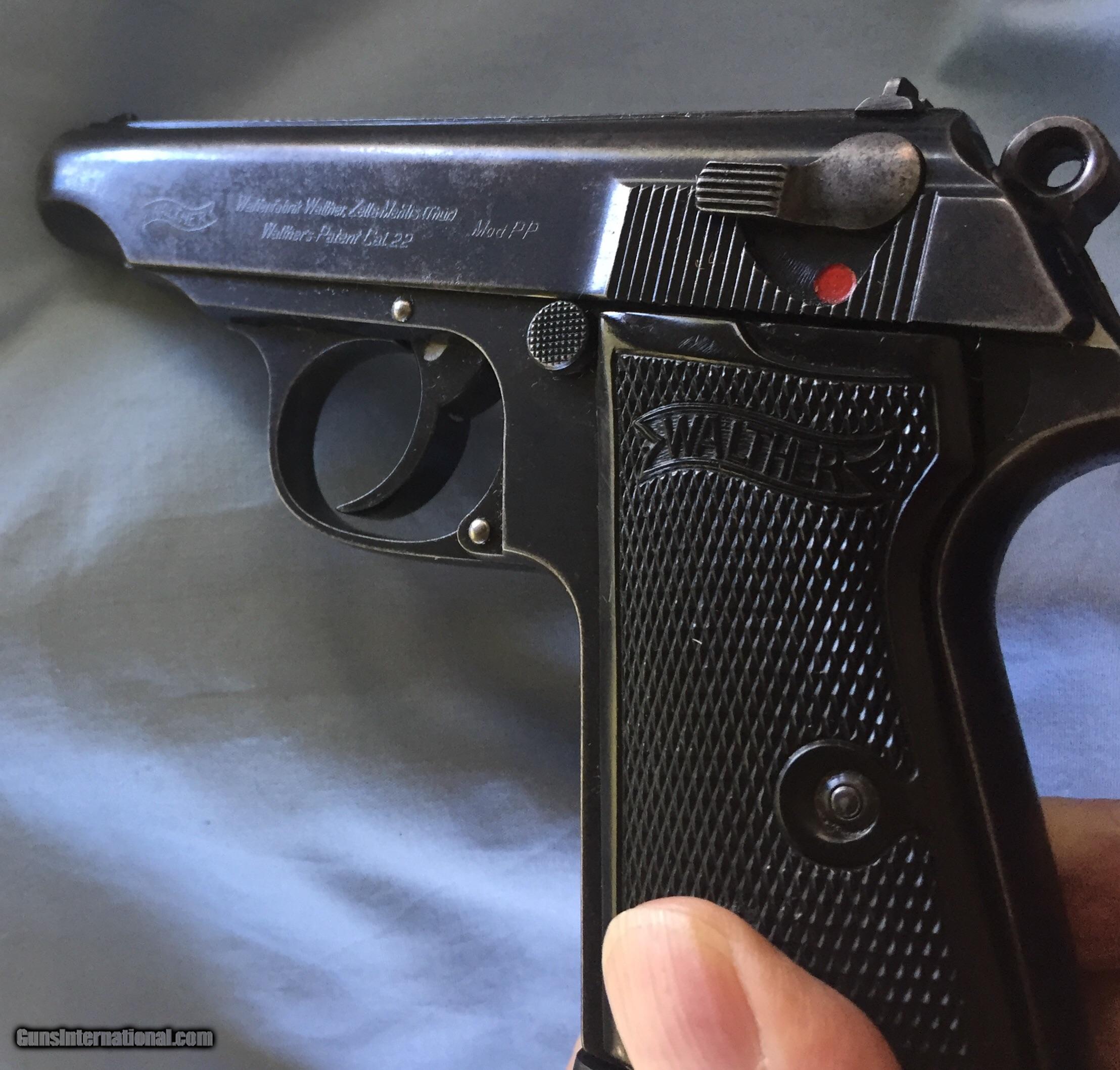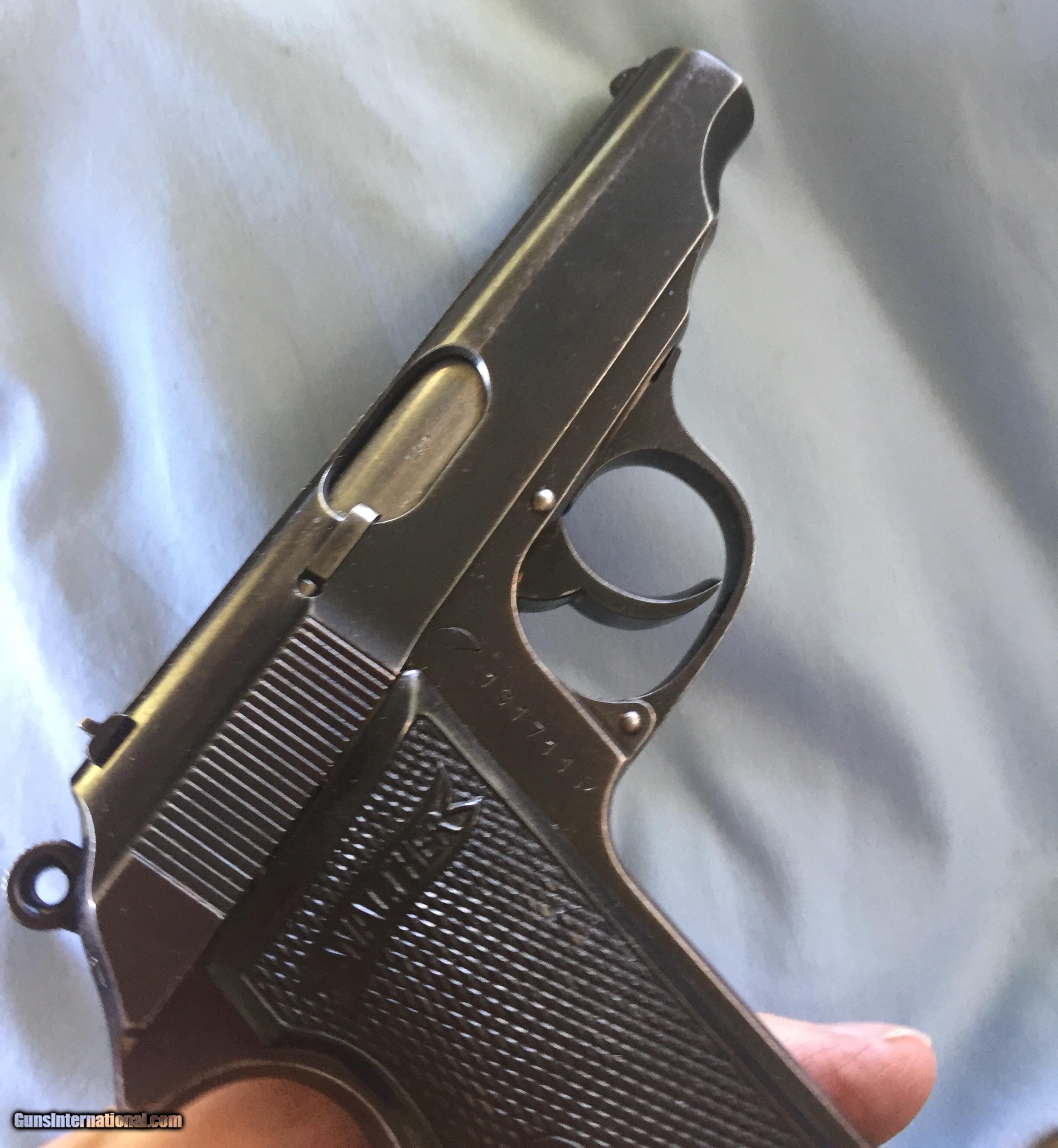 Description: "Crown N" -made between 1937-1939 -proof mark two extension magazines Nice piece and a rare one SOLD Manufacturer: Walther Model: PP Serial Number: 131711 P Caliber Info: 22 Bore: excellent Condition: damn nice Action: double |