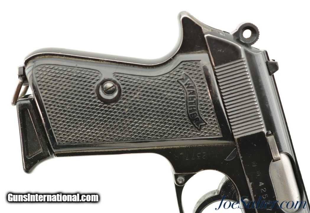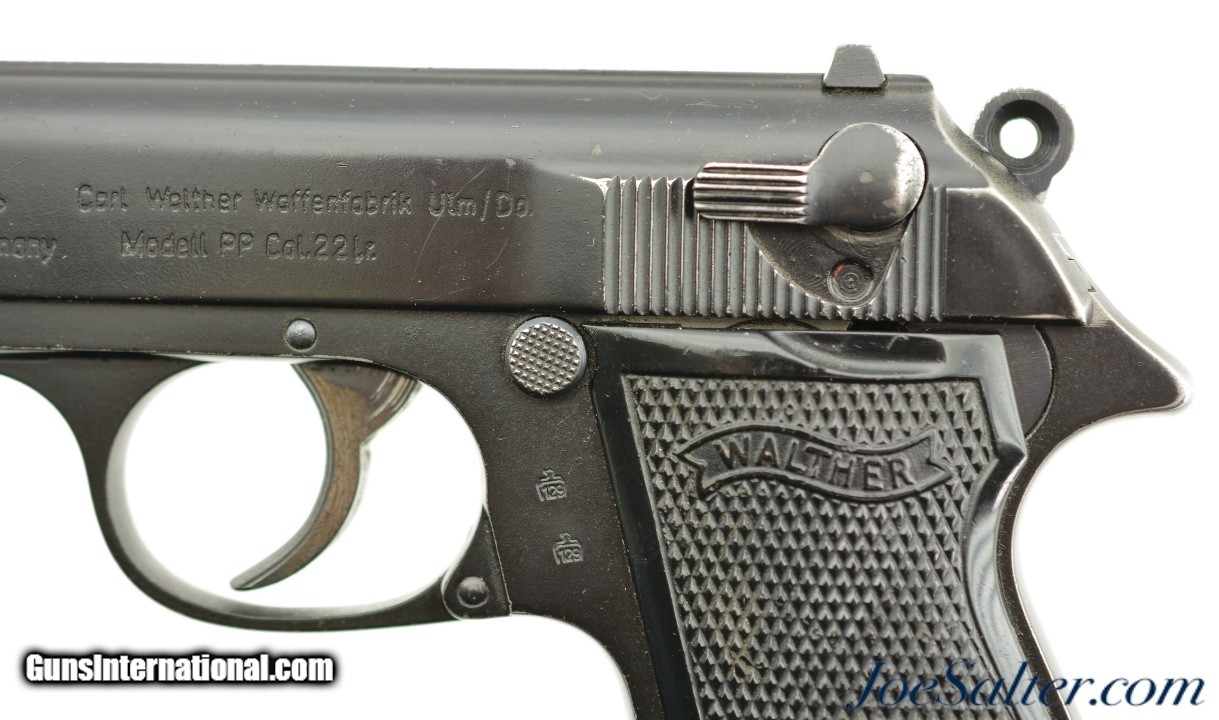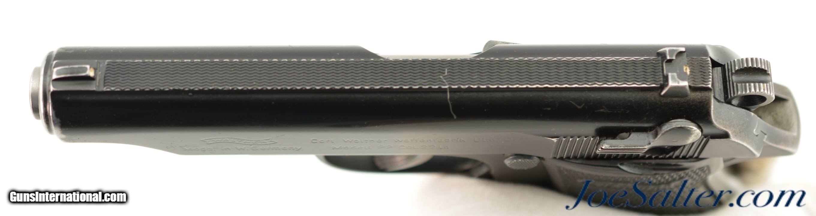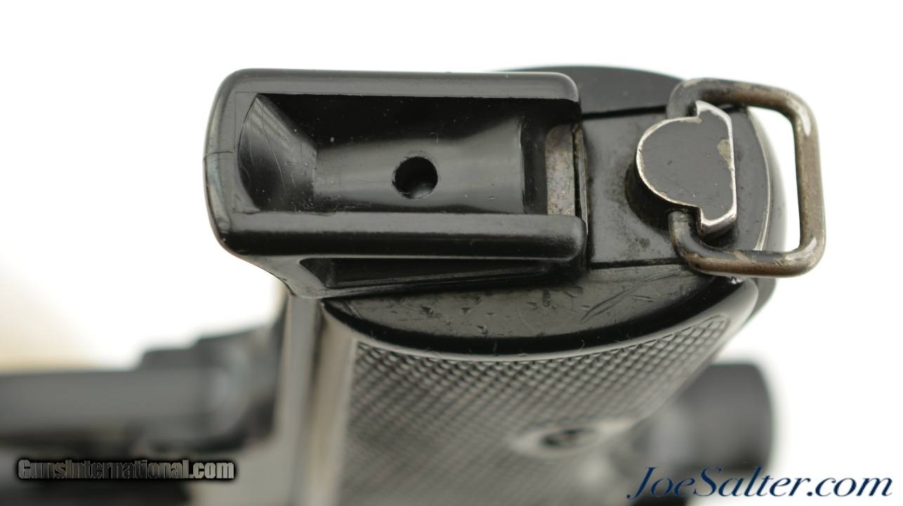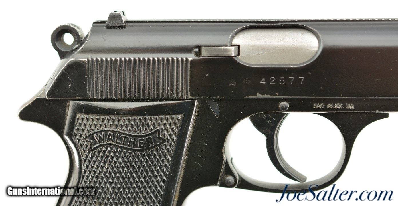 Description: Serial #42577LR, .22 LR, 3 ¾ inch barrel with a bright, excellent bore. This is a very interesting and rare British issued Walther Model PP semi-automatic DA/SA pistol purchased by the British Royal Army Ordnance Cops in 1974 and issued to service member of the Ulster Defense Regiment in Northern Ireland as self-defense weapons and is believed to be the only .22 caliber pistol ever issued by any military as a personal defense weapon. Designated as the British model L66A1 some 3,000 were purchased with approximately 1500 imported into the US by Interarms after they were sold off as Military Surplus in 1989 when replaced with other models such as the Walther P5 and SIG P230 as personal defense weapons. The British coated many of them with Suncorite and refitted with strengthened firing pins. The slide is typically marked if the firing pin was replaced, this particular example is not marked & likely did not receive a reinforced firing pin. It does have the issue lanyard loop and has the "IAC" import mark on the slide along with West German military proof marks. It remains in excellent condition with much of the Suncrolite coating showing some silvering at the muzzle and wear areas. The hard plastic Walther banner grips rate about excellent with light use marks. It comes with one original 10 round finger rest steel magazine. A rarely seen British military personal defense weapon used in Northern Ireland. FFL or C&R Curio/Relic: Yes Price: $1,295.00 Contact Seller |