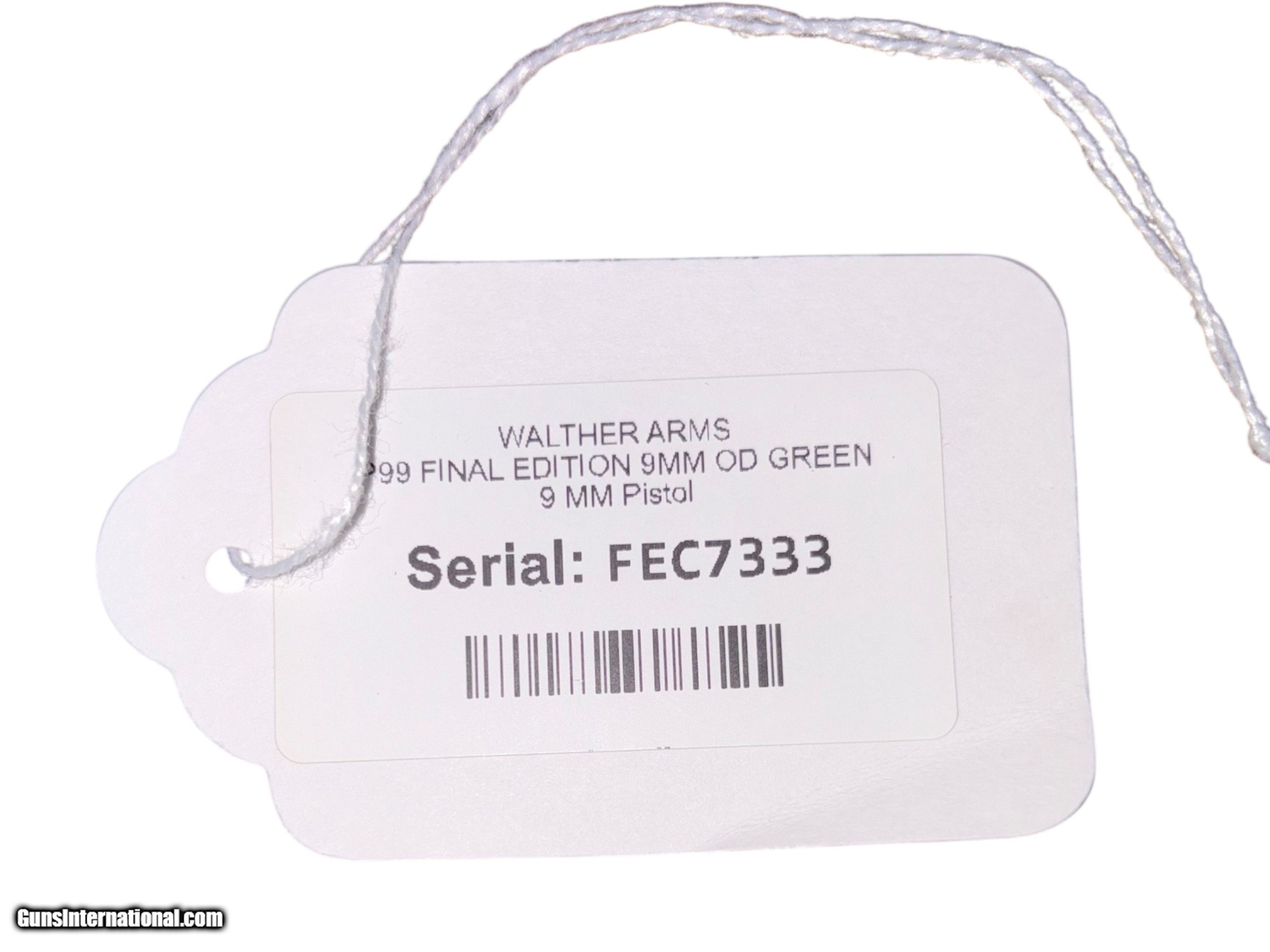 Used Walther P99 AS Final Edition 9mm – OD Green, Limited Collectible Model, 3 Mags, Case