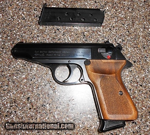 Description: This is a German made Walther PP in 7.65 mm. It is is very good condition overall, nice wood grips, overall blueing is very good, there is only very mild light freckeling on the backstrap & frontstrap. Bore is very bright and in very good condition comes with 2 magazines SOLD Handgun Caliber: .32 ACP (7.65x17mm Browning SR) Manufacturer: Walther Model: PP Barrel Length: 3.8 Condition: very good Metal Condition: very good Wood Condition: excellent Bore Condition: very good Action: Double/Single |