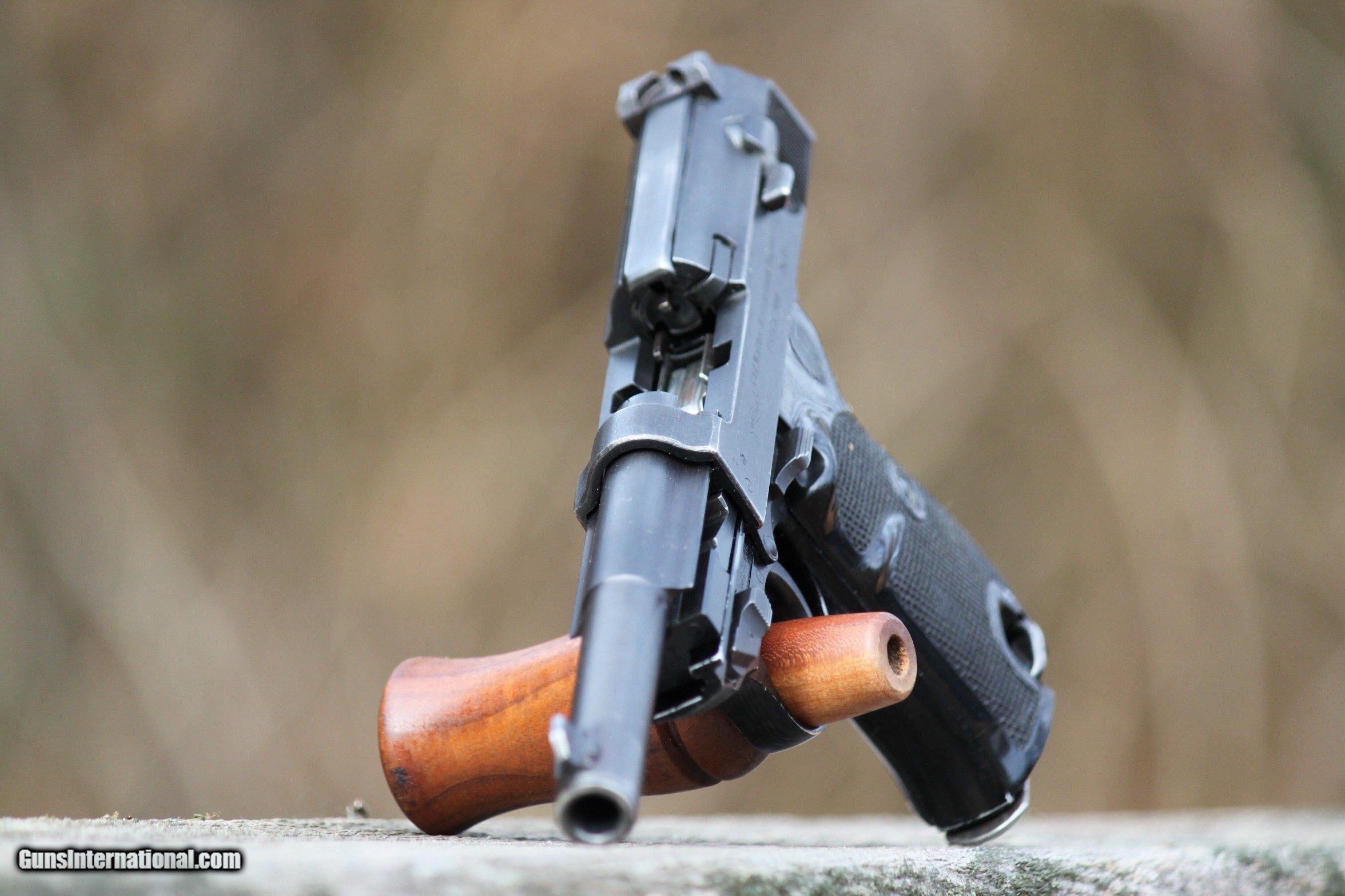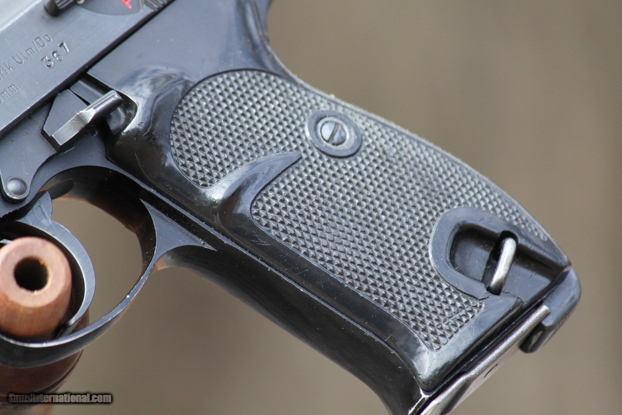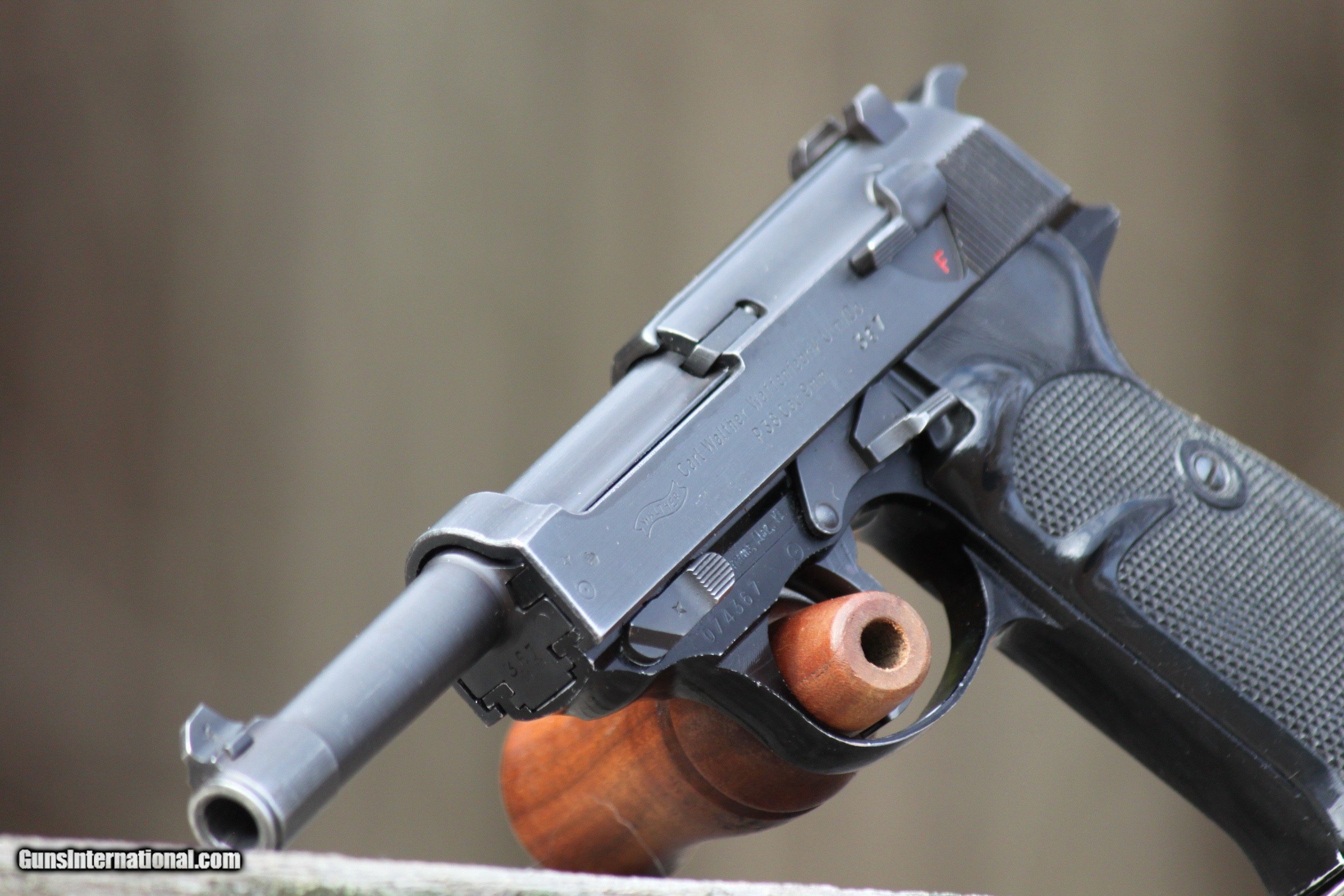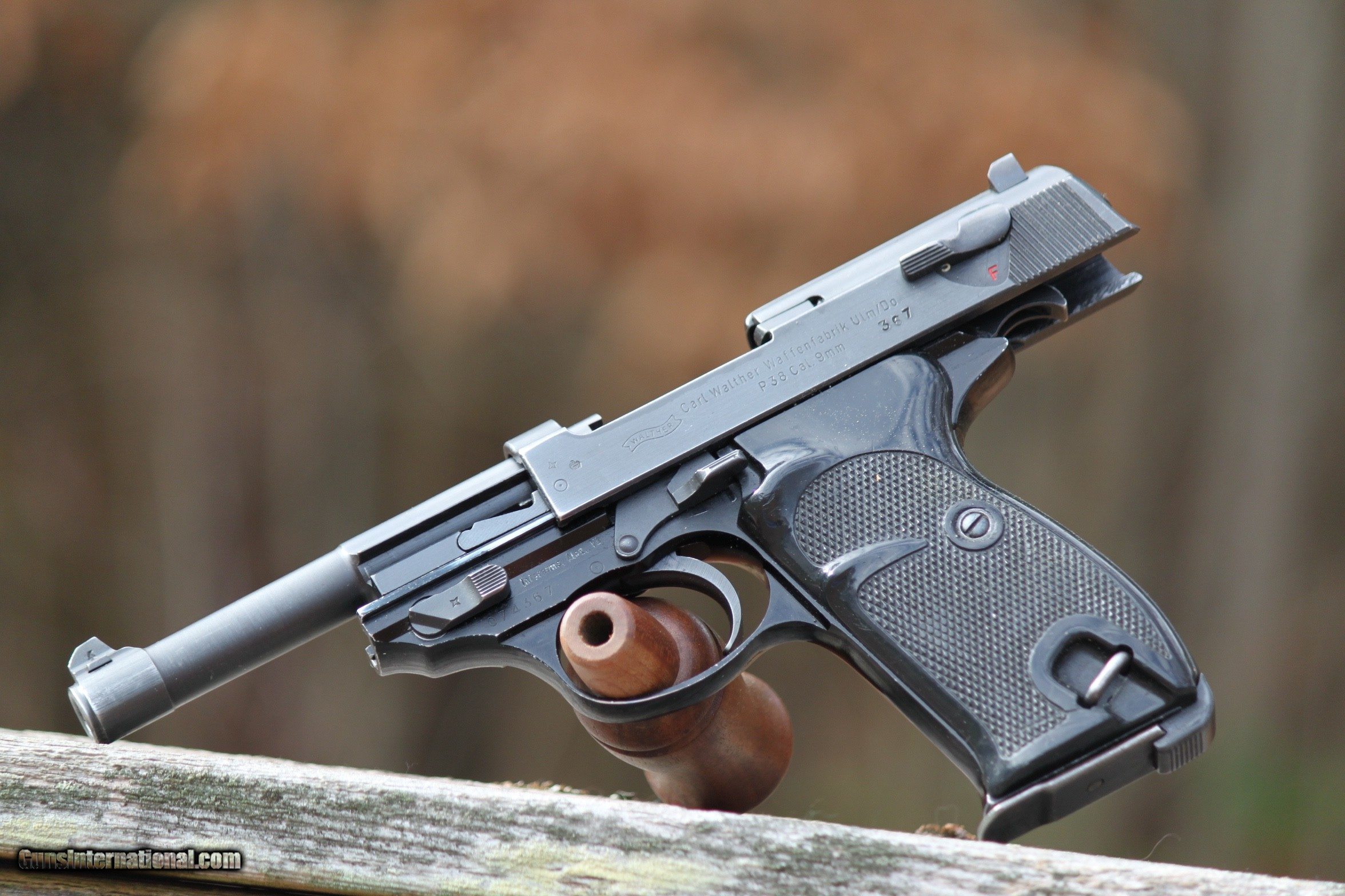 Description: For sale is a very nice and complete packaged Walther Interarms P38 9MM Parabellum, Serial Number 074367. This is an original "O" generation Walther in the original box, with original Safety Warning booklet and Original Holster in exceptionally good condition as the photos show. Catalog number WAP 34590 as marked on the box. The box is in very good condition with colors still vivid as shown. Grips are in excellent condition, no chips or cracks, bluing is in very fine conditon, bore is shiny with grooves clearely showing, action is crisp. Left side of barrel reads "Carl Walther Waffenfabrik Ulm/DO". Right side of barrel is marked 10/59 for production date which qualifies the Walther for C&R FFL buyers. There are German stamps on the front of the trigger guard. The original leather holster is in fine shape, no crack to the leather and closing strap functions as should. The holster also has the pouch for one extra magazine. The name "W Singer" is written on the inside of the holster flap in faded ink. The walther has two 8 round magazines in very good shape as well. All in all , a very fine Walther P38 for the shooting enthusiast or the collector at a very reasonable price for the condition and original box and litterature. The photos speak for the condition. Please email with any questions. Priced given the condition and originality at $650.00. Walther will be shipped and insured to your C&R FFL license or FFL dealer. If you have any questions email: rab41283gmail SOLD Curio/Relic: Yes Handgun Caliber: 9x19mm Parabellum (9mm Luger, 9x19mm NATO) Manufacturer: Walther Model: P38 Serial Number: 074367 Barrel Length: 5 Bore: Grooved Chambers: Excellent Ejectors: Excellent Condition: Very Good Metal Condition: Very Good Wood Condition: N/A Bore Condition: Excellent Barrel Type: Steel Action: Slide Triggers: 1 Stock: N/A Weight: 34oz. Sights: Standard Manufacture Date: 1948-1949 Extras: Original Box and Papers Case: Leather Item Location: Maryland |