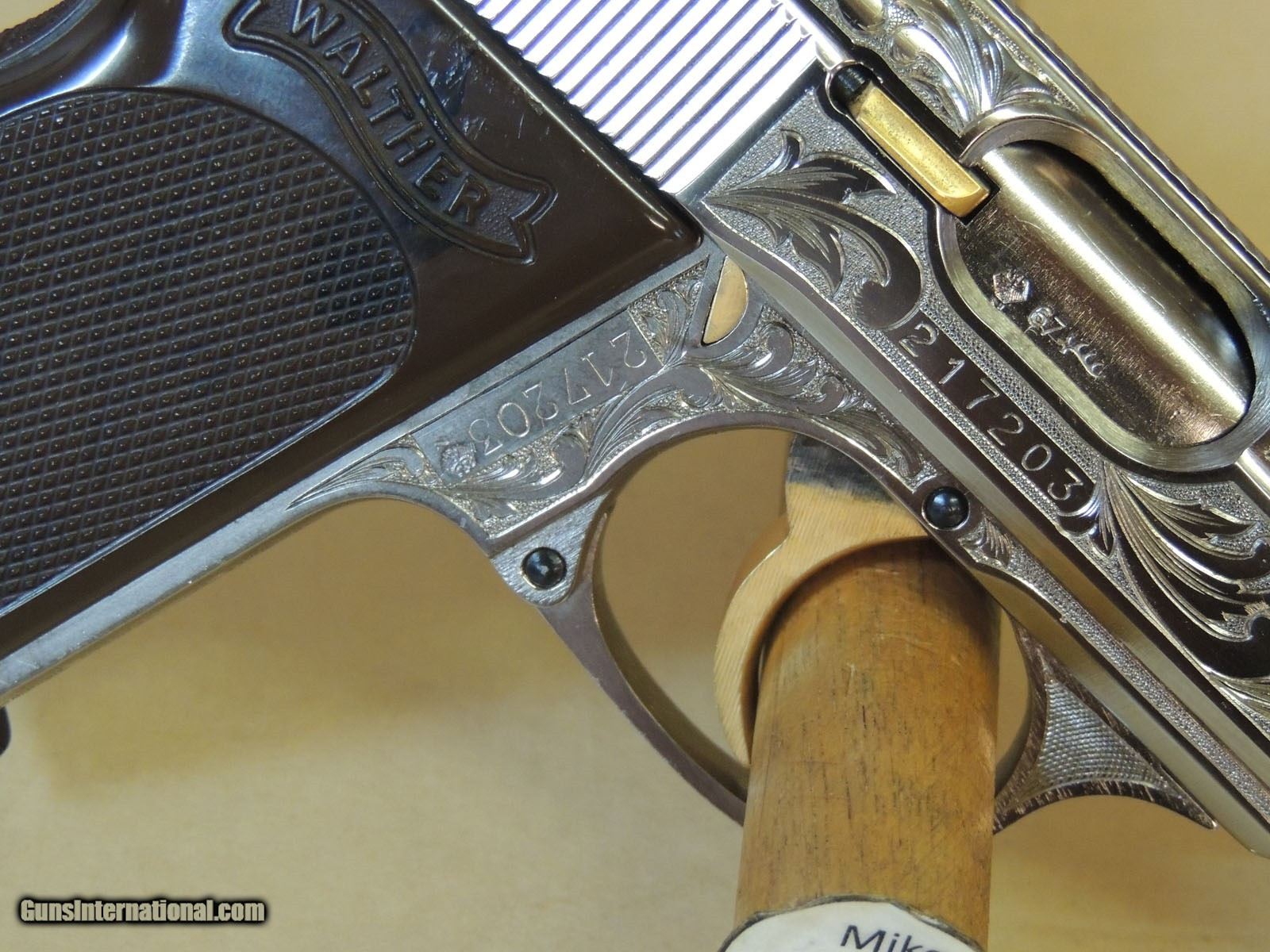 Description: WALTER PPK GERMAN .32 ACP PISTOL IN BOX, 1967 CHAMBER DATE, BOX, TEST TARGET, TAKEDOWN TOOL, NICELY AFTERMARKET ENGRAVED, DELUXE BOND WALTHER, CURIO & RELIC ELIGIBLE $2150 ******* (PLEASE REFERENCE OUR INVENTORY NUMBER) (PAYMENT OPTIONS) (Postal Money Order) (Cashiers Checks) (Personal Checks (Item held until Check Cleared) ***(Layaway 120 days-(No Interest)-(Pay any way, any time you like over the term) -(Deposit required)*** (Credit Cards Visa or Master Card 3% fee added to total sale) (GA residents 7% sales Tax Applies) (FAX 888-597-1394) (BEST PHONE/TEXT 229-424-8450) (Shipping $35.00) SOLD Curio/Relic: Yes |