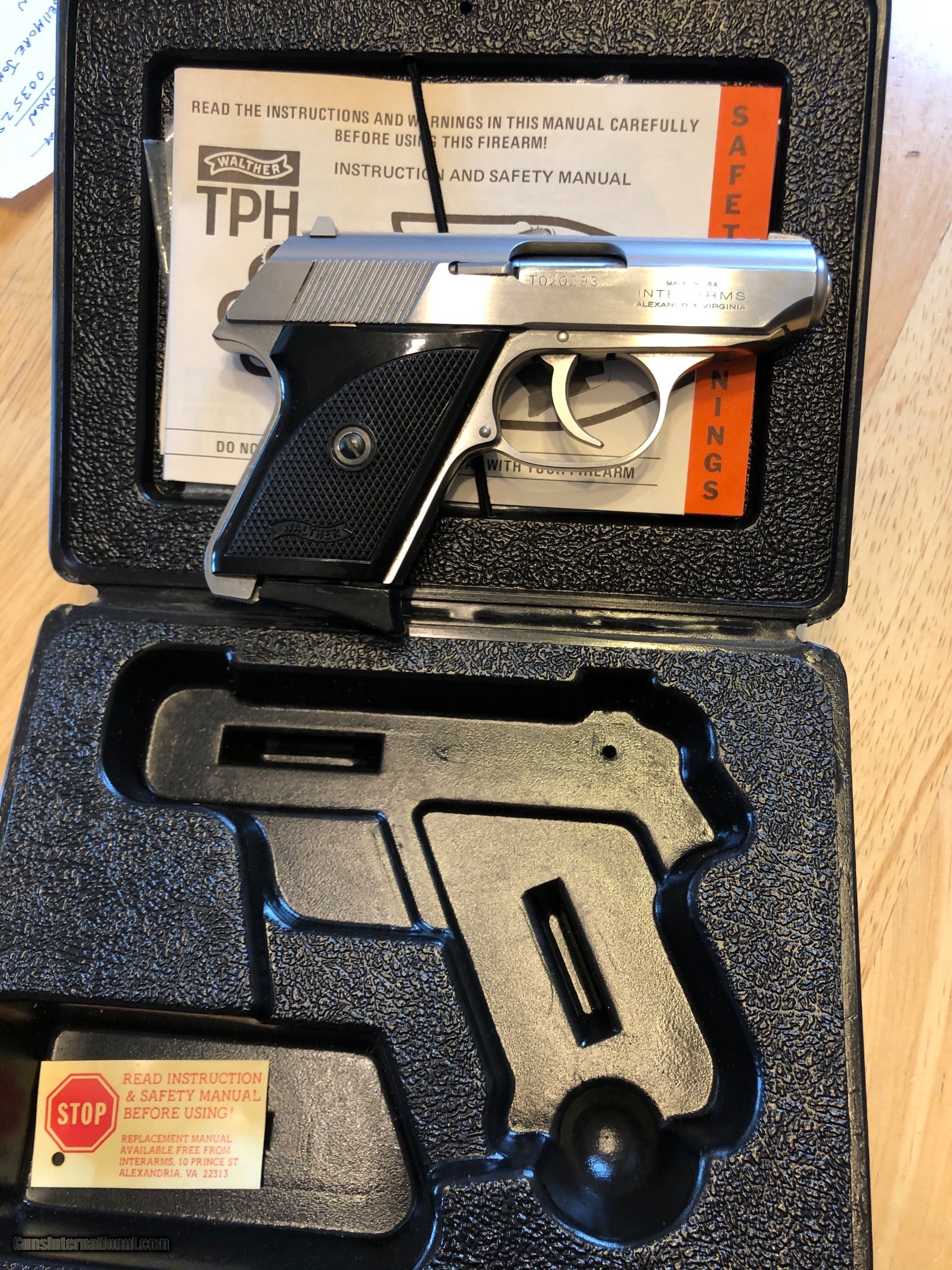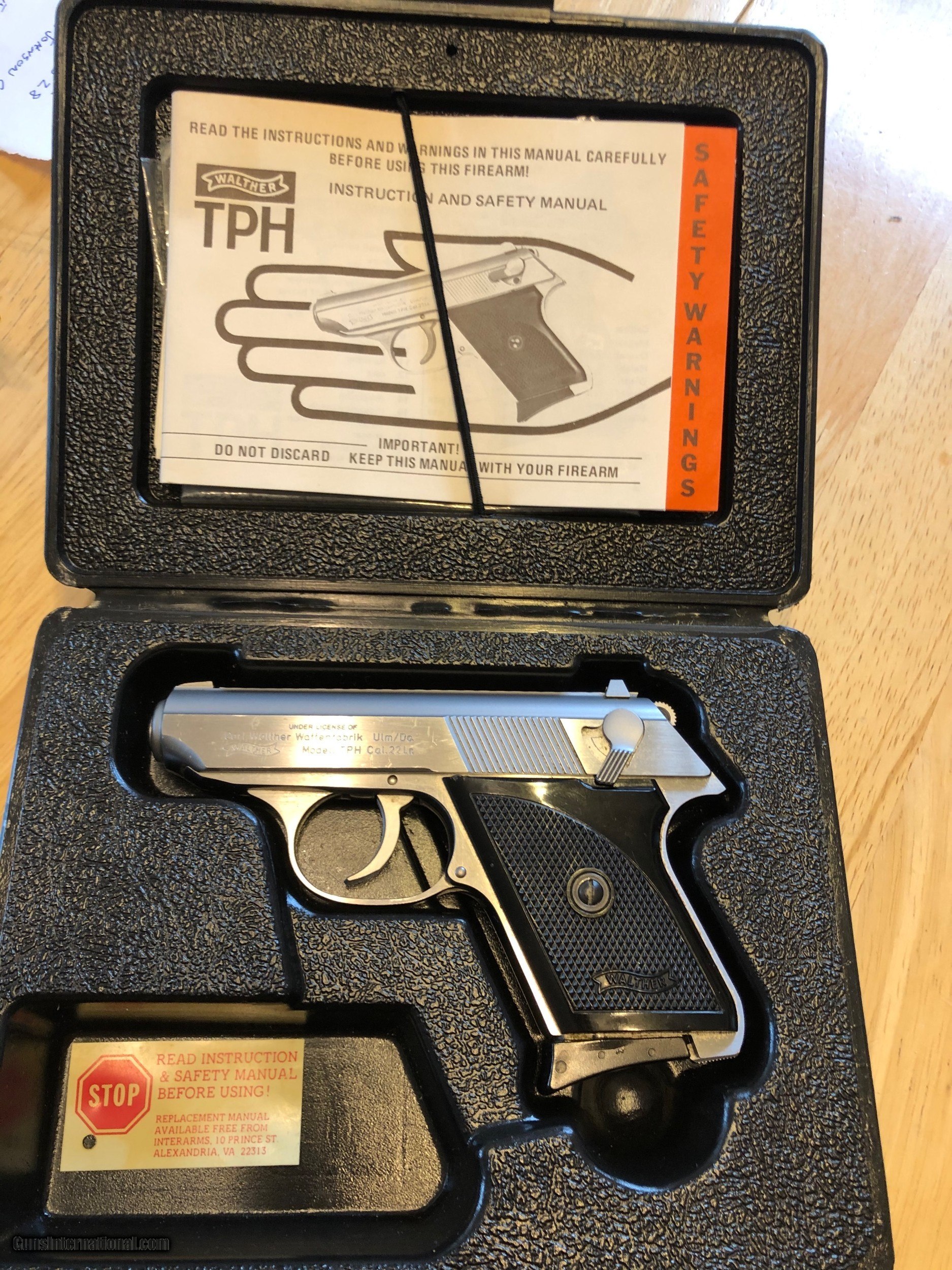 Description: Stainless - USA 6 Shot 22 L.R. DOUBLE ACTION One Mag Factory Hardcase SOLD Manufacturer: Walter T.P.H. Model: 22 LR Condition: Excellent |
