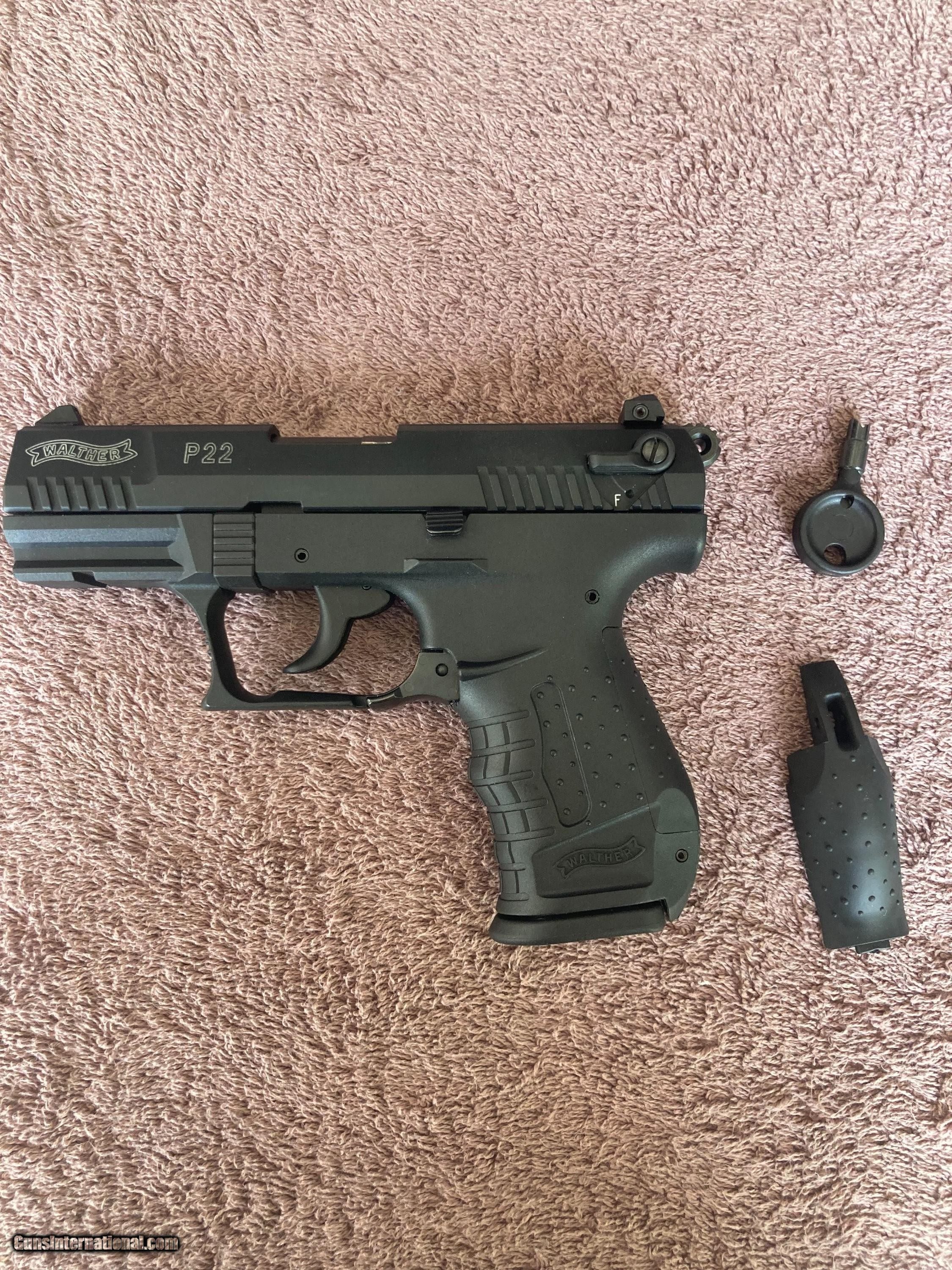 Description: IN EXCELLENT CONDITION APPEARS TO HAVE VERY LITTLE USE-WALTERS P-22 MADE IN GERMANY-ONE MAG.-COMES COMPLETE IN THE BOX WITH ALL ACCESSORIES -SHIPS TO YOUR DEALER-SHIPPING INCLUDED . SOLD Handgun Caliber: .22 Long Rifle Manufacturer: WALTERS Model: P-22 Bore: EXCELLENT Condition: EXCELLENT Metal Condition: EXCELLENT Bore Condition: EXCELLENT Action: SEMI-AUTO Sights: OPEN-ADJUSTABLE |