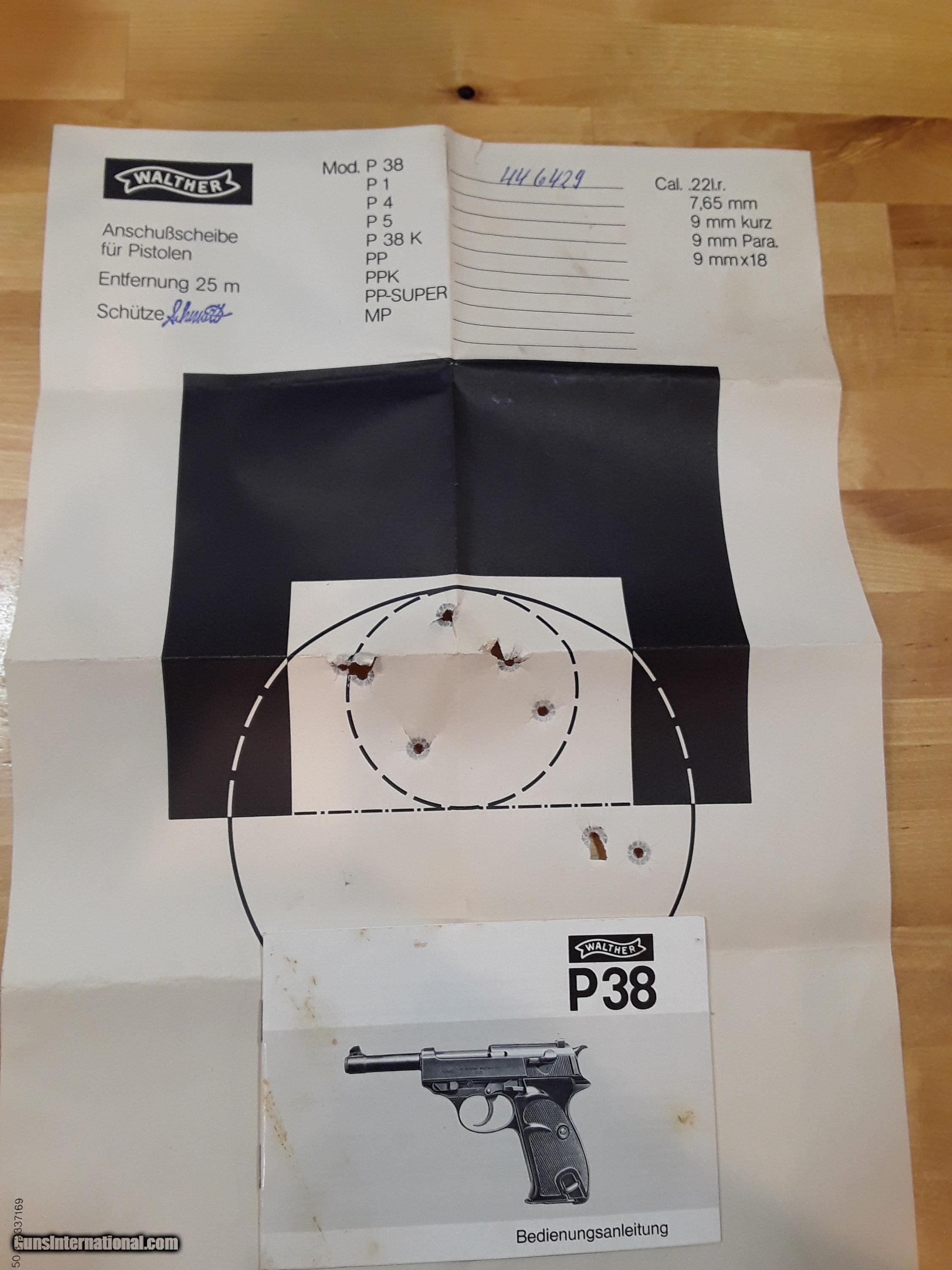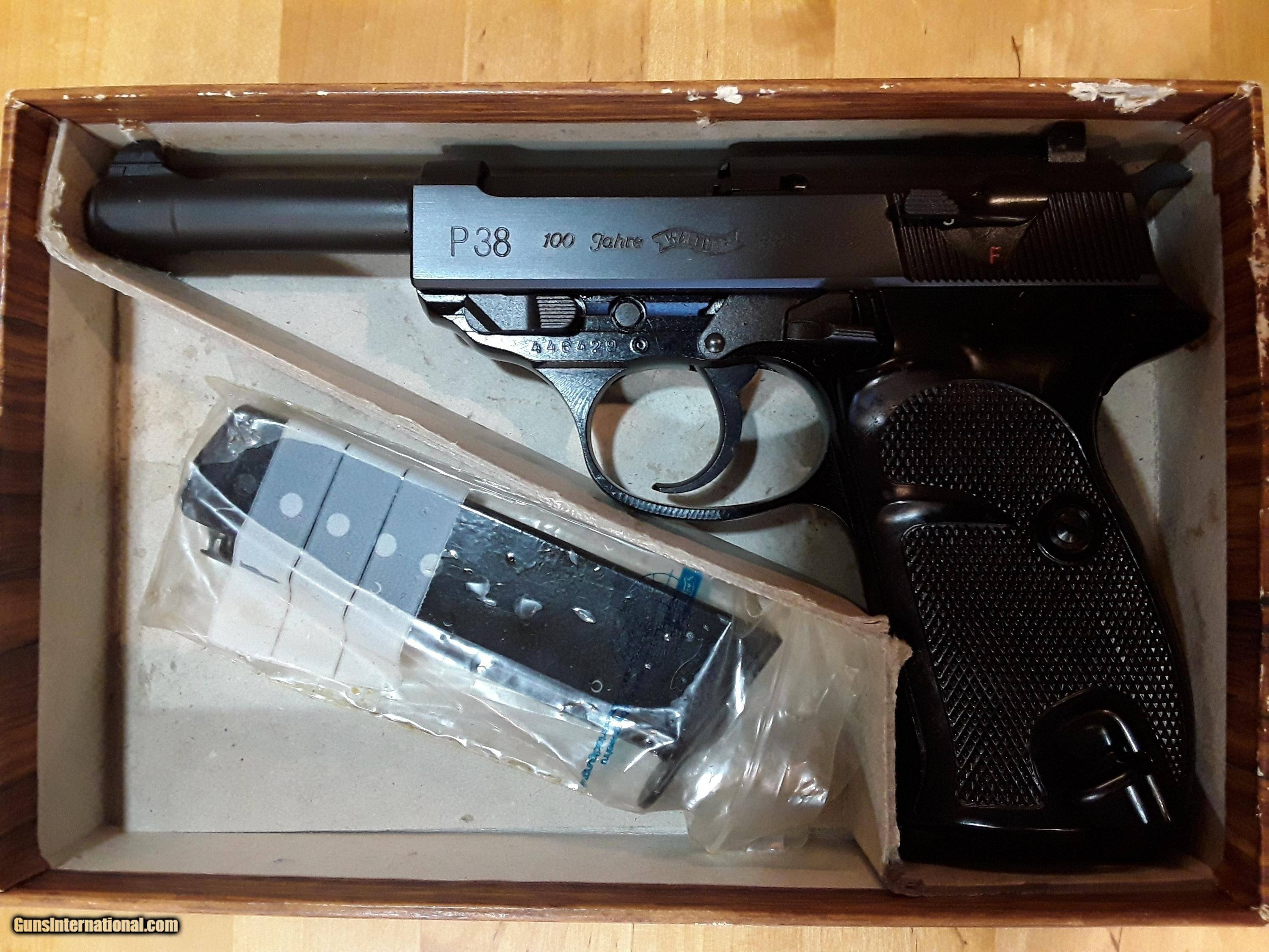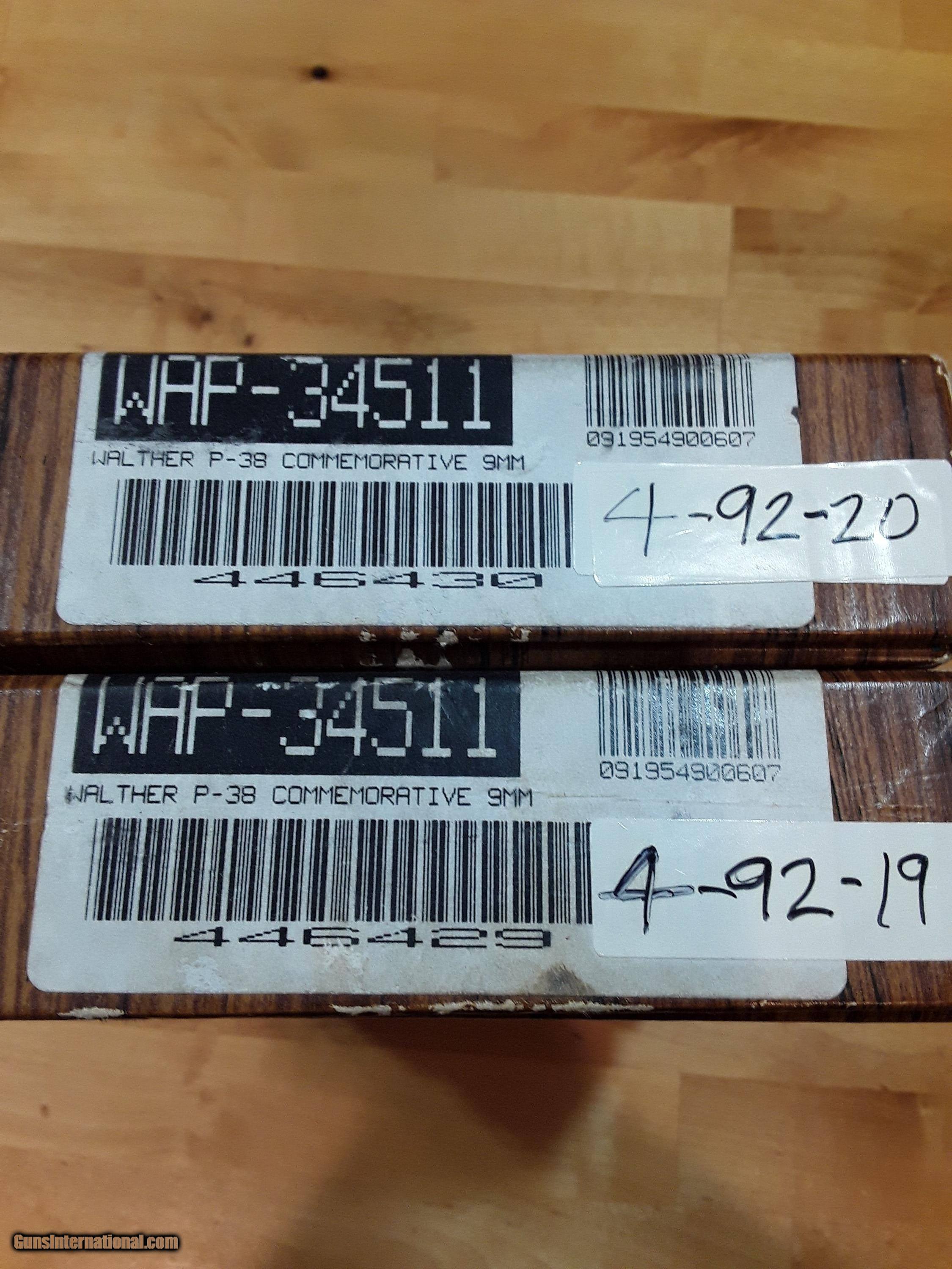 Description: For sale is a consecutive pair of Walther 100th anniversary P38 9mm pistols. These pistols are new in the box with the instruction book and test fire target. They will be sold only as a pair. If you have questions, please call. Shipping and insurance is $60.00 in addition to the price. SOLD |