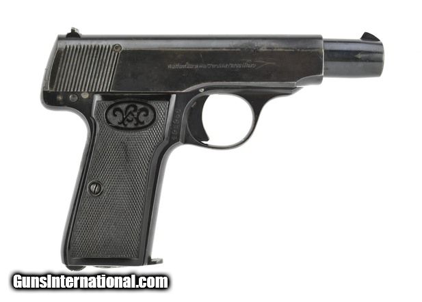 Walther 4 7.65mm caliber pistol. Commercial model. Bore is excellent. Slide has a minor area of pits. Grips are not chipped or cracked. Very good overall condition pre-war auto. Magazine is a later replacement.