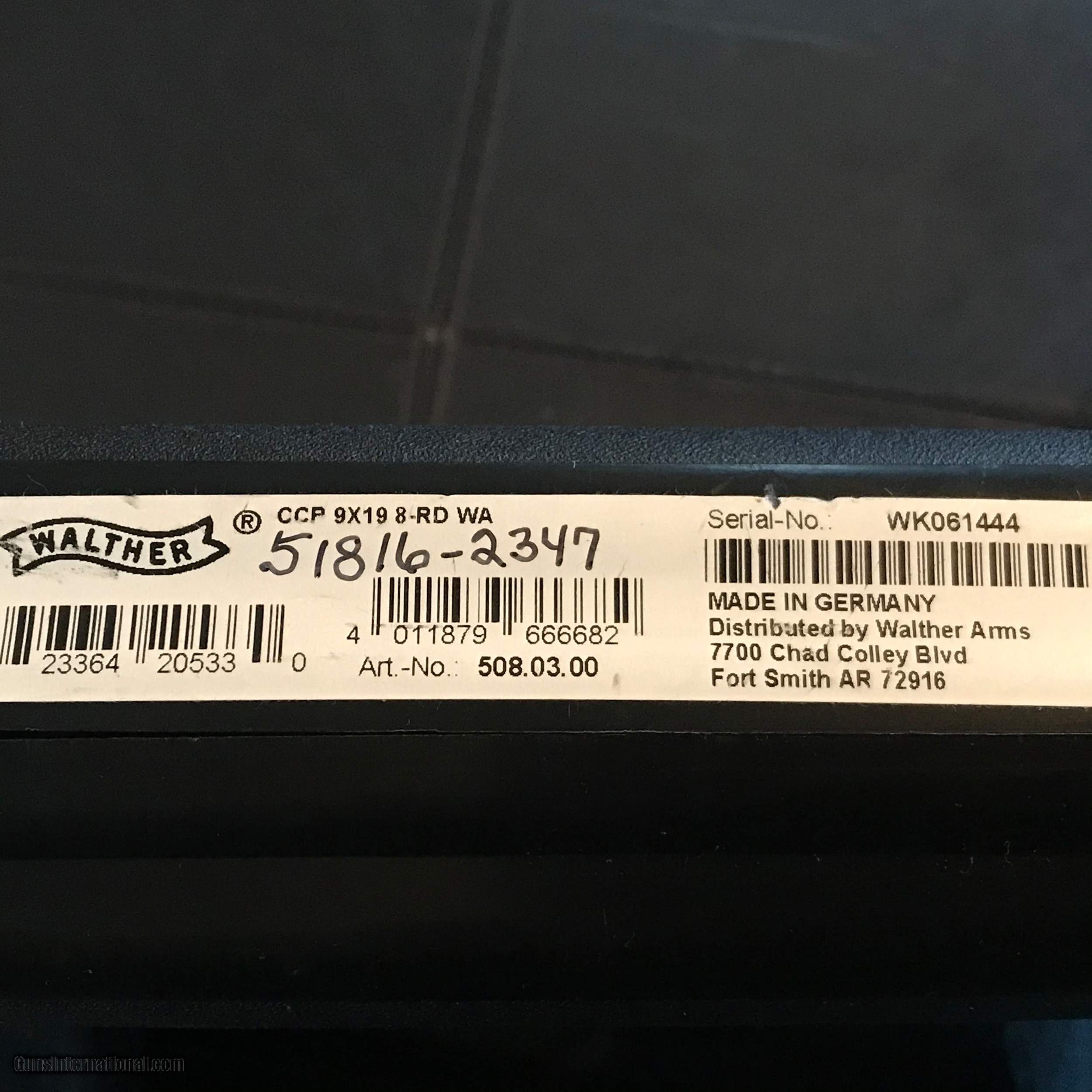 Description: DON'T HESITATE A RARE FIND THE ONLY ONE WE HAVE AND IT'S AN EXCELLENT CCW OR LE BACKUP WA5080300 CCP M2 9MM BLK/BLK 3.54" 8+1 5080500 9mm MANUFACTURER: Walther Arms MFG MDL #: 5080300