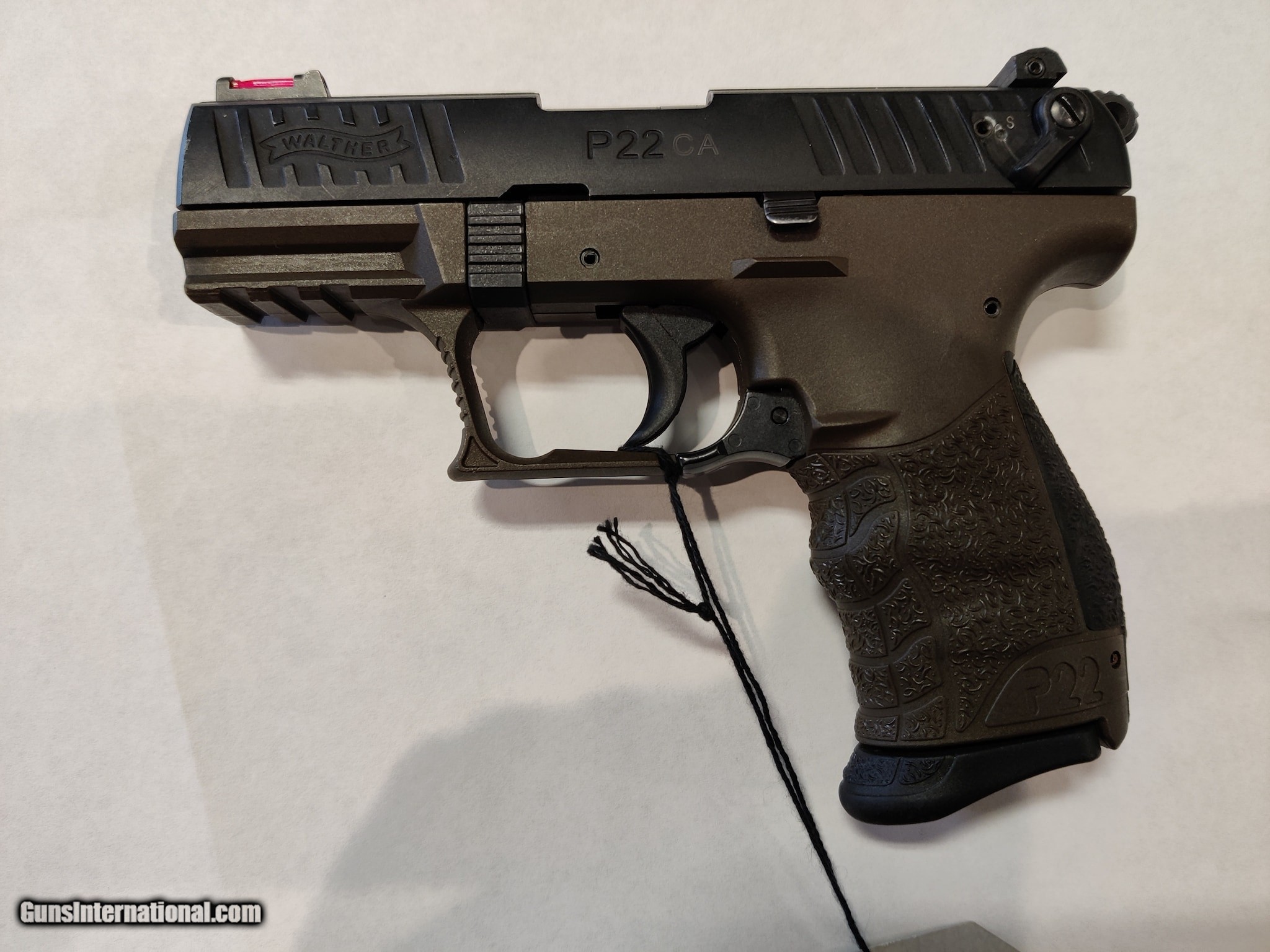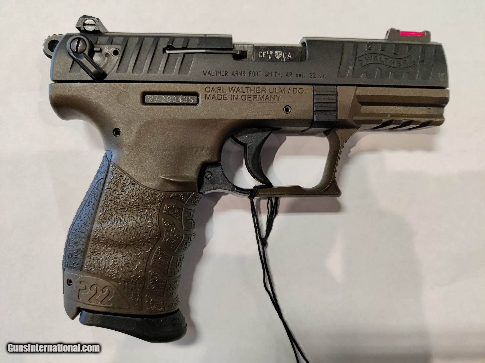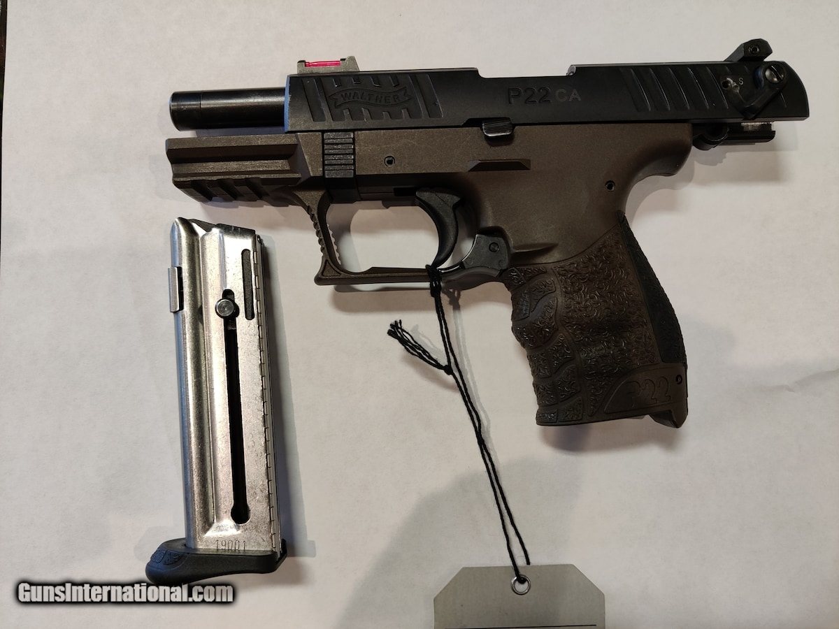 Description: Guns Listing ID: 558432 Basic Description: WALTHER .22LR SEMI AUTO PISTOL Price: $350.00 Model Number: 5120715 Manufacturer: WALTHER Description of Firearm Package: SEMI AUTO WALTHER P22CA PISTOL CHAMBERED IN .22LR WITH A ORANGE FIBER OPTIC FRONT SIGHT WITH 1 10 ROUND MAGAZINE Serial Number: WA283435 Barrel Length: 3.42\" Overall Length: 6 3/8ths\" Known History (If Known) N/A SOLD Manufacturer: WALTHER Model: P22 Caliber Info: .22 LR/.410 GA Condition: Used - Non-Certified Barrels: 3.42 BARREL Finish: BLACK |