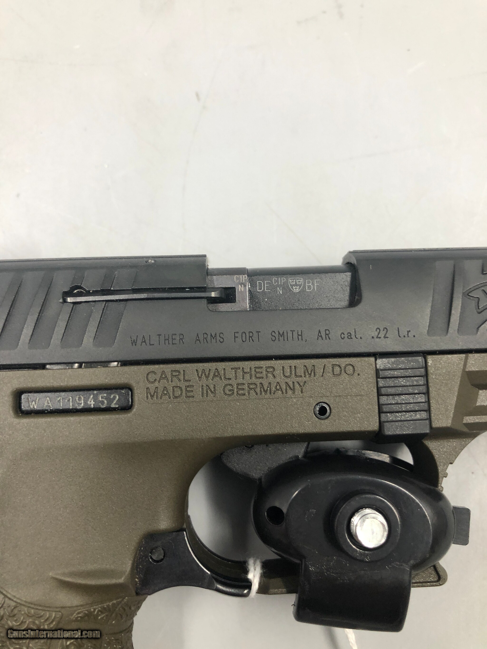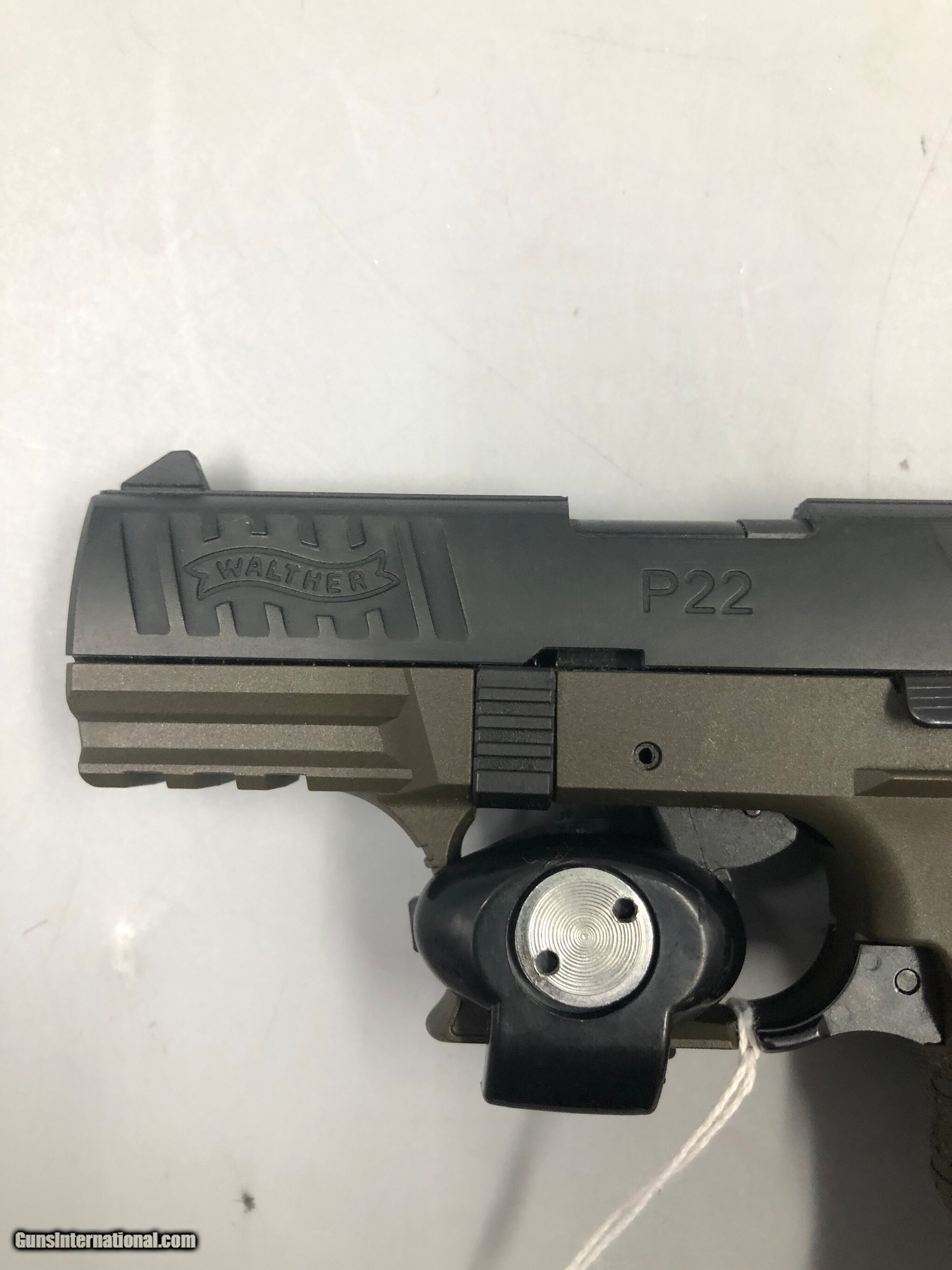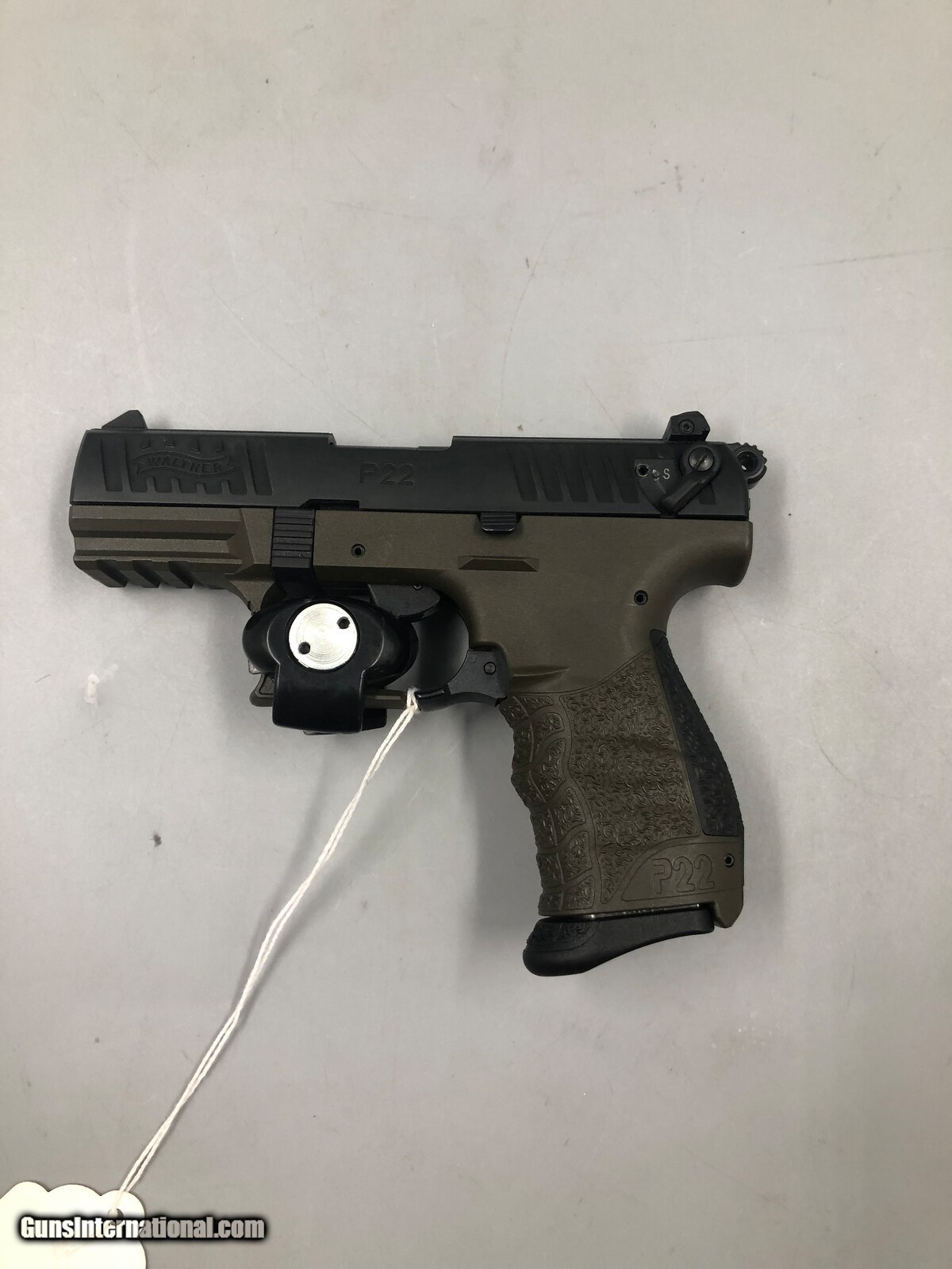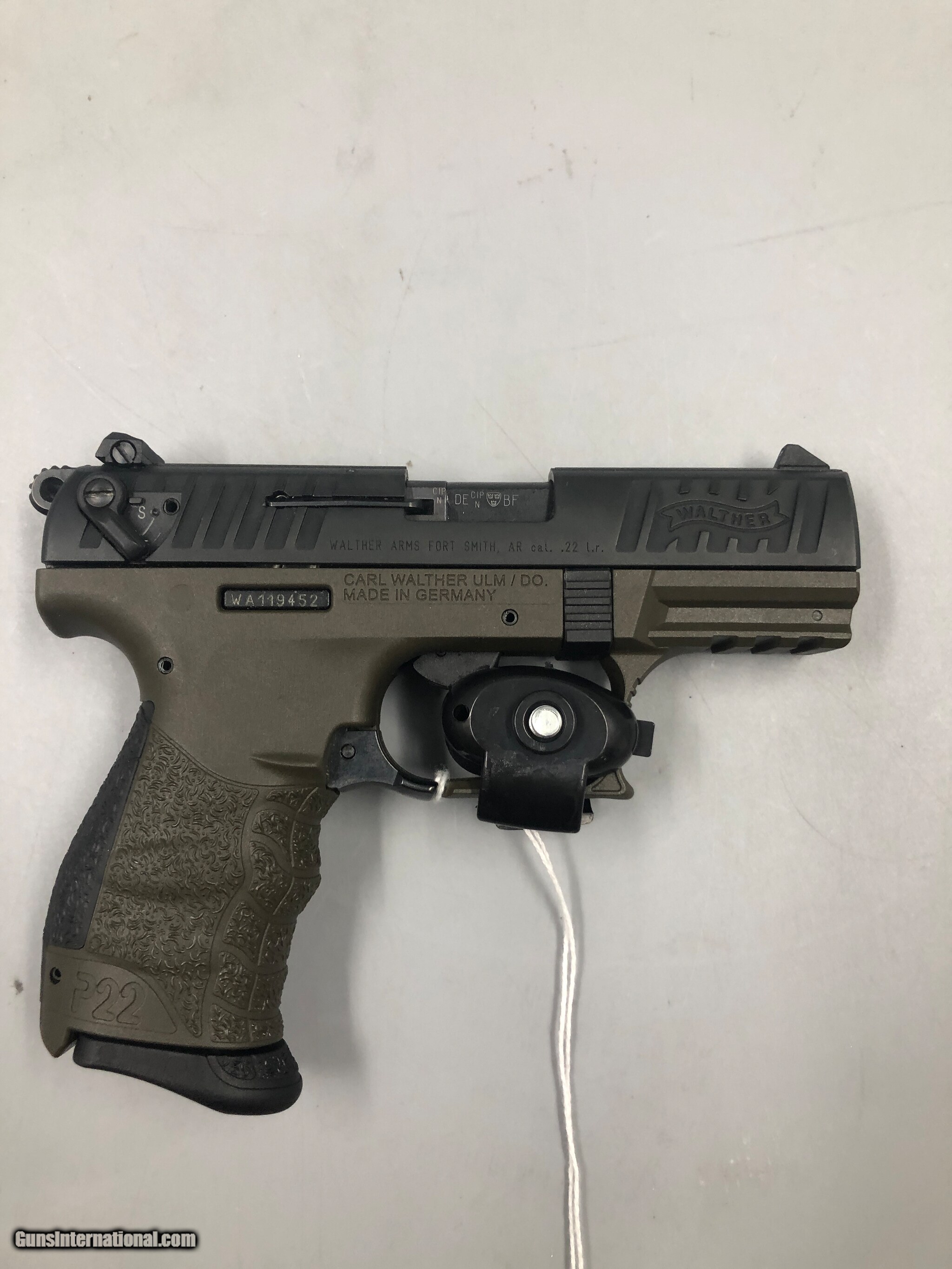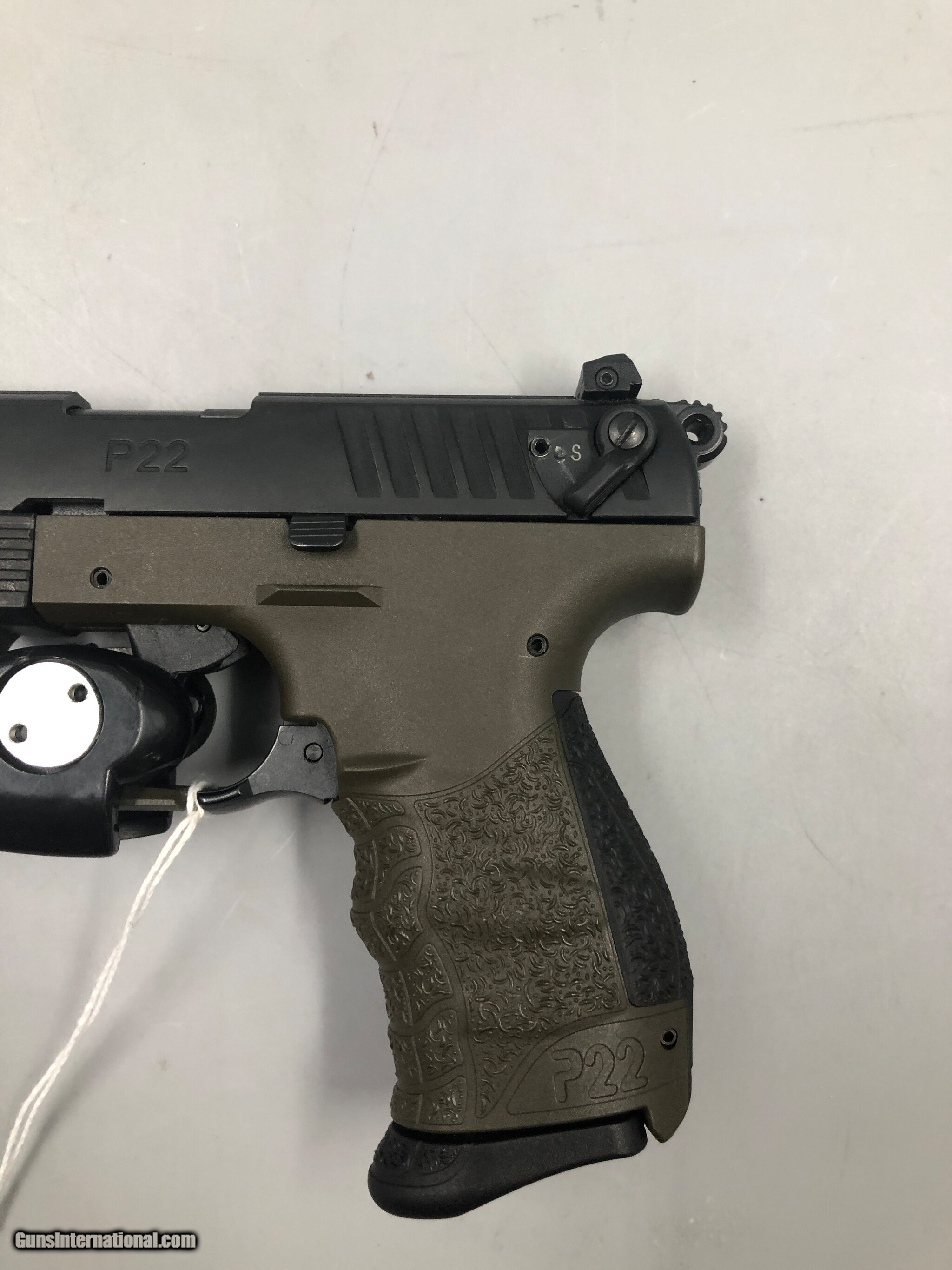 Description: Guns Listing ID: 611514 Walther Arms p22 pistol 22lr with one magazine in very good condition. SOLD Manufacturer: WALTHER ARMS Model: p22 Caliber Info: 22LR Condition: Used - Non-Certified Barrels: 34 BARREL Finish: GREEN |