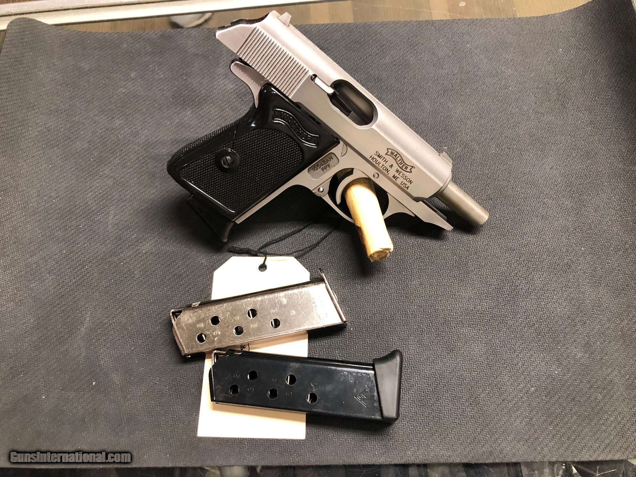 Description: Guns Listing ID: 403194 Smith and Wesson imported Walther PPK! Two spare magazines! Normal wear, some cracks on plastic grips. SOLD Manufacturer: WALTHER ARMS Model: PPK w/ 2 extra mags! Caliber Info: 380 ACP Condition: Used - Non-Certified Barrels: 3.25 BARREL Finish: STAINLESS |