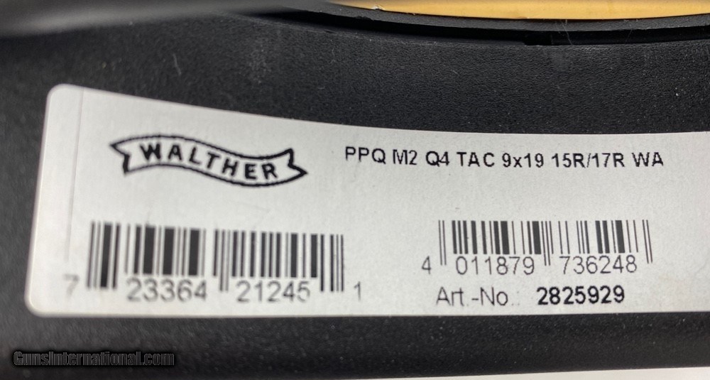 Description: Walther Arms PPQ M2 Q4 Tactical 9mm 2825929 comes in excellent condition in the original packaging. WAI PPQ Q4 TAC 9MM 4B 15/17R B.. WALTHER® PPQ® Q4® TAC •Full-size grip frame •Threaded barrel SOLD |
