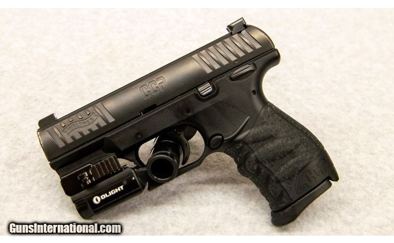 Description: Walther CCP, chambered in 9 mm. Features include: Softcoil gas-delayed blowback system, SA, black polymer compact frame, 3.54 in. barrel, interchangeable front sight, adj. rear sight, manual thumb safety, 8 shot mag., reversible mag. release, non-slip textured high grip, passive firing pin block, lower accessory rail, loaded chamber indicator, black Cerakote finish, 22.3 oz. Comes equipped with a PL-Mini Valkyrie light 9mm Luger SOLD Chambers: 9 mm Metal Condition: Very Good Bore Condition: Very Good Barrels: 3.54' Sights: 3 Dot Item Location: Fort Mill, SC |