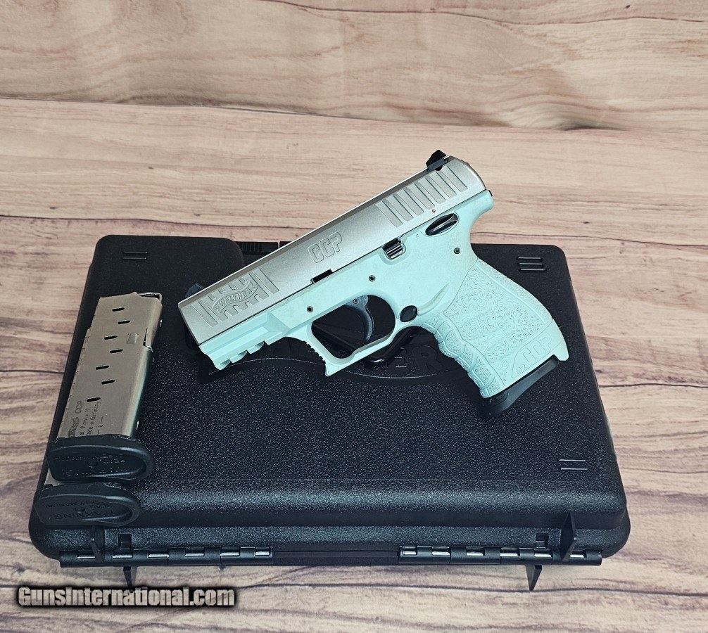 Description: Guns Listing ID: 1385840 This is a pre-owned Walther CCP, it features a 3.54\" barrel, a gas delayed blowback system, 3 dot white sights, 2 - (7) Round Magazines. The frame of this pistol is dirty even after attempts to clean it. This is a pre-owned firearm, signs of handling and firing are common. SOLD Manufacturer: WALTHER Model: CCP Caliber Info: 9MM LUGER (9X19 PARA) Condition: Used - Non-Certified Barrels: 3.54 BARREL Finish: BLUE AND SILVER |