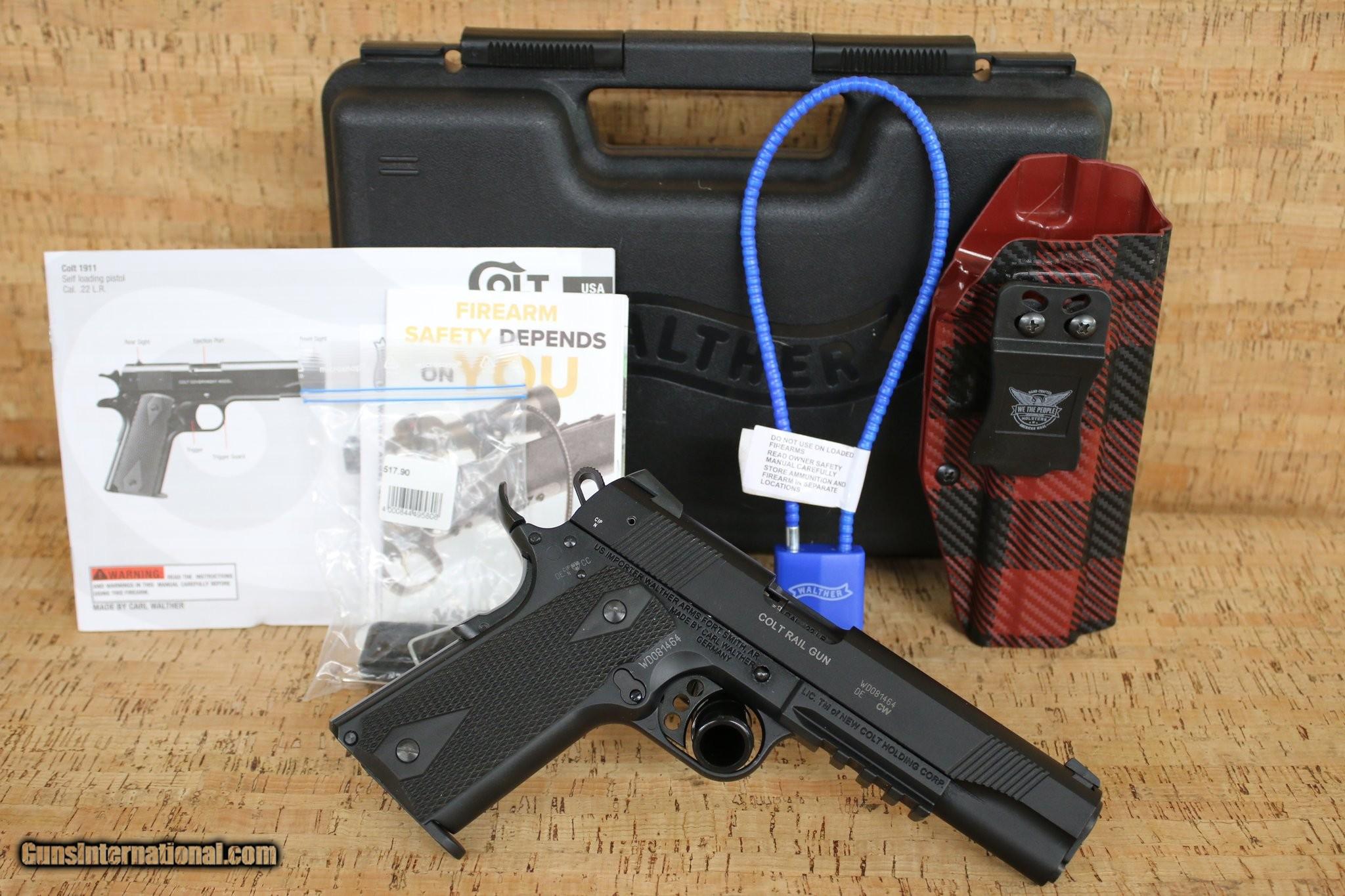Description: Guns Listing ID: 615005 The Walther Colt 1911 Rail Gun .22LR is a scaled-down, .22LR replica of the classic Colt 1911, made by Walther under license from Colt, offering the look, feel, and ergonomics of the full-size pistol with affordable .22LR ammo for training or plinking. Key features include an aluminum frame, Picatinny rail, adjustable sights, and authentic 1911 controls (thumb safety, grip safety) for realistic practice, with modern touches like front/rear slide serrations. It‚s known for reliability, accuracy, and being a fun, low-cost way to train on the iconic 1911 platform. Manufacturer: WALTHER Model: COLT 1911 Caliber Info: .22 LR Condition: Used - Non-Certified Barrels: 5" BARREL Action: SEMI AUTOMATIC Finish: black Price: $499.99 Contact Seller |