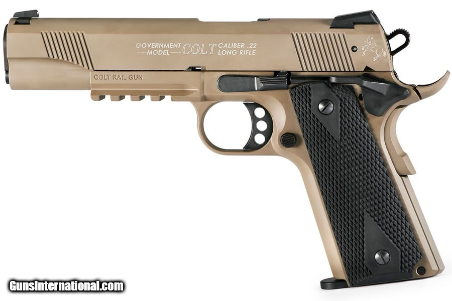 Description: Guns Listing ID: 419637 A semi-automatic handgun chambered in 22 LR the Walther Colt Government Model 1911 A1 Rail is a duplicate and the worlds only authentic replica - of the legendary Colt 1911 pistol carried by the United States military during numerous wars. Available with a 10- or 12-round capacity this single-action blowback operated pistol is made with all steel lock work 5 barrel and black grips. Other features include an authentic half-cock mechanism 1911-style field stripping threaded muzzle and fully-functioning thumb and grip safeties. The Colt Government Model 1911 has an overall length of 8.6. SOLD Manufacturer: WALTHER Model: COLT GOVERNMENT MODEL 1911-22 Caliber Info: .22 LR Condition: new Barrels: 5 BARREL |