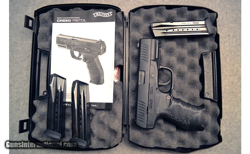 Description: The Creed offers a reinforced polymer frame with signature ergonomics that shooters have come to expect from Walther. The non-slip grip texturing, standard on most Walther pistols, ensures the gun remains firmly in the shooter's hand during use. The Creed features a pre-cocked double-action trigger system and a bobbed hammer that ensure a no-snag draw from a concealment. This system provides the shooter with a light and smooth trigger pull, consistent from the first shot to the last. All metal components are treated with a corrosion and abrasion resistant TENIFER coating, providing a matte black hardened surface. With an ambidextrous magazine release, low profile steel 3-dot sights, and front and rear cocking serrations on the slide, Walther refused to compromise on the quality or features of the Creed. Includes a hard case and three magazines. 9mm Luger SOLD Barrels: 4 Weight: 2 lb Item Location: christiana |