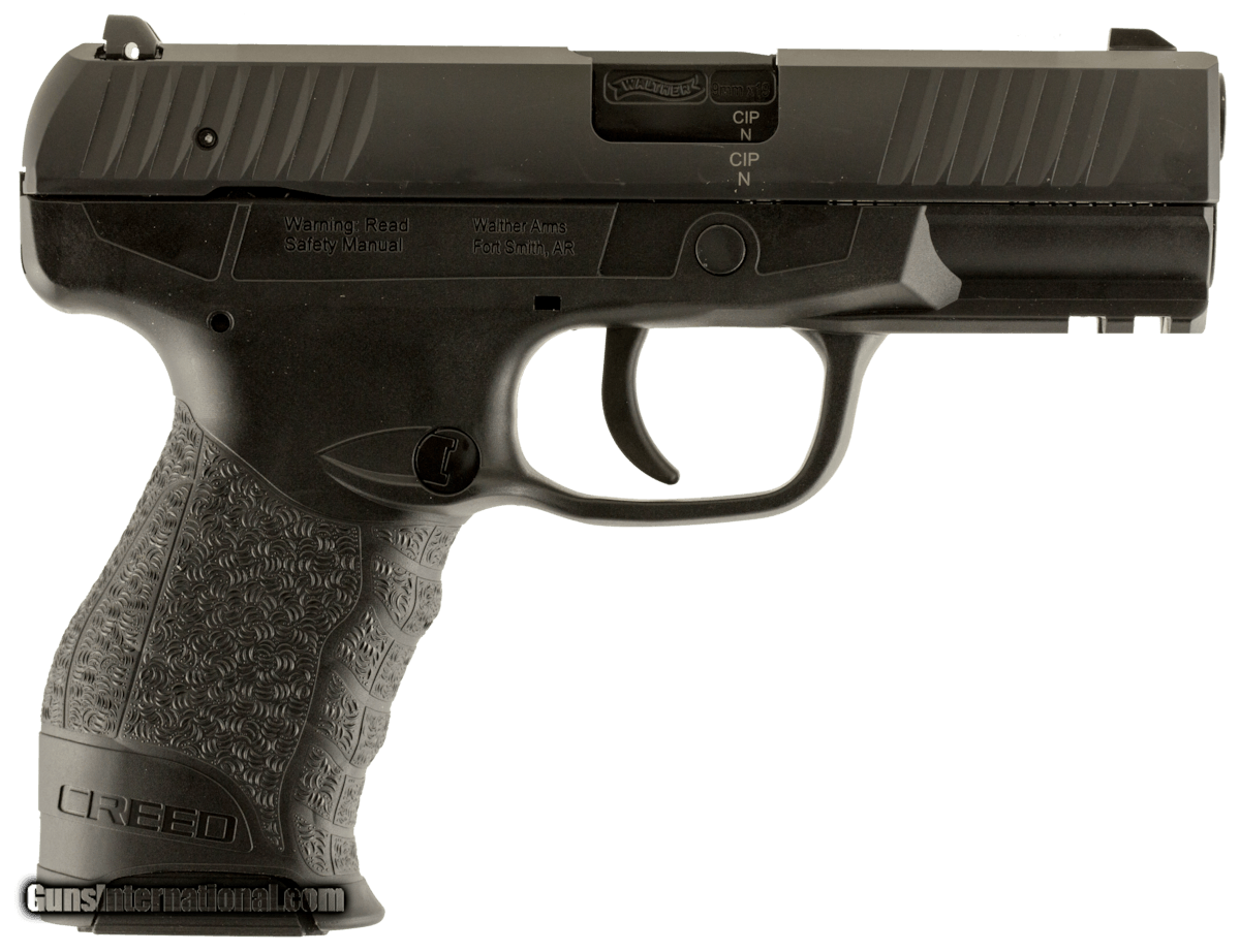 Description: Guns Listing ID: 487547 Engineered for accuracy and control the Walther Arms Creed is a semi-automatic handgun chambered in 9mm with a 161 capacity and a pre-cocked double-action trigger. The ergonomic shape and non-slip grip ensures a positive hold while the polymer frame is Tenifer-coated to resist corrosion. Other features include low-profile three-dot sights front and rear slide serrations in addition to an ambidextrous magazine release button and slide stop. Suitable for personal protection as well as target shooting the Creed also features a bobbed hammer to ensure a snag-free draw. Details For Walther those beliefs are superior ergonomics excellence in trigger design and unparalleled accuracy quality and reliability. The new Walther Creed makes a statement in modern polymer-frame handguns that all of these features can be achieved with an economic price-tag. The Creed offers a reinforced polymer frame with signature ergonomics that shooters have come to expect from Walther. - The Creed features a pre-cocked double-action trigger system and a bobbed hammer that ensure a no-snag draw from a concealment. This system provides the shooter with a light and smooth trigger pull consistent from the first shot to the last. All metal components are treated with a corrosion and abrasion resistant TENIFER coating providing a matte black hardened surface. With an ambidextrous magazine release low profile steel 3-dot sights and front and rear cocking serrations on the slide Walther refused to compromise on the quality or features of the Creed. - Caliber 9mm - Finish Color Tenifer Black - Barrel Length 4 - Trigger Pull 6.5 lbs - Trigger Travel 0.3 - Capacity 16 rds - Overall Length 7.3 - Height 5.6 - Width 1.3 - Safety 3 Auto - Weight (mag empty) 27 oz SOLD Manufacturer: WALTHER Model: CREED Caliber Info: 9MM LUGER (9X19 PARA) Condition: new Barrels: 4 BARREL Finish: BLACK |