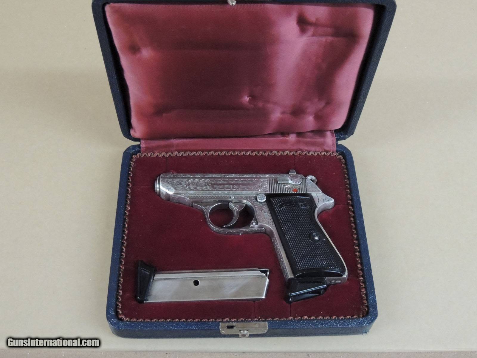 Description: WALTHER FACTORY ENGRAVED WEST GERMAN PPK/S .380 PISTOL IN CASE, FACTORY SILVER PLATED, 1971 CHAMBER DATE, TWO MAGAZINES, IN WALTHER PRESENTATION CASE, 99% $3999 ******* (PLEASE REFERENCE OUR INVENTORY NUMBER) (PAYMENT OPTIONS) (Postal Money Order) (Cashiers Checks) (Personal Checks (Item held until Check Cleared) ***(Layaway 120 days-(No Interest)-(Pay any way, any time you like over the term) -(Deposit required)*** (Credit Cards Visa or Master Card 3% fee added to total sale) (GA residents 7% sales Tax Applies) (FAX 888-597-1394) (BEST PHONE/TEXT 229-424-8450) (SHIPPING $35.00) SOLD |