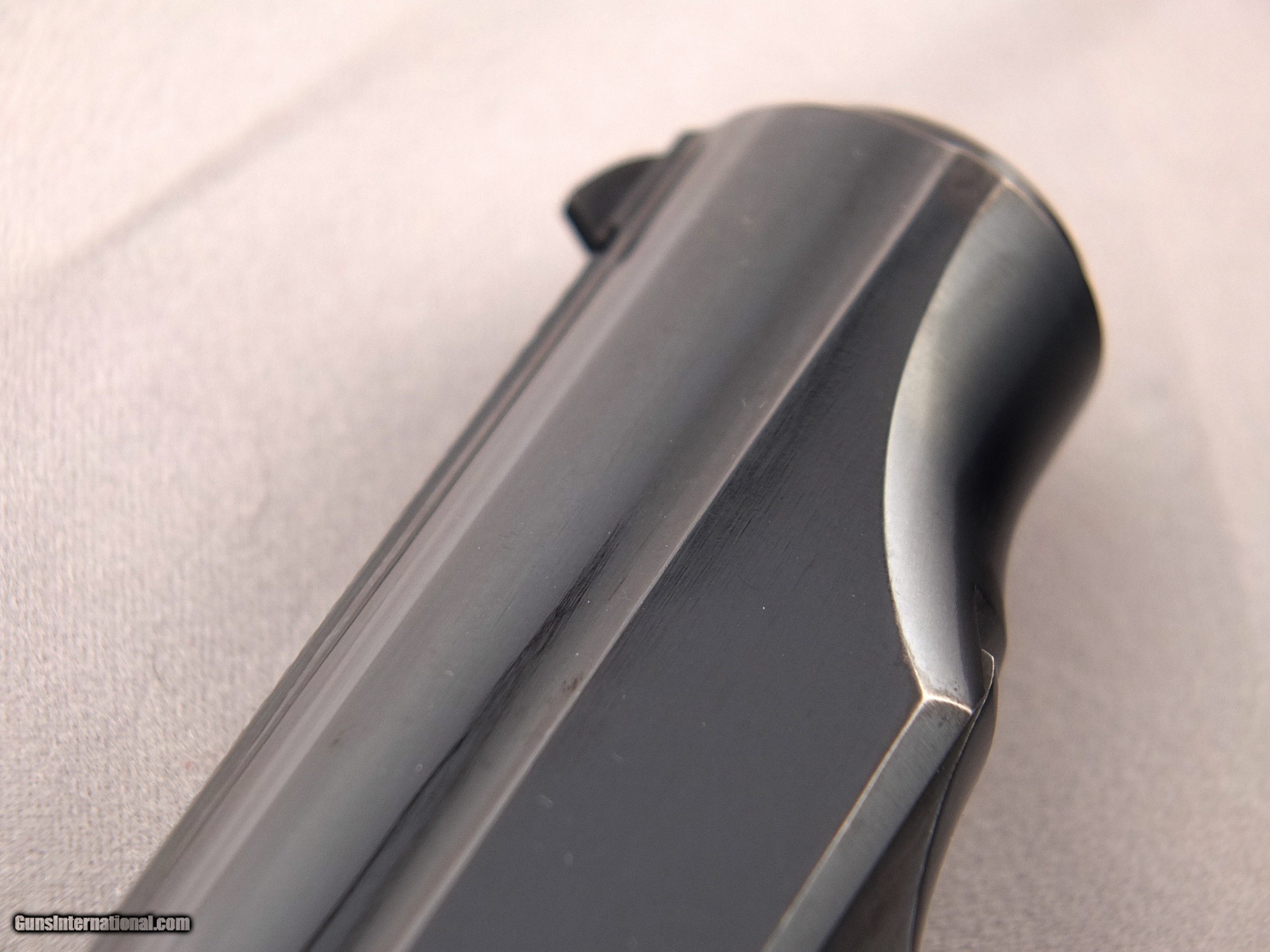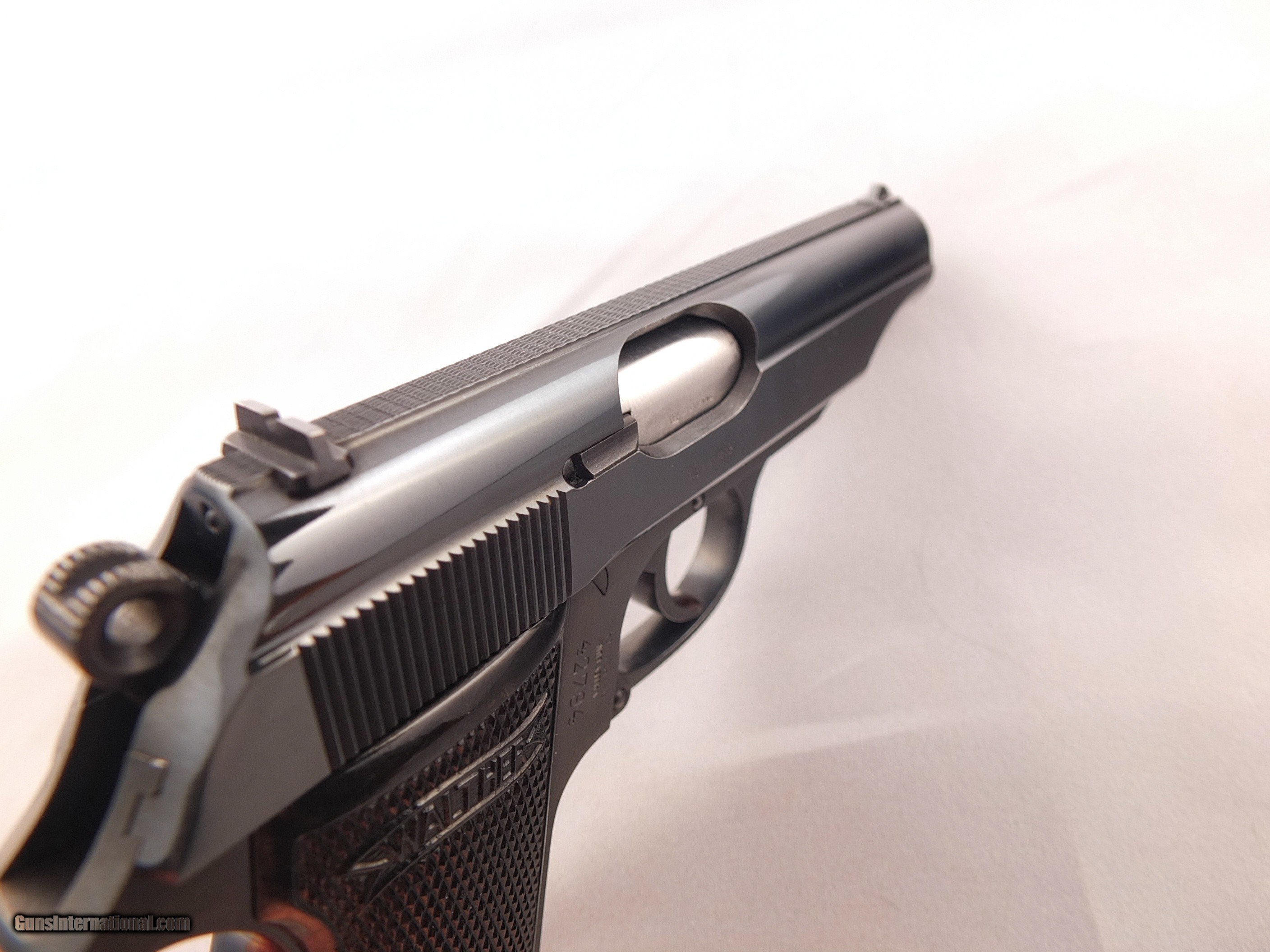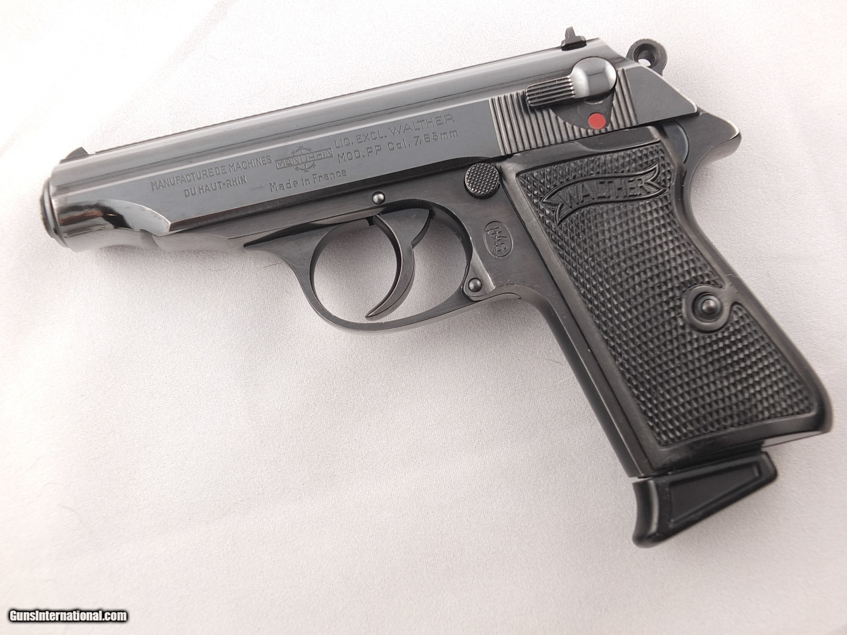 Description: Walther Manurhin Model PP .32 acp with a deep gloss blue finish. Excellent overall condition with slight holster wear to the slide.Bluing is strong deep gloss polished finish with slight edge wear near the muzzle on the left side which is only perceptible under bright light. Includes two magazines. Serial number dates to 1955. C&R Eligible. Note: The bluing is a a deep black gloss blue. The photos make the bluing appear lighter than it actually is $675 plus $25 shipping and handling. SOLD! SOLD Handgun Caliber: .32 ACP (7.65x17mm Browning SR) Manufacturer: Walther Manurhin Model: PP Serial Number: 42794 Condition: Excellent Metal Condition: Excellent Bore Condition: Excellent Action: Semi-Auto Finish: High Gloss Blue Sights: Fixed Manufacture Date: 1955 Extras: Two Magazines Case: None Item Location: Rio Rancho, NM |