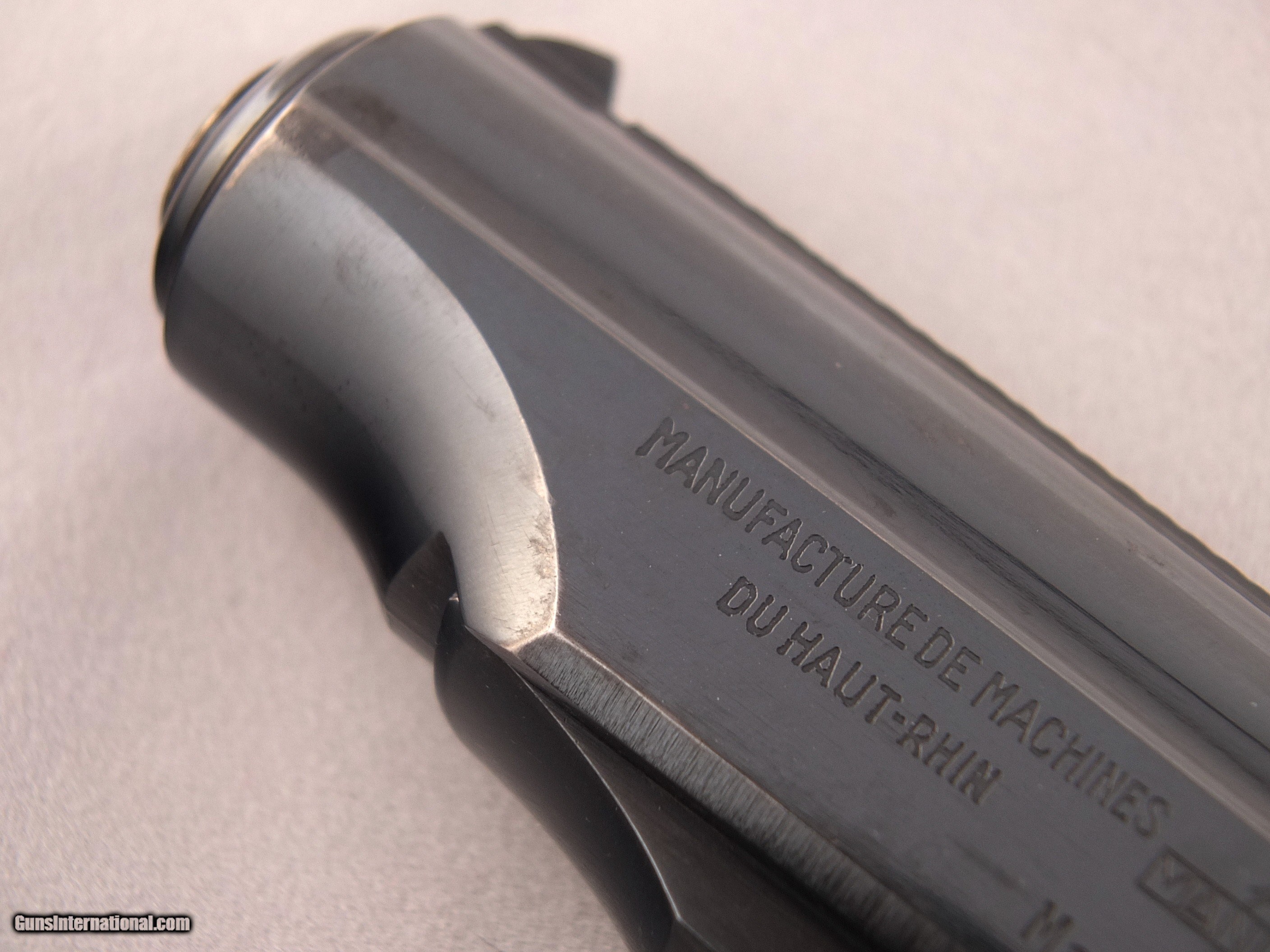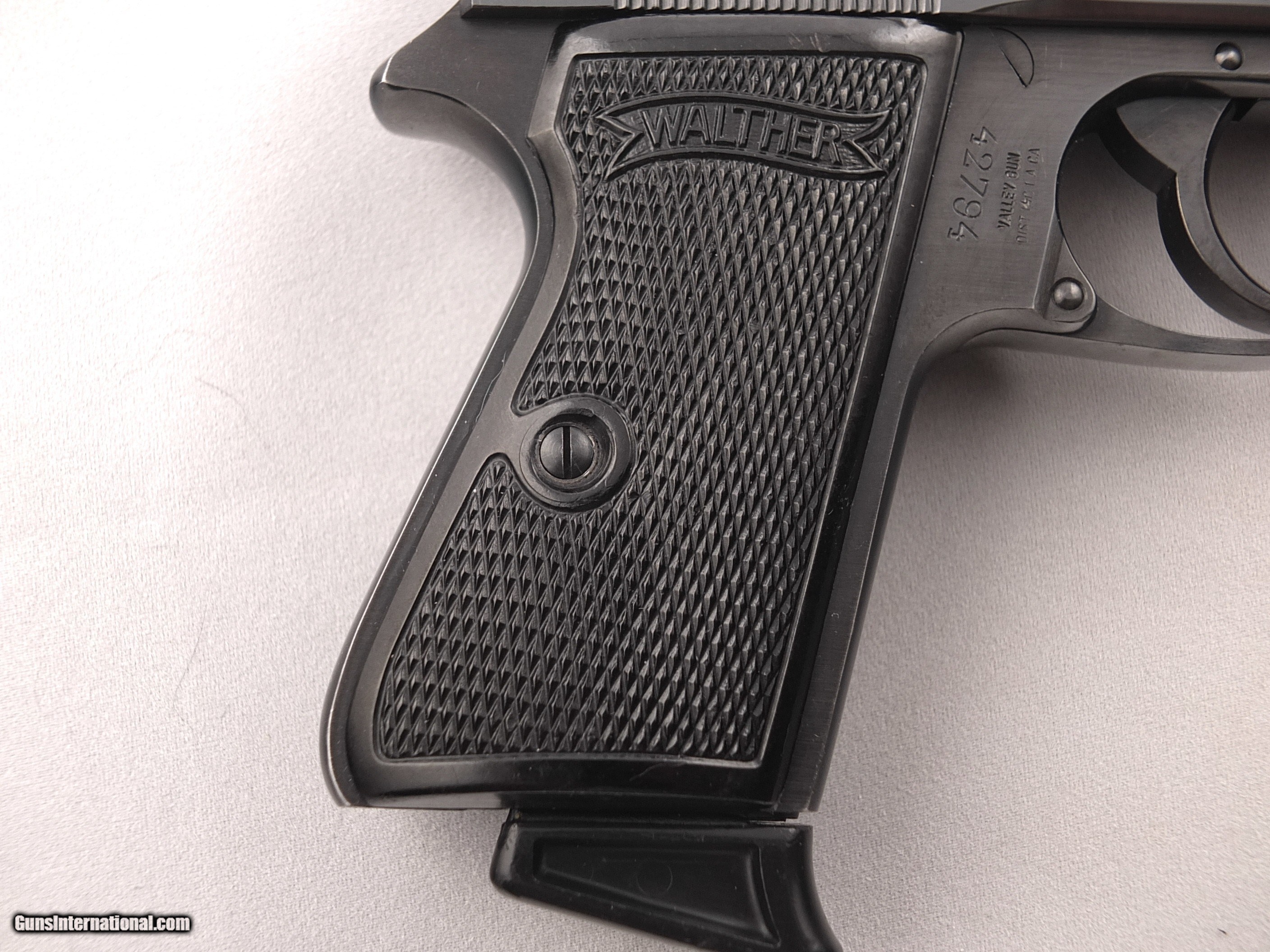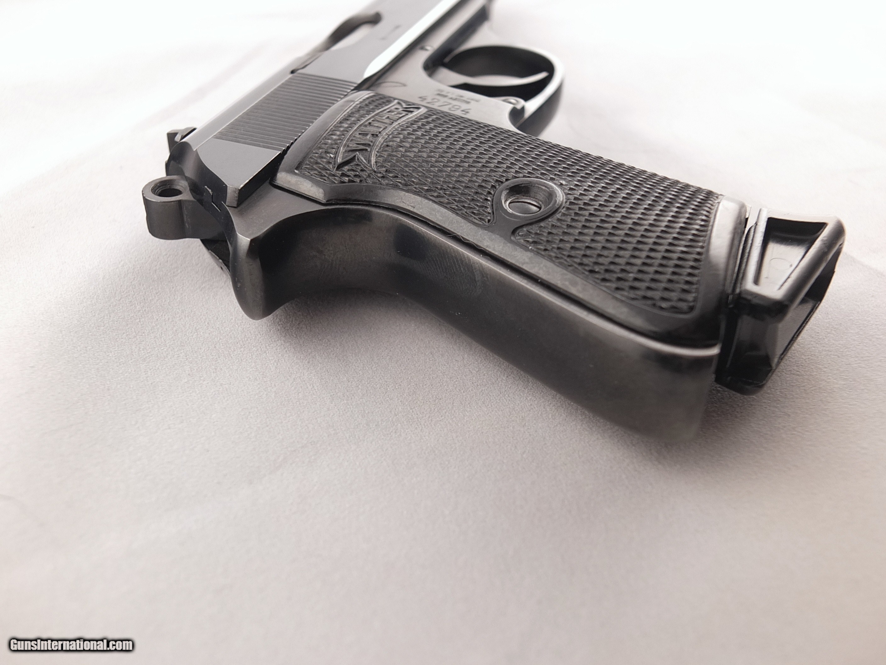 Description: Walther Manurhin Model PP .32 acp with a deep gloss blue finish. Excellent overall condition with slight holster wear to the slide.Bluing is strong deep gloss polished finish with slight edge wear near the muzzle on the left side which is only perceptible under bright light. Includes two magazines. Serial number dates to 1955. C&R Eligible. Note: The bluing is a a deep black gloss blue. The photos make the bluing appear lighter than it actually is $675 plus $25 shipping and handling. SOLD! SOLD Handgun Caliber: .32 ACP (7.65x17mm Browning SR) Manufacturer: Walther Manurhin Model: PP Serial Number: 42794 Condition: Excellent Metal Condition: Excellent Bore Condition: Excellent Action: Semi-Auto Finish: High Gloss Blue Sights: Fixed Manufacture Date: 1955 Extras: Two Magazines Case: None Item Location: Rio Rancho, NM |