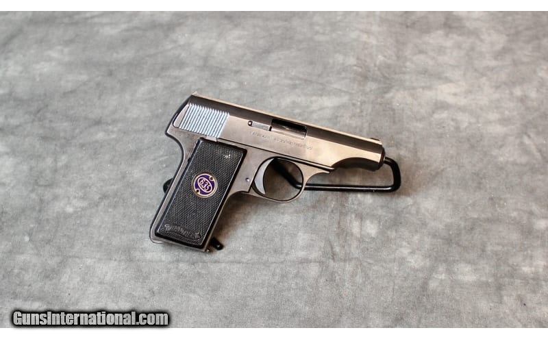 Description: 6.35mm (.25ACP). SOLD Chambers: 6.35 mm Metal Condition: Great Bore Condition: Good Barrels: 3 Inches Triggers: crisp Weight: .75 lbs Sights: Factory Item Location: Independence, MO |