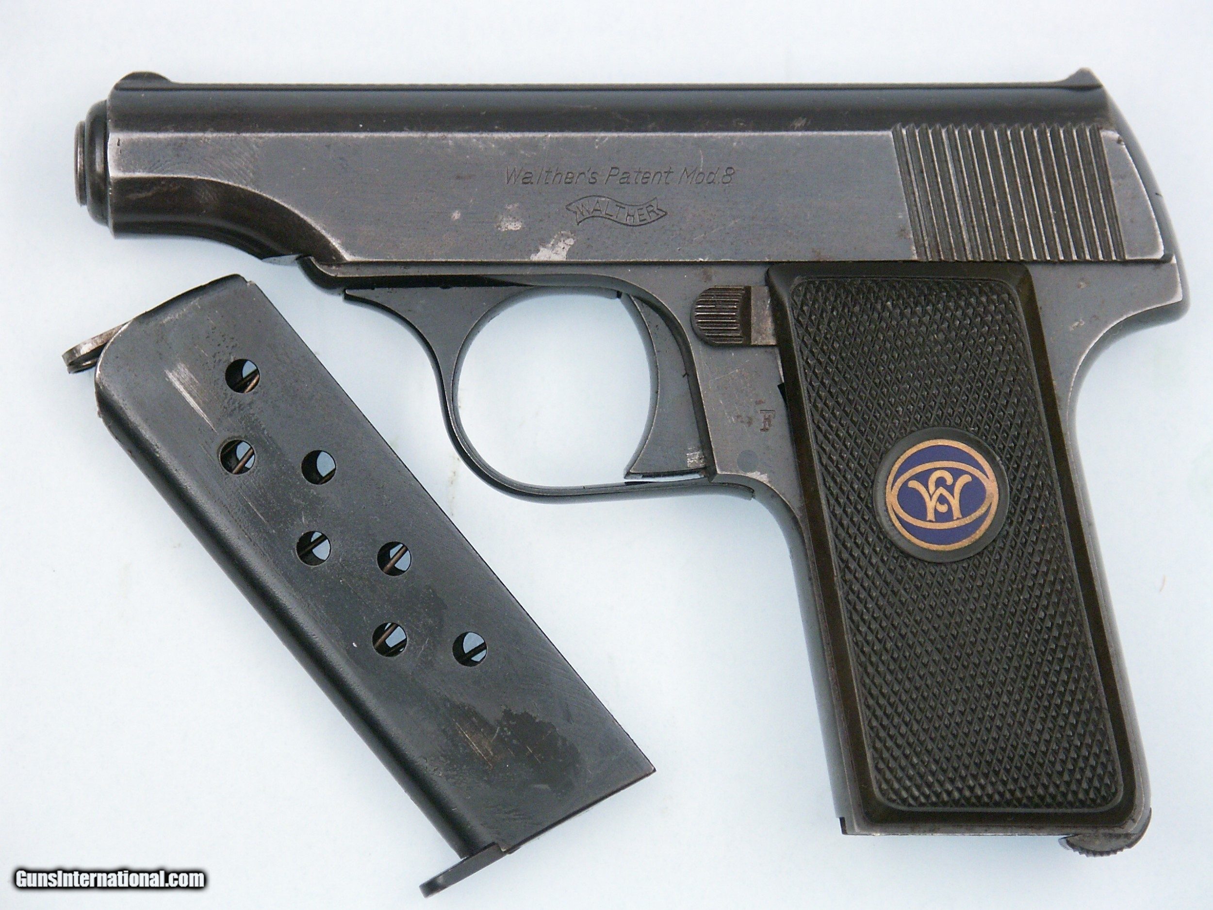Description: WALTHER MODEL 8 FIRST VARIATION This is one of the first variations based on serial number. 390000 to465700 designates a first. They were first produced in 1939 starting at S/N 90000. It is one of 390,000 produced. The left slide legend is “Walther’s Patent Mod. 8” over the WALTHER BANNER. Right slide legend is Waffenfabrik Walther Zella-Mehlis (Thur.) above the Crown / N Proof. S/N 39415X. Very good mechanical condition. Bluing is very good on both sides and the slide top. Grip straps have gone gray. Magazine is very good with a large, bold “W” on the base plate. Bore is shiny, clean and strong. Grips don’t appear to be worn or chipped. Enameled escushions are like new. I will consider old or odd automatics in trade. If you have any questions, feel free to as, but be specific. Normal 3 day non-firing inspection, you pay shipping, $50.00 to the lower 47. Double it to California, Alaska, and Hawaii. I am currently looking for a Walther Olympia with exposed hammer, a Beretta Model 80 in .22 short. and a Webley M1911 .22 LR Single shot. And scarce .25 autos. You can contact me at Heidiho1charter. Let me know what You are looking for. Maybe I can help. I have a 55 year collection of semi- auto pistols. SOLD Curio/Relic: Yes Handgun Caliber: .25 ACP (6.35mm Browning, 6.35×16mmSR) Manufacturer: Walther Model: Model 8 First Variation Serial Number: 39415X Bore: Very good shiny and strong Condition: Very good Metal Condition: Very Good Finish: Rust Blued Sights: Both Fixed Manufacture Date: 1930's Item Location: Richfield, WI Proof:Nitro: Crown/N |