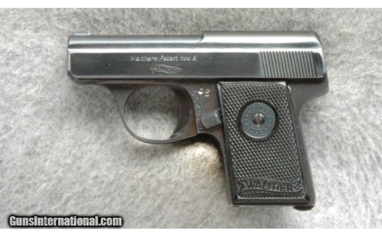 Description: SOLD Manufacturer: 1921-1945 Caliber Info: 6.35mm / .25 Auto Metal Condition: Very Good, Light Wear, Small Nicks from Handling and Use Bore Condition: Bright Barrels: 2 Stock: Walther Grips Weight: 12 Ozs Sights: Fixed Extras: With one mag, no box Item Location: La Vista, NE |