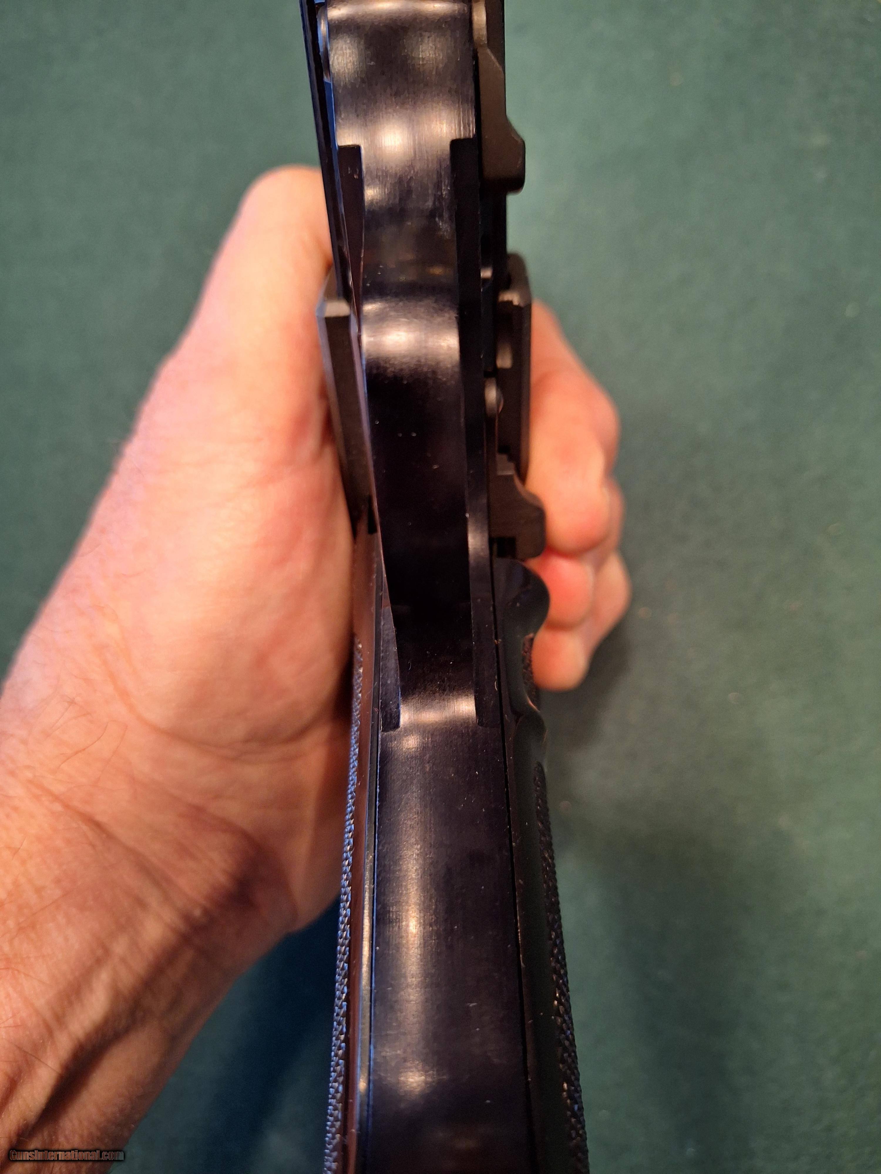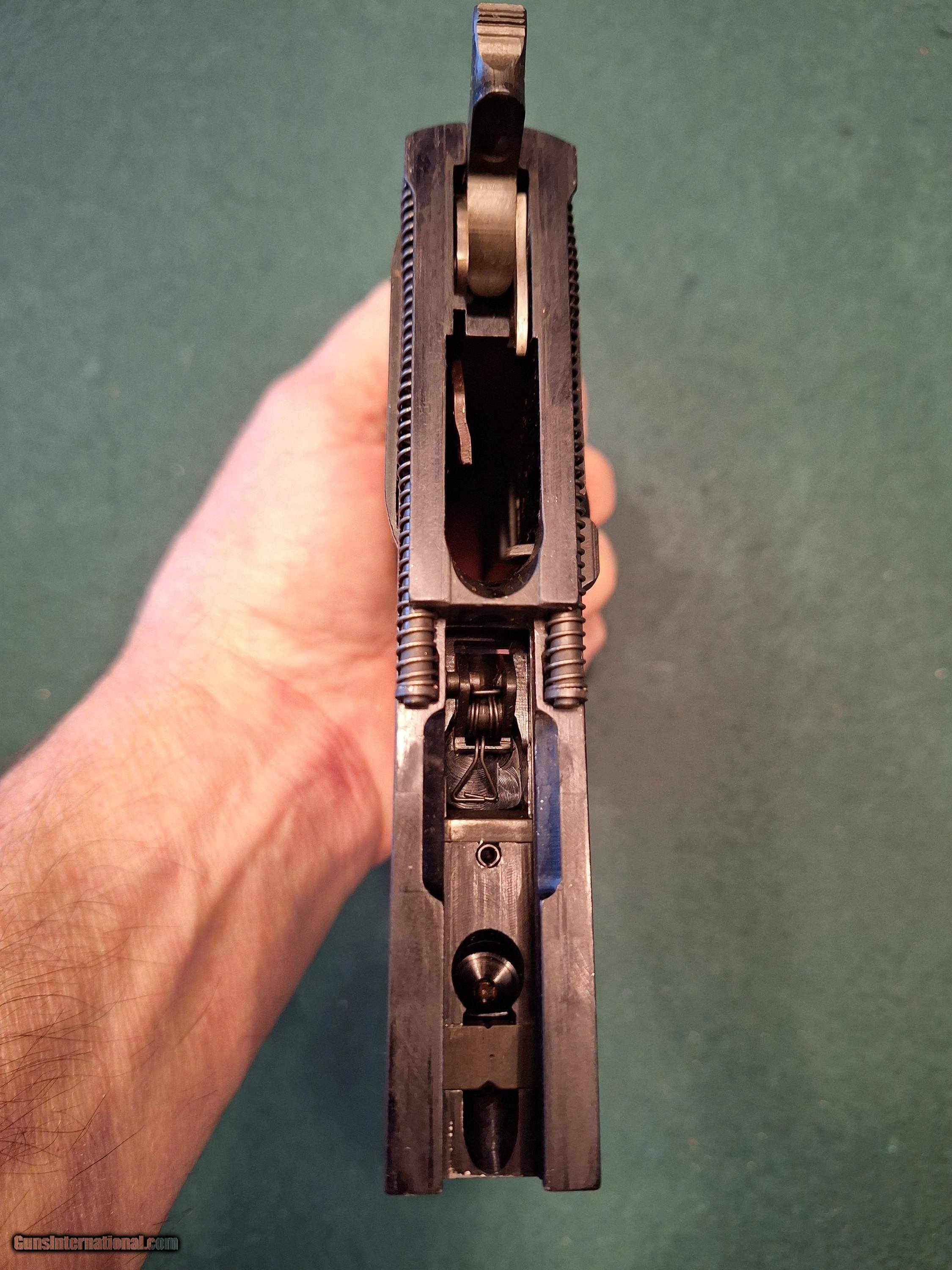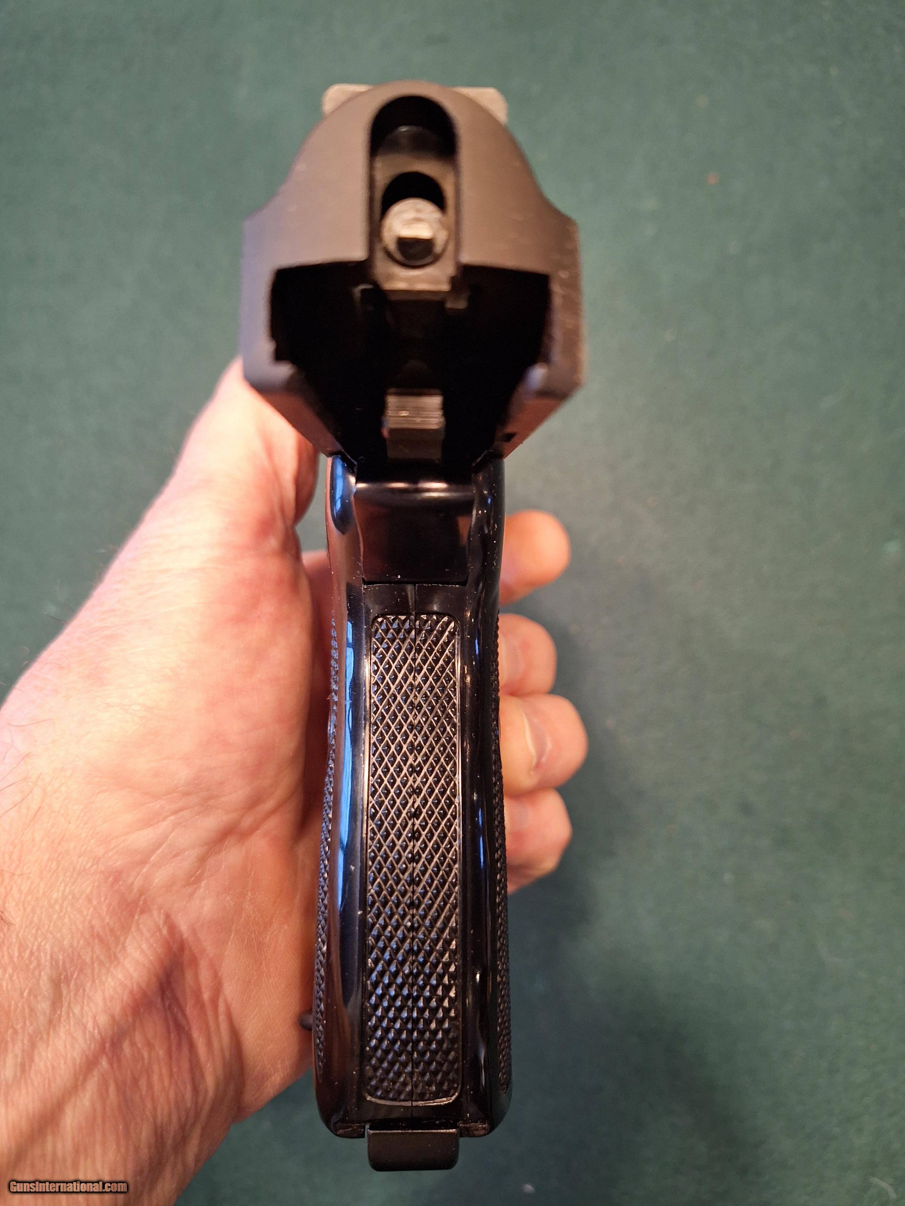 Description: Walther. Model P4. Cal. 9mm. 4 1/2" barrel. Factory phosphate finish on slide and barrel assembly with black anodized finish on alloy frame. Matching numbers box, RARE and spare magazine. Condition is as new with no indication of actual use. Box has very minor edgewear. Serial # 607037. Manufacturer: Walther Model: P-4 Serial Number: 607037 Barrel Length: 4.5 Condition: Like New Metal Condition: Like New Bore Condition: Excellent/ Bright Action: Semi D/S Price: $1,525.00 Contact Seller |