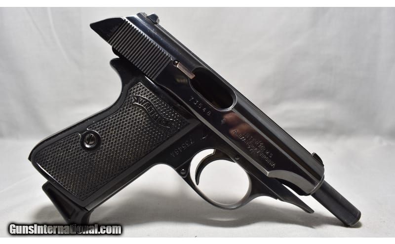 Description: This Walther Model PP 9mm Kurz is in outstanding condition. Made in W. Germany, the metal has a handful of small scratches. Action works smoothly. Grips show no visible cracks. It comes with two extra 7 round magazines and the factory box. This is a nice looking gun at a good price. 9mm Kurtz SOLD Chambers: 9mm with a 7 round magazine Metal Condition: Very Good Bore Condition: Very good Barrels: 3 1/2 Weight: 2 Sights: Fixed Item Location: Oklahoma City, OK |