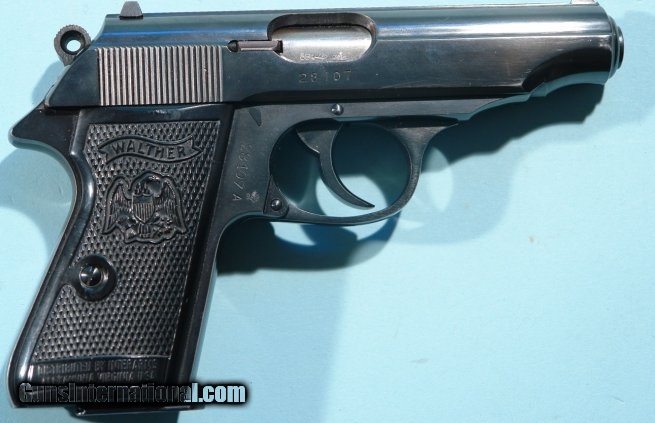 Description: WALTHER MODEL PP SEMI-AUTO .380ACP CAL. PISTOL CIRCA EARLY 1960’S. Interarms Corp. early Ulm, Germany production import with desirable “AMERICAN EAGLE” grips. Serial in the 28,xxx range and matching. 99% plus original blue. Mint bore and perfect working order. Original magazine. SOLD Curio/Relic: Yes |