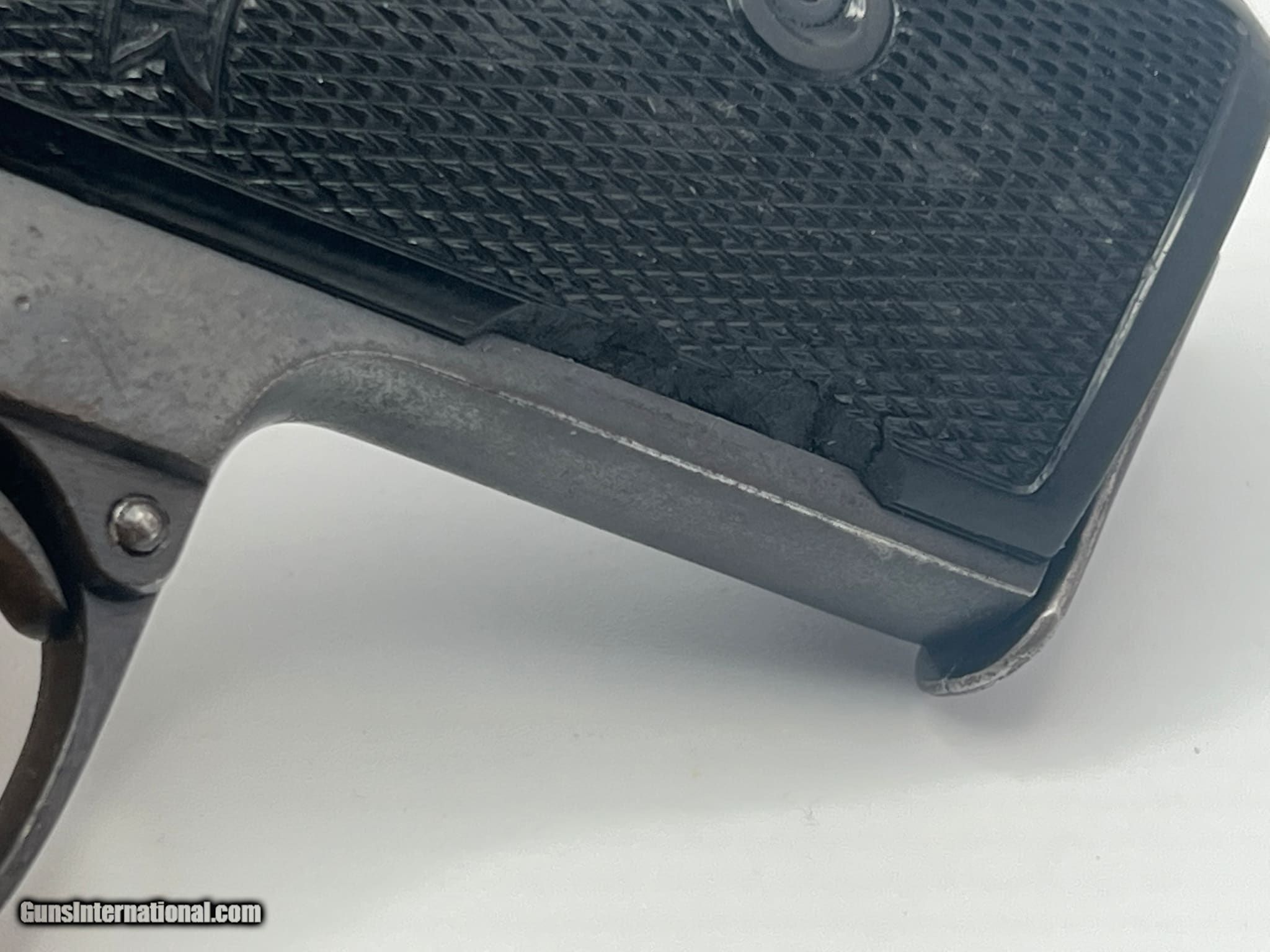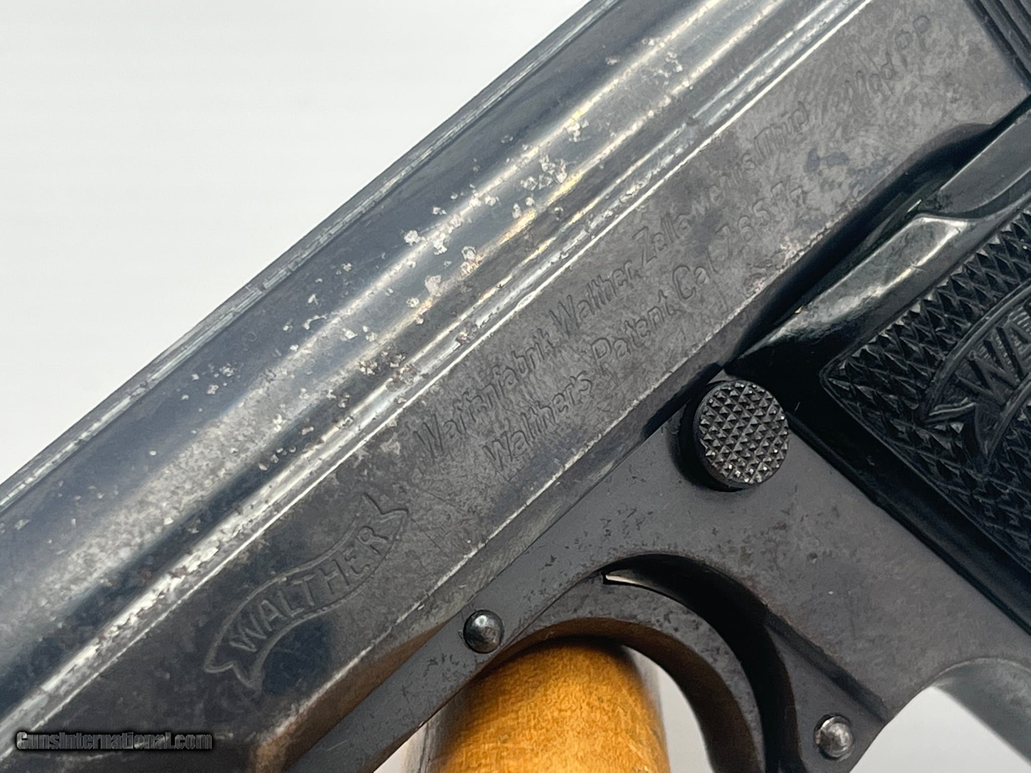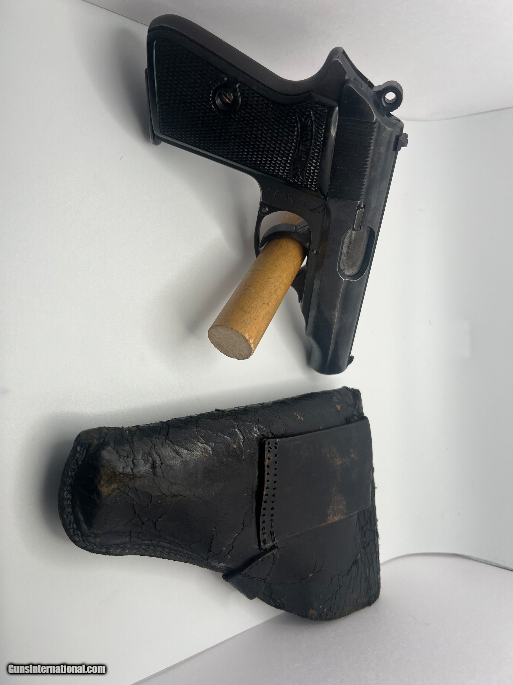 Description: Guns Listing ID: 672492 1940 Walther Model PP with holster! Very honest gun. Has a good bit of wear on slide. Has a chip on the grip. Make an offer! SOLD Manufacturer: WALTHER Model: MODEL PP Caliber Info: 7.65MM Condition: Used - Non-Certified Barrels: 4 BARREL |
