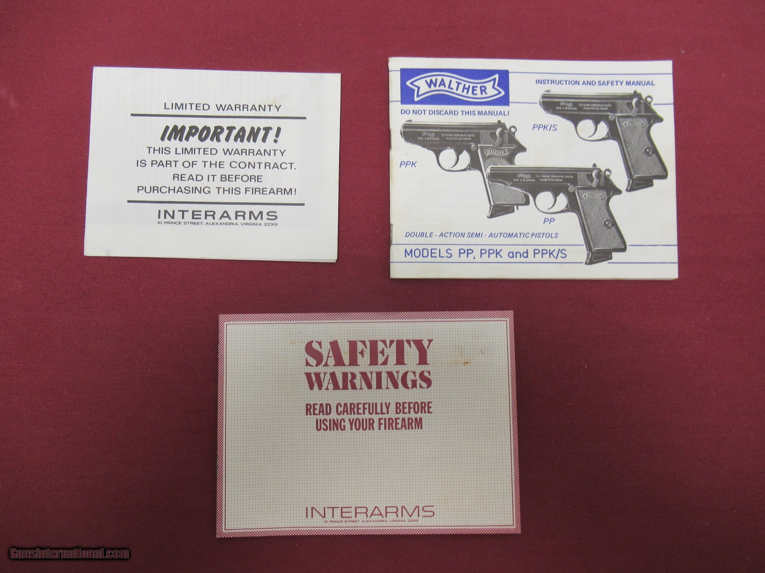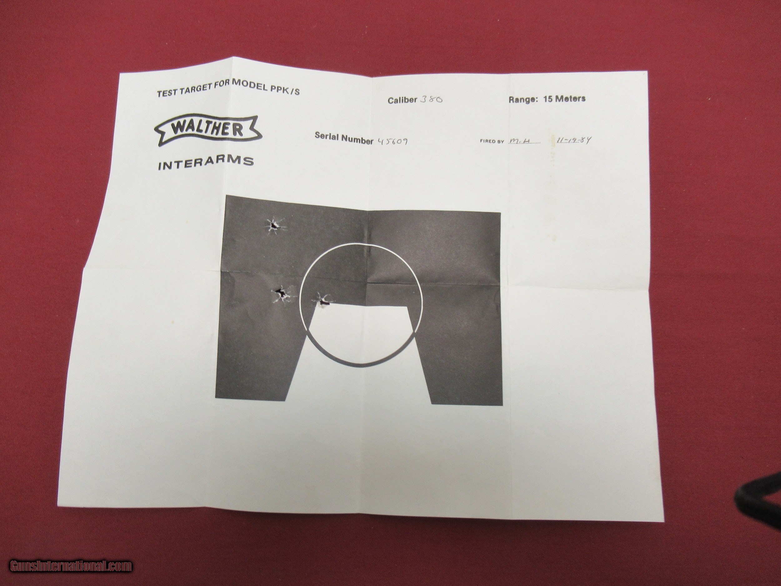 Description: New and Test Fired Only Walther Model PPK/S in Original Factory Box by Interarms USA. All the Papers including Test Target (Doesn't look like the shooter was a very good shot looking at the group). 3.3" Barrel and a Great Conceal Carry Pistol, especially for the Ladies. Test Target is dated 11-1984 so this gun has been in a collection for some time. Still has Packing Lubricant on gun. Did wipe it down. One tiny mark on Trigger Guard, not sure the camera will pick it up. Priced to Sell. Thanks for Looking. SOLD |