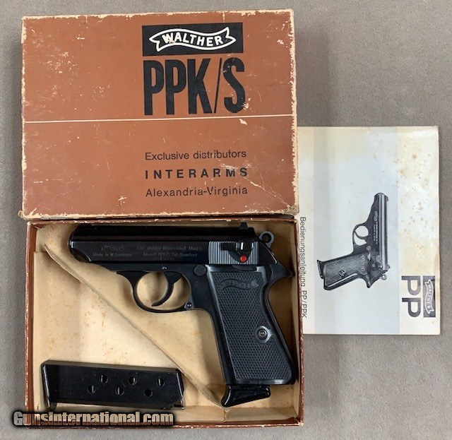 Description: A wonderful Walther Model PPK/S as imported by Interarms many years ago. Pistol is in 99% condition with a perfect bore and chamber, and in the original box with the correct label and also with the original manual. An exceptional package..... SOLD |