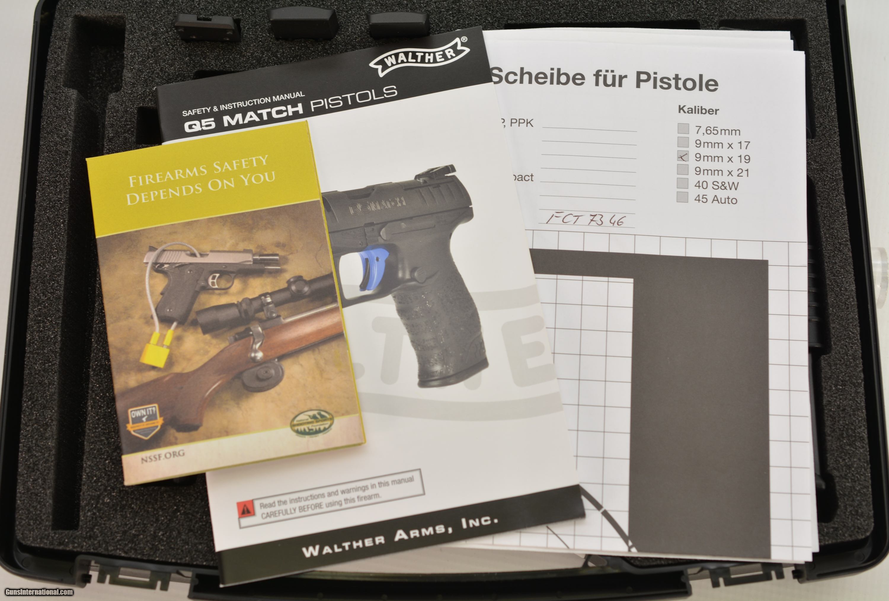 Description: Serial #FCT7346, 9mm Para., 4 3/4" barrel with an excellent, bright bore. This is Walther’s new centerfire target pistol and features a ventilated slide, adjustable target sights, accessory rail, Glock-style trigger, and hexagon-textured grips. The pistol is in practically new condition and comes with the original black plastic case, three 15 rd. magazines, three optical sight mounting platforms, two spare backstraps, magazine loading tool, and papers. This is a great modern Walther in virtually new-in-box condition. FFL SOLD Manufacturer: Walther Model: Q5 Serial Number: FCT7346 Caliber Info: 9mm Gauge Info: 9mm |