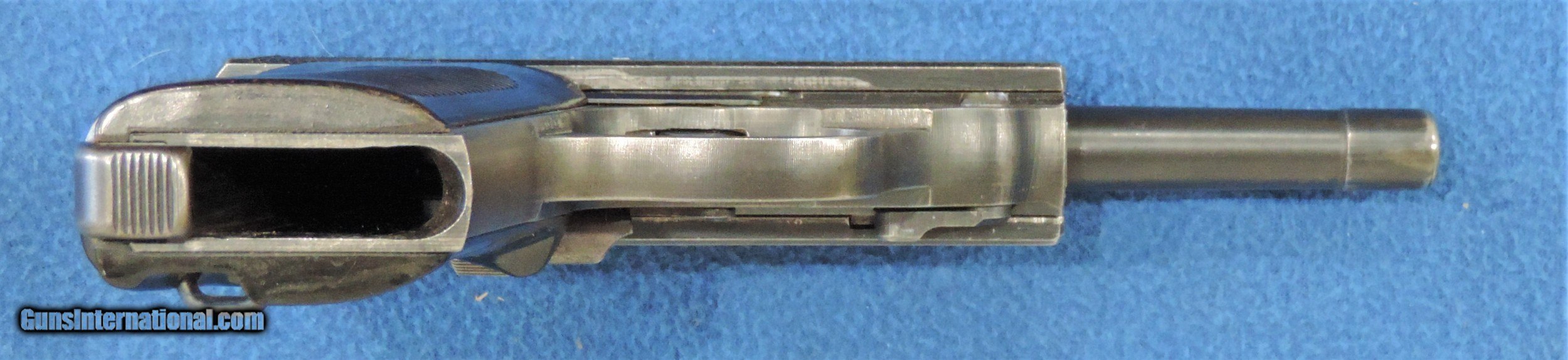 Description: Inv. 7095 Walther, P-38, (AC 43), Cal. 9mm, Ser. 69XX n. Super shape for a mid war example. The gun retains about 96-97% of the original factory rough blue finish. The only loss seems to be usual muzzle wear and some slight sharp edge silver, from holster wear. There are no rust spots, pin pricks, rub marks or scratches anywhere. The right side of the slide is stamped Eagle/359, Eagle/Swastika, Eagle/ 359. The left side of the frame and the barrel block, Eagle/359. All numbers match. The correct black plastic grips are flawless, showing no wear. The slide rails and feed ramp show minimal use. The barrel is pristine. The bore is mirror bright with razor sharp rifling and almost no trace frost. It comes with one correct magazine stamped Eagle/88. This a will be a really lovely addition any collection, a great investment and some real fun at the range. Modestly priced...SHIPPED.....$1095. To purchase this firearm or if you want to request more information contact us at: Email ckguns[at]ymail[dot]com Phone 201-512-0002 Cell 201-575-6838 FAX 201-215-4759 We accept most major credit cards. Prices shown are Discounted 3% for Cash or Check. The buyer must be familiar with all the laws governing the purchase and the ownership of firearms in their own city and state. The Yankee Armorer, Inc is not responsible for any failure to comply with or observe these laws. The Yankee Armorer, Inc will only ship after full payment and receipt of all required documents. Shipping: Add $35.00 for handguns, $45.00 for long guns. New Jersey buyers are subject to a 7% sales tax. The Yankee Armorer, Inc offers a 3 day inspection period with full refund upon return of intact firearm and in the original condition. The Yankee Armorer, Inc offers a no interest lay away program - 25% down; 25% in 30 days; 25% in 60 days; and full payment in 90 days. Any violation of this policy is subject to restocking and forfeiture of all payments. Any variation from this policy must be agreed to in advance. Unshipped Cancelled sales are subject to a 20% restocking fee. Be advised that all firearms sold by The Yankee Armorer, Inc. or the Gun Exchange, LLC (SELLER) are sold as collector’s items. They have not been fired or tested for safety and must be examined by a license gunsmith prior to use. By purchasing any item from the (SELLER), you are agreeing to hold the (SELLER) free from any damages or lawsuits of any nature. Any item left for transfer or storage will be charged to $25.00 per month, per item from the day of its receipt. Any variation from this policy must be agreed to in advance. Store hours 10:00 am to 5:00 pm Tuesday -Saturday. It's always best to call for appointment. Store 201-512-0002, cell 201-575-6838. SOLD |