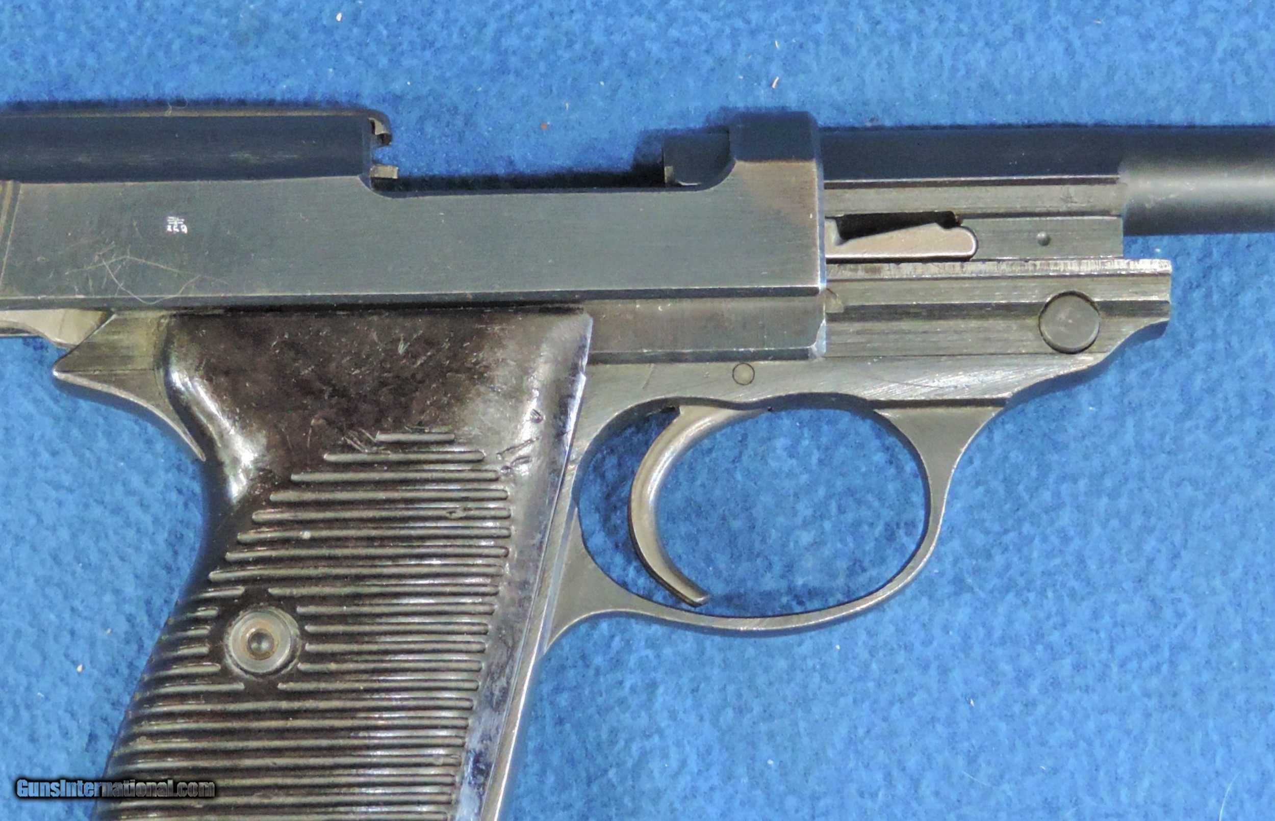 Description: Inv. 6725 **REDUCED IN PRICE** Walther P-38 (Coded ac 45) Cal. 9mm, Ser. 5391. In 1945 the "c" block was the very last batch to be made before the Allies took over the factory and almost all of the production consisted of mis-matched guns This "c" block P-38 is one of them. In fact Fjestad's Blue book says to add 20% to the value of a regular "C" block if found all matching This beauty is just about flawless. Even with the most critical examination it has retained at least 99.9 % of the original dull end of war factory finish. The only loss is some very slight sharp edge silvering. There isn't even any muzzle wear, surface scratches, rub marks or rust spots.The front grip have not started to gray. All parts have the proper Eagle/359 inspectors mark. The black plastic grips are factory new condition. Not a chip or nick anywhere. The slide rails, bolt face and feed ramps show no use. The barrel is absolutely pristine. The bore is mirror bright with razor sharp rifling with no frosting. It comes with one correct P-38 mag with the spine stamped Eagle/55. This "Cabinet Queen" was probably in the factory when overrun then into some GI's stateside Trophy Cabinet. .A great investment, a beautiful centerpiece, and great fun at the range. As always we guarantee your satisfaction..... REDUCED....SHIPPED.......$845. To purchase this firearm or if you want to request more information contact us at: Email ckgunsymail Phone 201-512-0002 Cell 201-575-6838 FAX 201-215-4759 We accept most major credit cards. Prices shown are Discounted 3% for Cash or Check. The buyer must be familiar with all the laws governing the purchase and the ownership of firearms in their own city and state. The Yankee Armorer, Inc is not responsible for any failure to comply with or observe these laws. The Yankee Armorer, Inc will only ship after full payment and receipt of all required documents. Shipping: Add $35.00 for handguns, $45.00 for long guns. New Jersey buyers are subject to a 7% sales tax. The Yankee Armorer, Inc offers a 3 day inspection period with full refund upon return of intact firearm and in the original condition. The Yankee Armorer, Inc offers a no interest lay away program - 25% down; 25% in 30 days; 25% in 60 days; and full payment in 90 days. Any violation of this policy is subject to restocking and forfeiture of all payments. Any variation from this policy must be agreed to in advance. Unshipped Cancelled sales are subject to a 20% restocking fee. Be advised that all firearms sold by The Yankee Armorer, Inc. or the Gun Exchange, LLC (SELLER) are sold as collector’s items. They have not been fired or tested for safety and must be examined by a license gunsmith prior to use. By purchasing any item from the (SELLER), you are agreeing to hold the (SELLER) free from any damages or lawsuits of any nature. Any item left for transfer or storage will be charged to $25.00 per month, per item from the day of its receipt. Any variation from this policy must be agreed to in advance. Store hours 10:00 am to 5:00 pm Tuesday -Saturday. It's always best to call for appointment. Store 201-512-0002, cell 201-575-6838. SOLD Curio/Relic: Yes |