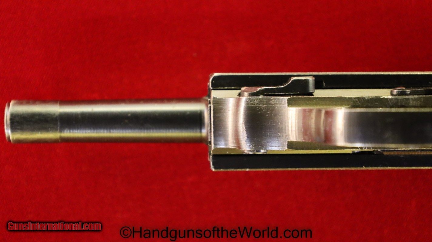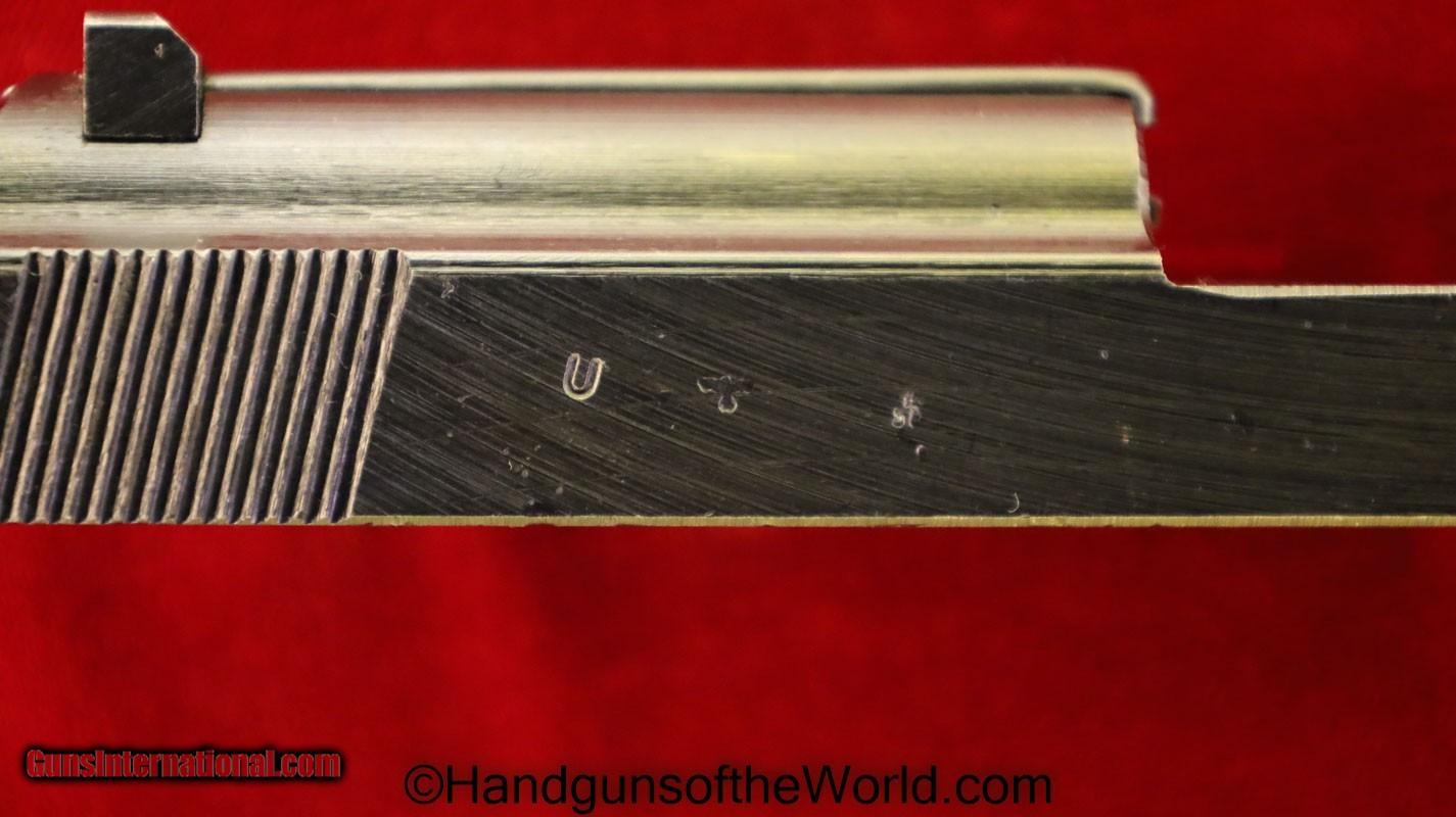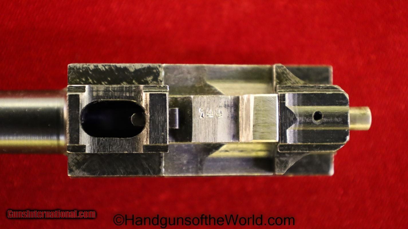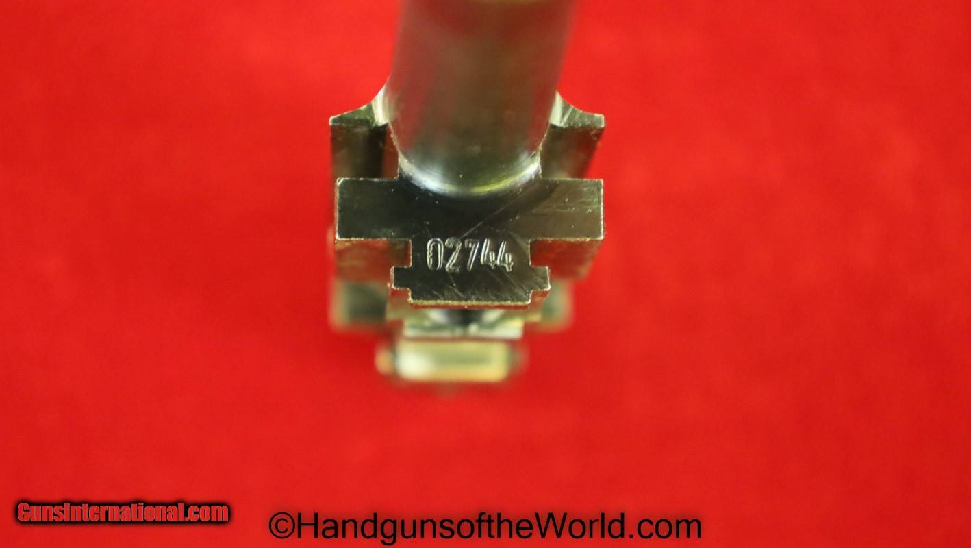 Description: Walther P-38, cyq, 9mm, Nazi WWII eagle 88 proofed on the slide and locking block. A U proof is present on the frame, slide and barrel. This has the late war cog hammer, has all matching numbers and no importer markings. This has deep 98% blue and an excellent bore. The magazine has been refinished. Curio/Relic: Yes Handgun Caliber: 9x19mm Parabellum (9mm Luger, 9x19mm NATO) Manufacturer: Walther Model: P-38 Price: $3,000.00 Shipping: $35.00 Contact Seller |