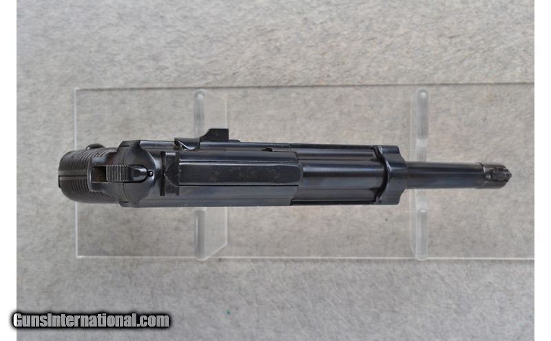 Description: This Walther Model P.38 is a right hand double action semi-auto pistol in 9mm Cal. It has a 4.75 inch barrel with a rear serrated slide. A blade front sight and notch rear sight. The grip is a ribbed brown Bakelite. Serial Number 6124G. ac above a 41 is stamped on the left side. 9mm Parabellum SOLD Chambers: 8 round magazine Metal Condition: Very Good. Some minor surface blemishes. Bore Condition: Excellent. Barrels: 4.75 inch. Triggers: Double Action. Weight: 34 oz. Sights: Blade front. Notch rear. Item Location: Richfield, WI |