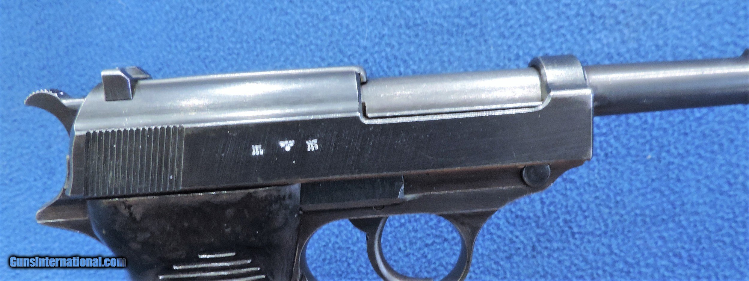 Description: Walther (Nazi Coded AC/42), P-38, Cal. 9MM, Ser.98XX k. This is a "sissy gun". This guy obviously sat out the entire war hiding under a bed. The condition is as new as a WWII can be. Conservatively it is at least 99+% original finish. The only loss there is, is from the very slightest sharp edge silvering and a tiny scratch. There is, literally nothing else to detract from the original finish. The right side of the slide is stamped with the three correct Eagle/359 and National proofs. The breech block and the right side of the plum colored frame also have the correct Walther proofs. All serial numbers match. The grips are absolutely without a blemish. As is the grip screw. The slide rails, bolt face and feed ramp show no wear. The bore, like the rest of the gun is pristine. Mirror bright with razor sharp rifling and not a touch of frost anywhere. It comes with one original magazine stamped P-38 on the side and Eagle/359 on the spine. It would be near impossible to find an issued AC-42 finer than this. A great investment, a beauty for the collector and it comes with our guarantee of purchase satisfaction.......SHIPPED.....$1295 To purchase this firearm or if you want to request more information contact us at: Email ckguns[at]ymail[dot]com Phone 201-512-0002 Cell 201-575-6838 FAX 201-215-4759 We accept most major credit cards. Prices shown are Discounted 3% for Cash or Check. The buyer must be familiar with all the laws governing the purchase and the ownership of firearms in their own city and state. The Yankee Armorer, Inc is not responsible for any failure to comply with or observe these laws. The Yankee Armorer, Inc will only ship after full payment and receipt of all required documents. Shipping: Add $35.00 for handguns, $45.00 for long guns. New Jersey buyers are subject to a 7% sales tax. The Yankee Armorer, Inc offers a 3 day inspection period with full refund upon return of intact firearm and in the original condition. The Yankee Armorer, Inc offers a no interest lay away program - 25% down; 25% in 30 days; 25% in 60 days; and full payment in 90 days. Any violation of this policy is subject to restocking and forfeiture of all payments. Any variation from this policy must be agreed to in advance. Unshipped Cancelled sales are subject to a 20% restocking fee. Be advised that all firearms sold by The Yankee Armorer, Inc. or the Gun Exchange, LLC (SELLER) are sold as collector’s items. They have not been fired or tested for safety and must be examined by a license gunsmith prior to use. By purchasing any item from the (SELLER), you are agreeing to hold the (SELLER) free from any damages or lawsuits of any nature. Any item left for transfer or storage will be charged to $25.00 per month, per item from the day of its receipt. Any variation from this policy must be agreed to in advance. Store hours 10:00 am to 5:00 pm Tuesday -Saturday. It's always best to call for appointment. Store 201-512-0002, cell 201-575-6838. SOLD Curio/Relic: Yes |