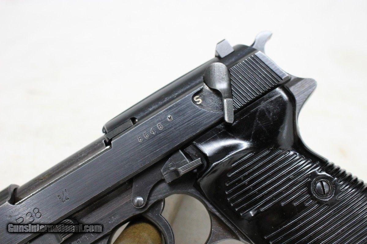 Description: We are offering for sale a Walther P38 byf 44 semi-automatic pistol chambered in 9mm. This is a FULLY NAZI MARKED Pistol with all matching numbers. This pistol is im excellent condition and comes with (2) P38 marked magazines and a NAZI MARKED holster. 5” barrel is very good with excellent rifling; Waffenamp marked on left side. Slide is excellent with light wear; Marked P38 and “byf 44” along with serial numbers on left side. Right side of slide has Waffenamp and Nazi eagle. Frame is marked with matching serial and waffenamp on left side in front of trigger. Gun functions flawlessly! Original black plastic grips are very good with light handling wear. Gun comes with (2) “P38 v” marked magazines. Gun comes in original NAZI MARKED holster sporting the “P38” mark along with “fkx 4”. Holster is in exceptional condition. AWESOME WWII COLLECTIBLE PISTOL! C&R ELIGIBLE Shipping $35.00 ***** WE ONLY ACCEPT VISA AND MASTERCARD (we charge a non-negotiable 3% CC fee) ***** PLEASE CHECK OUT ALL PHOTOGRAPHS FOR CONDITION Please know the legality of any weapon in your state before . If a gun can’t be transferred to you we will charge a 15% re-stocking fee. Also, we are a PART TIME business, Only in office Wednesday through Saturday 10am-4pm. If you make an offer on Sunday-Tuesday we may not get back to you for 24+ hours, please send us an email with any questions, and we will do our best to get back in a timely manner. Thank You. We are not a shop open to the public, no private viewings. We stand behind our descriptions, and gladly take returns, however we know based on the descriptions given, you will not be disappointed. No Face To Face Transfers! Please note: Clicking "buy" does not guarantee that this gun is yours, However clicking “Buy” will reserve this gun for you, if it hasn’t been sold in store. We will try to do our best to remove the posts as efficiently as possible, but sometimes delays may ensue. “Buy” is your safest bet to reserve a gun. Also please add 6.25% MA state sales tax (if from MA) and 3% credit card shop courtesy fee. After Clicking “buy” we will need the following from you, via email before we ship. 1: A copy of your preferred FFL’s license via email () 2: Your preferred method of payment (If Credit card: 16 digit, MM/YY exp date, 3 digit code Plus billing address) 3: Your Shipping information/ Your preferred FFL’s Shipping information. You have 5 business days to arrange payments and ffl information to us. Any purchase not completed within this time frame will be cancelled, and the ad will be put back active online. Please before calling with concerns read these conditions and meet them accordingly. SOLD Curio/Relic: Yes |
