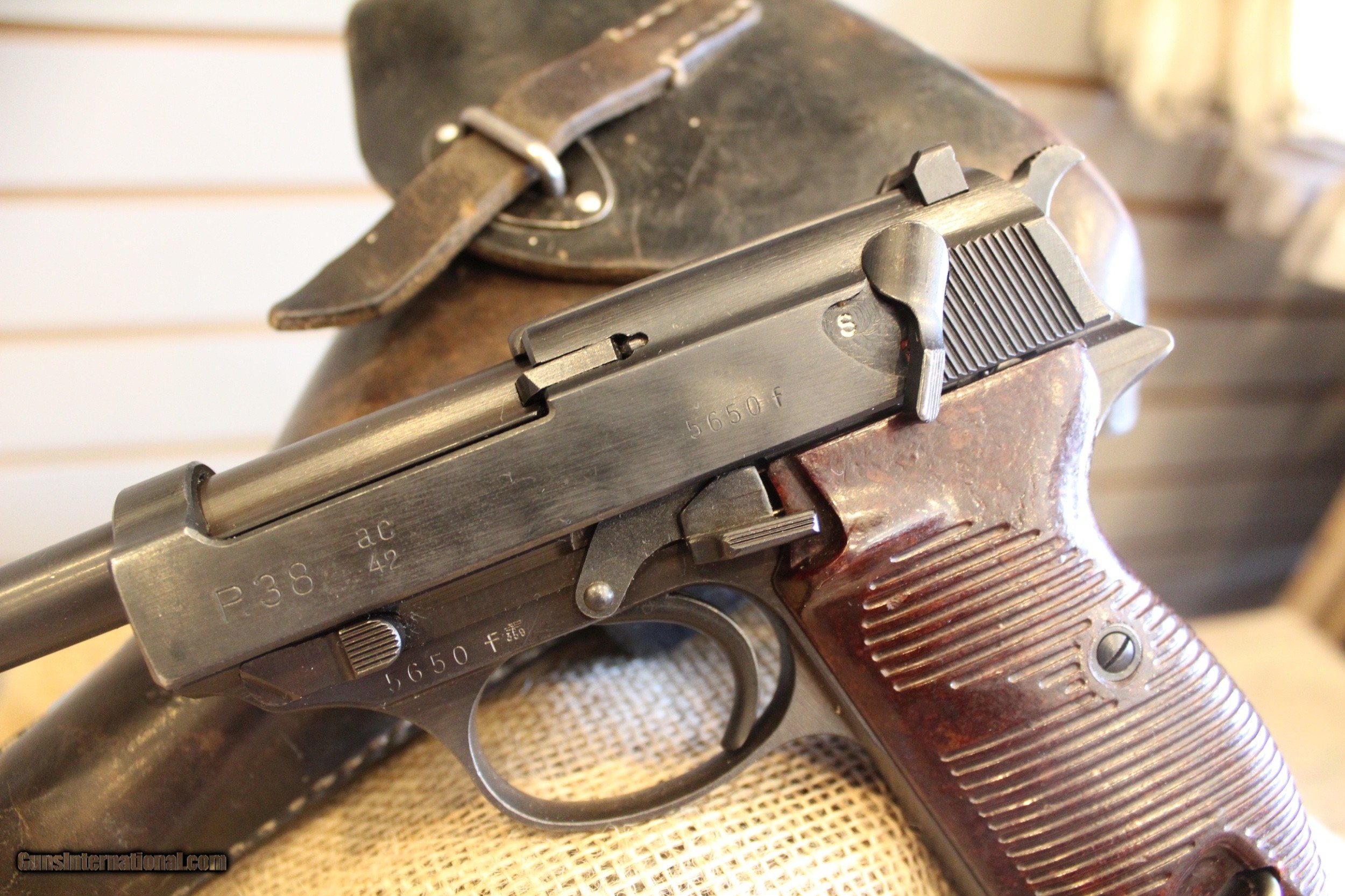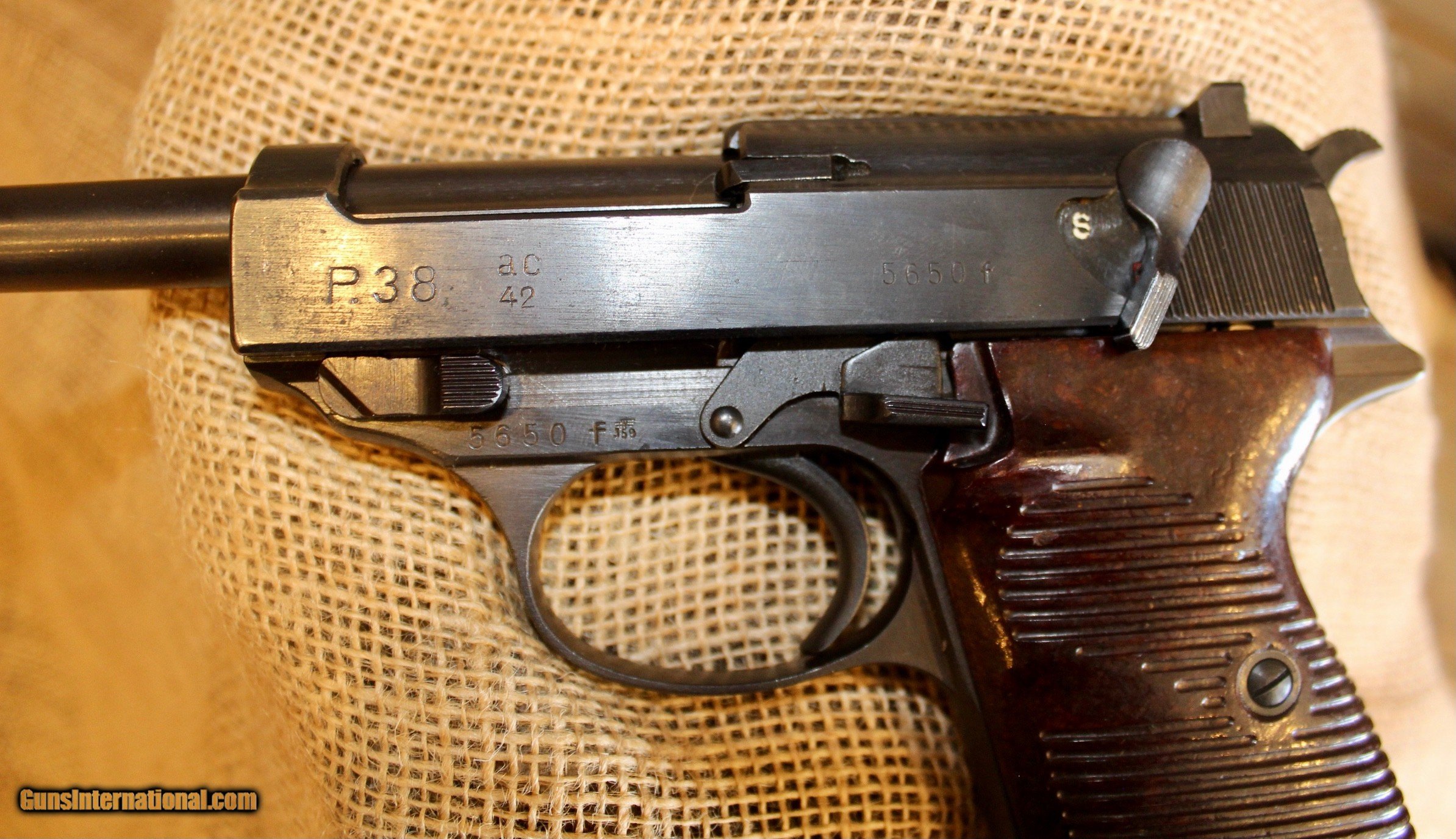 Description: You want this in your collection! Walther P.38 Semi-auto pistol, 9mm in good condition. Call Bill at 406-842-5271 for more information. SOLD Handgun Caliber: 9mm Federal Manufacturer: Walther Model: P.38 Serial Number: 5650f Condition: good Metal Condition: good Wood Condition: good Action: short recoil Case: Yes |