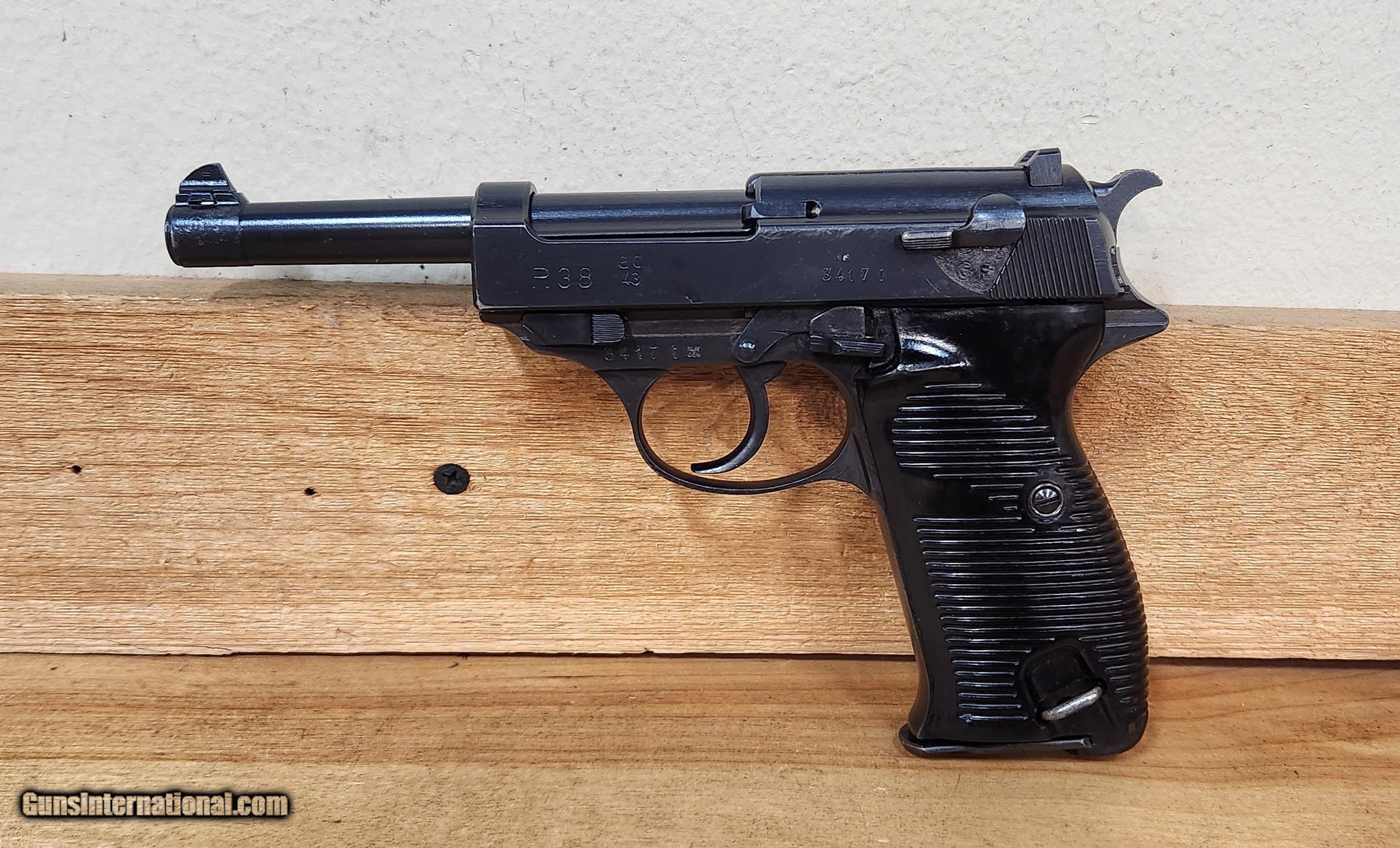 Description: Guns Listing ID: 1435852 This WWII era Walther P.38 was manufactured in Germany in 1943. The Nazis sought a replacement for the expensive and slow to make P08 Luger. They wanted less parts, simpler operation and more efficient manufacturing, which Walther accomplished. The P.38 went into circulation later in the war due to this. Overall it is in good condition. It functions and fires well, with decent accuracy. The bore and rifling in average condition. Comes as pictured with one magazine. It does have an import stamp underneath the grip beavertail \"nhm co sac ca\". SOLD Manufacturer: WALTHER Model: P.38 (WWII Era) Caliber Info: 9MM LUGER (9X19 PARA) Condition: Used - Non-Certified Barrels: 5 BARREL Finish: BLACK |