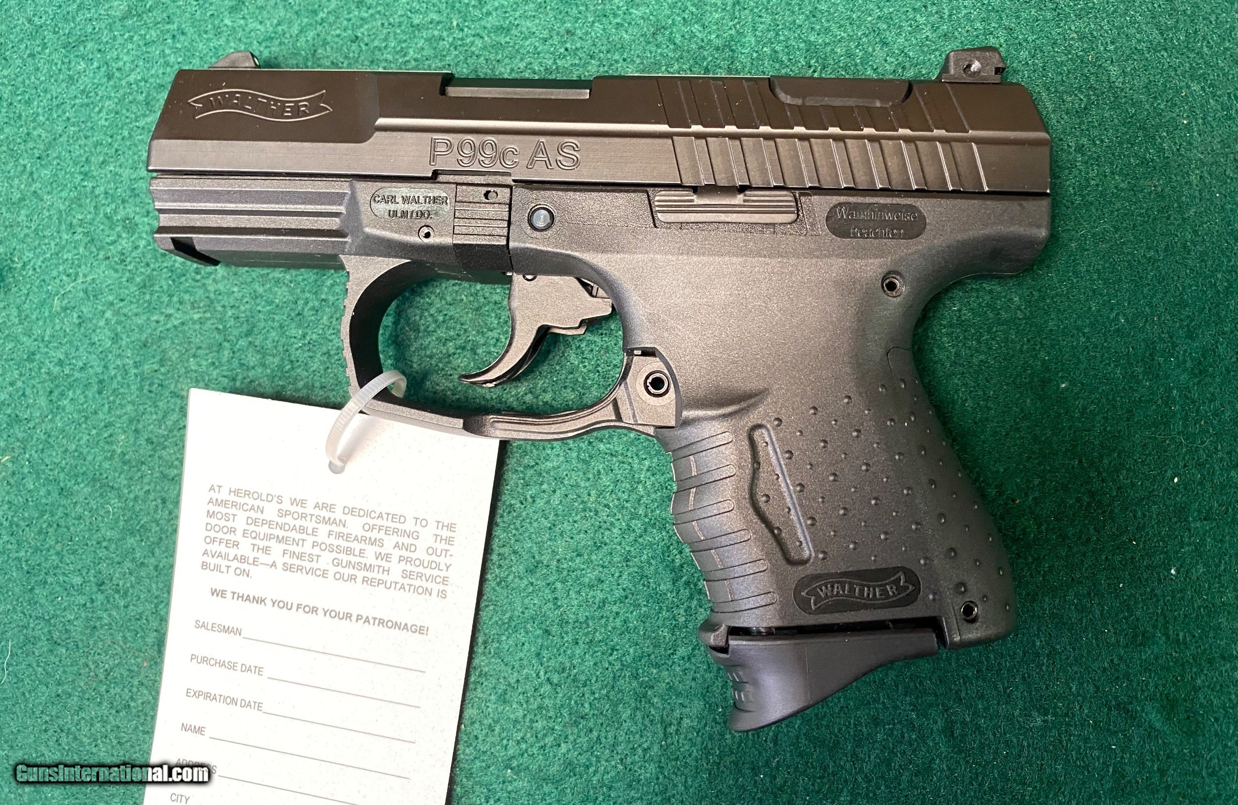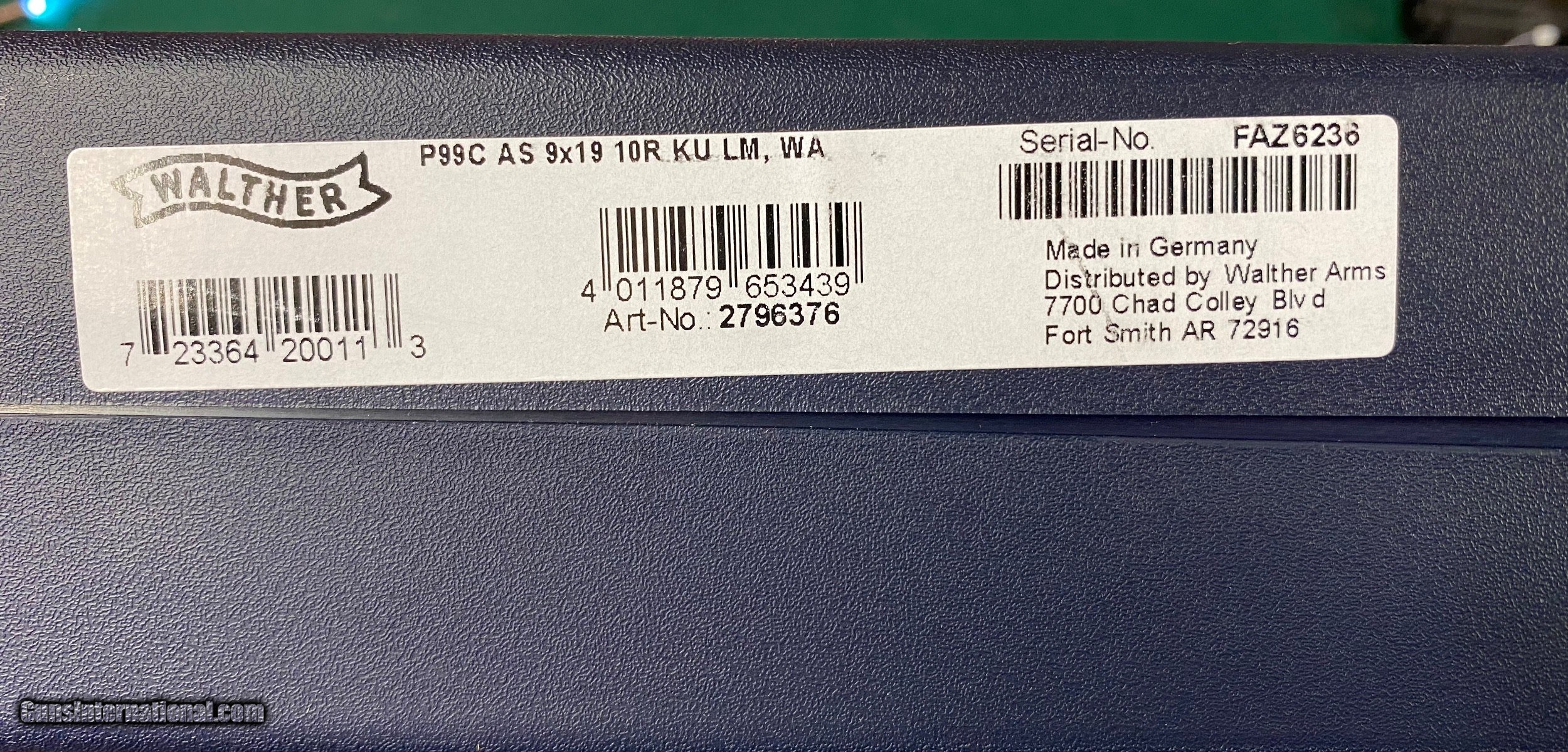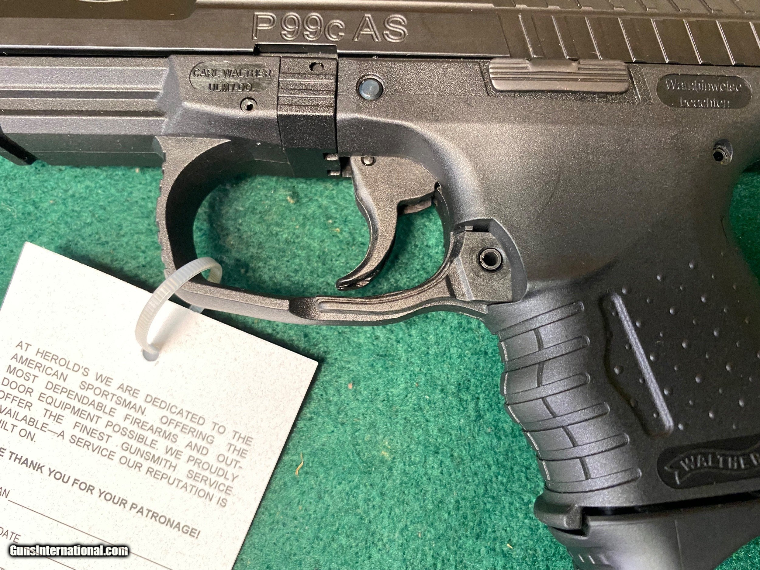 Description: Another interesting consignment item has come into the store. This time it's a Walther P-99c w/the Anti-Stress trigger system. VG/EXC condition. This is the compact model, and the magazine capacity is 10 rounds. It has a unique trigger system that features a two stage trigger plus a decocker button at the top of the slide. It also has a cocked striker indicator at the back of the slide. Factory box w/serial # that matches firearm, owners manual, factory target, extra front sights, & 2 magazines included. One mag has a pinky finger rest, the other is flat bottomed. Has "Made in Germany" stamped on the frame. Please see pics for more details. $595 + $30 shipping. We reserve the right to sell this item at our retail store until an offer is placed on Guns International. Credit cards are accepted with a 4% surcharge. A USPS money order is also accepted for payment. We are open Tuesday through Saturday, 9 AM to 5 PM. Closed on Sunday and Monday. Please make sure this item is legal to purchase in your area. 25% restock fee if your FFL can't process the sale in your area, and the item gets returned. Please use due diligence in making sure this item is okay to purchase where you live. We are a brick and mortar store that has been in business at the same location for over two decades. If you're in the Waynesboro, Pa. area, stop on by to see this item and other fine classic and modern firearms at George Herold's Gun Shoppe. We look forward to seeing you! SOLD Handgun Caliber: 9x19mm Parabellum (9mm Luger, 9x19mm NATO) Manufacturer: Walther Model: P-99c Serial Number: FAZ6236 Barrel Length: 4” Condition: VG/EXC |