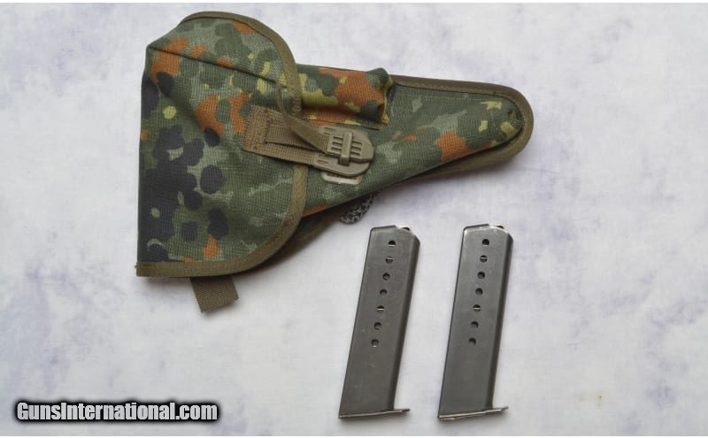 Description: This Walther P1 Serial #047636, has a slide dated 4/78 and rework stamp of W1.91 on the frame. Comes with Camo Holster and three (3) magazines. 9mm Parabellum SOLD Chambers: 9MM Parabellum Metal Condition: Good Bore Condition: Good Barrels: 5.0 Sights: Fixed Item Location: Green Bay |