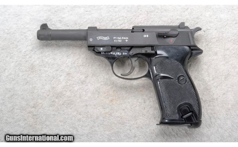 Description: This Walther Model P1 is a right hand double action semi-auto pistol in 9 mm Cal. It has a 5 inch barrel with a rear serrated slide. A blade front sight and notch rear sight with white highlights. The grip is a checkered hard black plastic. 9mm Luger SOLD Chambers: 7 shot magazine. Metal Condition: Good. Bore Condition: Excellent. Barrels: 5 inch barrel with a rear serrated slide. Triggers: SA/DA Weight: 28 oz. Sights: Blade front. Notch rear. White highlights. Item Location: Richfield, WI |