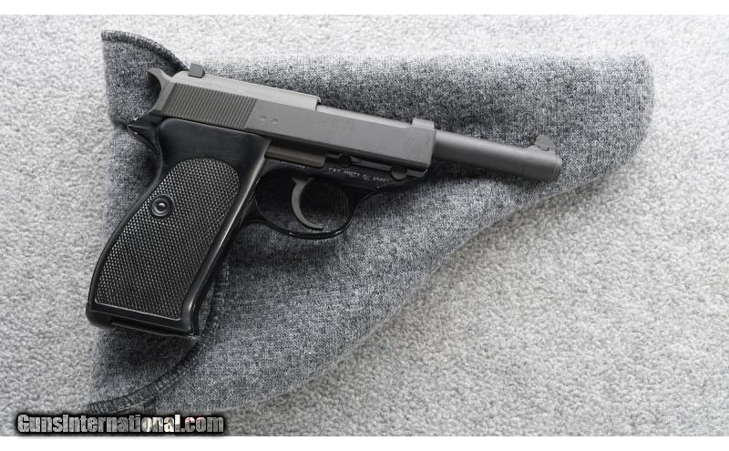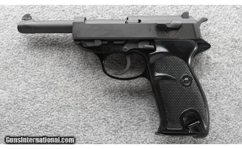 Description: The Walther P1 was officially adopted in 1957 as the Pistole 1. In 1975 the frame was reinforced with a hex bolt above the trigger and the slide was made stronger. Phased out of service in 2004, this example shows a build date of 3/1977. 9mm Luger SOLD Chambers: 9mm Luger Metal Condition: "Very good, showing light storage marks Bore Condition: Bright and sharp Barrels: 4.9 Triggers: Single/Double Action Weight: 32 oz. Sights: "Drift adjustable blade front and notched rear, two dot system Item Location: Grand Junction, CO |