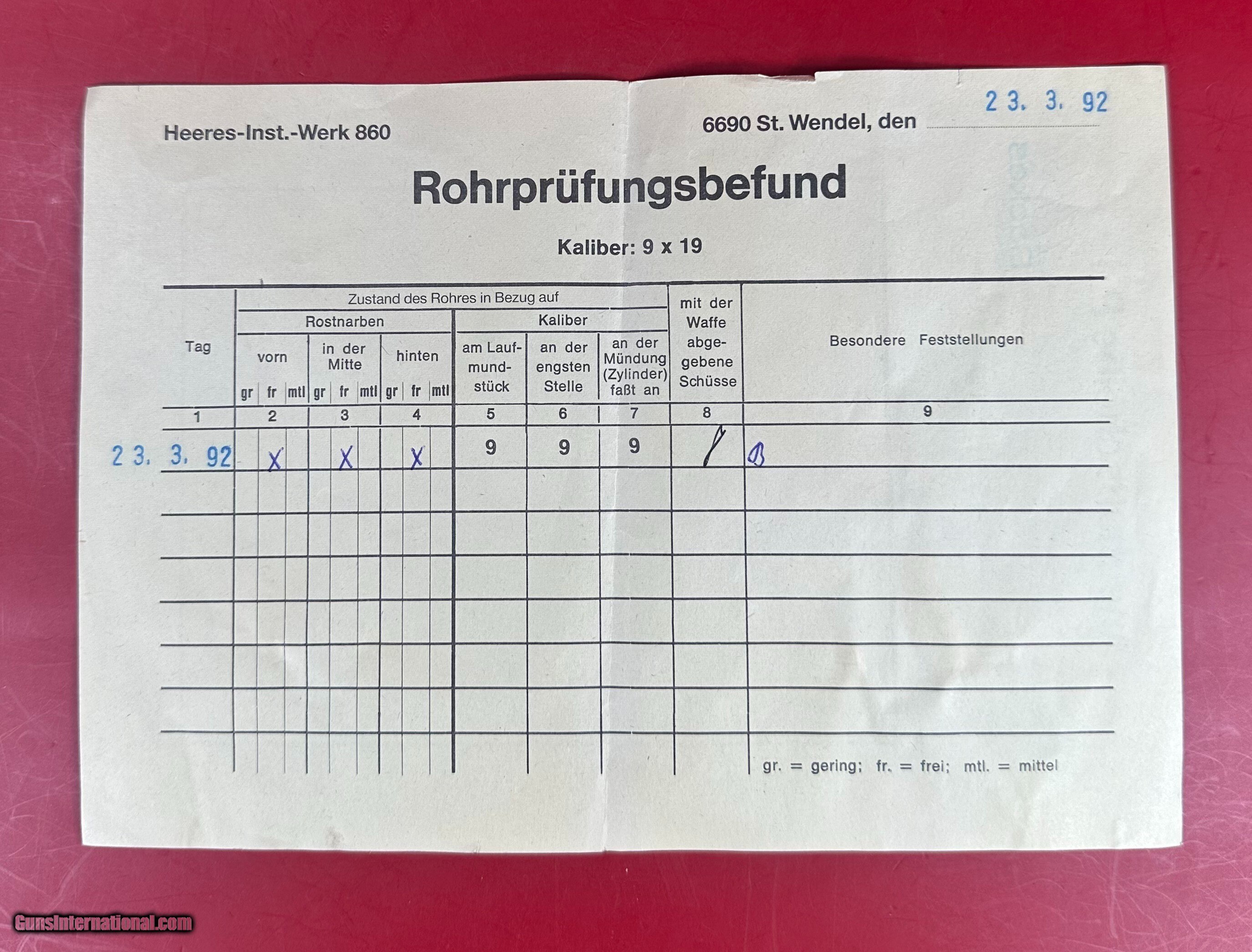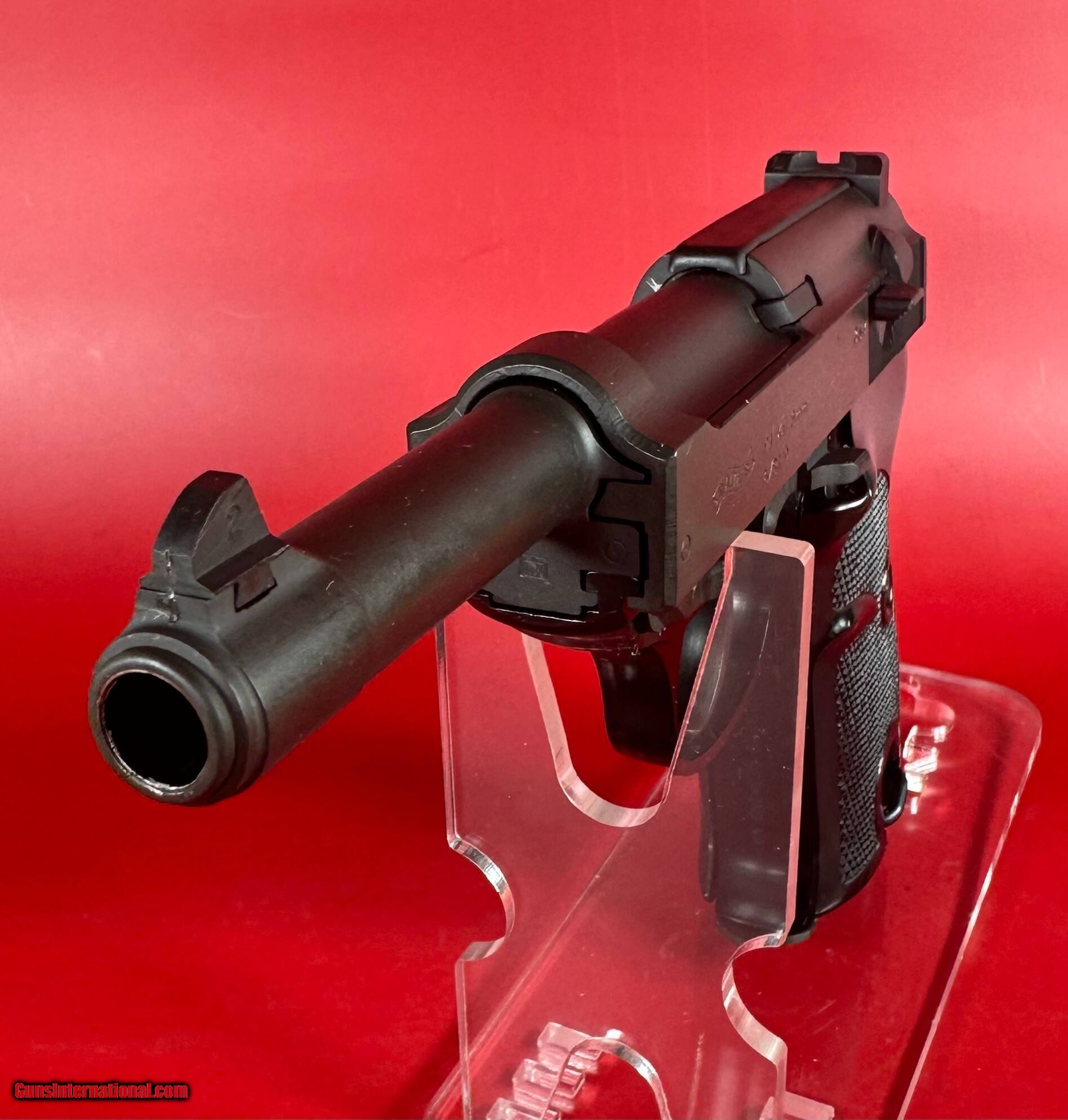 Description: For sale is a very nice 1981 Walther Model P1 (P38 P-38 P.38 P 38) that was manufactured in 1981 and is chambered in 9mm Luger. The barrel measures 5" in length and the bore is in excellent condition. This pistol was made in West Germany for the West German Military (Bundeswehr); hence the "BW" stamp on the side of the frame. This is a post-war variation of the P-38 with a steel slide and an alloy frame. Sale includes factory 8-shot detachable magazine, paperwork and holster. The matte black finish on the slide and barrel is in excellent condition, about 98%. The checkered black plastic grips are in very good condition, about 98%, bore is excellent. The action works as it should. Please refer to pictures for details. This gun will be a great addition to any collection, don't miss it. Layaway and no interest payment plan are available Handgun Caliber: 9x19mm Parabellum (9mm Luger, 9x19mm NATO) Price: $899.00 Shipping: $39.00 Contact Seller |