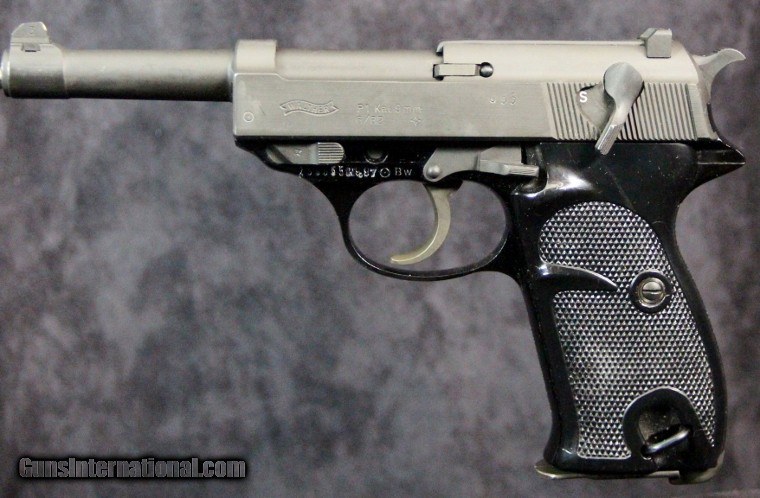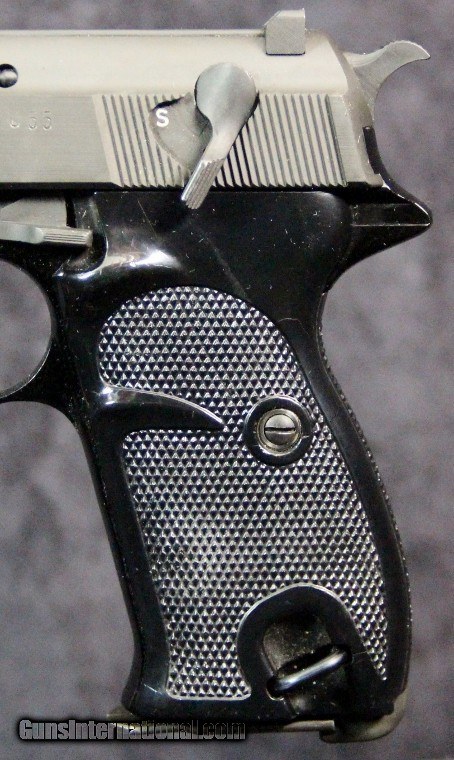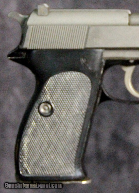 Description: 9mm, #235055W9, 5 inch barrel, matte blue finish, 2 piece plastic grips, original sights, 2 Magazines, holster, PW arms import, police trade in?. Condition: mirror bore, excellent overall, may be unfired, very good holster. SOLD Curio/Relic: Yes |