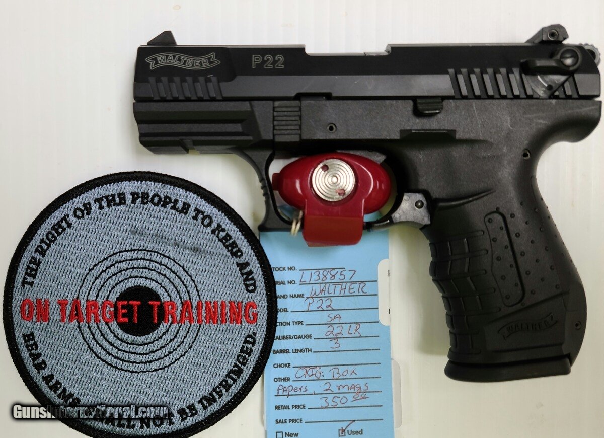 Description: Guns Listing ID: 611821 VERY NICE PRE-OWNED WALTHER P22 WITH ORIGINAL BOX AND 2 MAGAZINES. We put all the information we have about these guns on the blue shop tags and the on-line listing. Not interested in trades, and PRICES ARE FIRM, NO OFFERS ACCEPTED. We do not offer layaway. We reserve the right to sell this item in our store at any time. Please be certain that you want this item as all sales are final. Used guns and parts almost always have some small degree of imperfection visually, and we do not have the ability to test fire, so we are never 100% certain the functionality. No warranty is stated or implied. SOLD Manufacturer: WALTHER Model: P22 Caliber Info: .22 LR Condition: Used - Non-Certified Barrels: 3 BARREL Finish: BLACK |